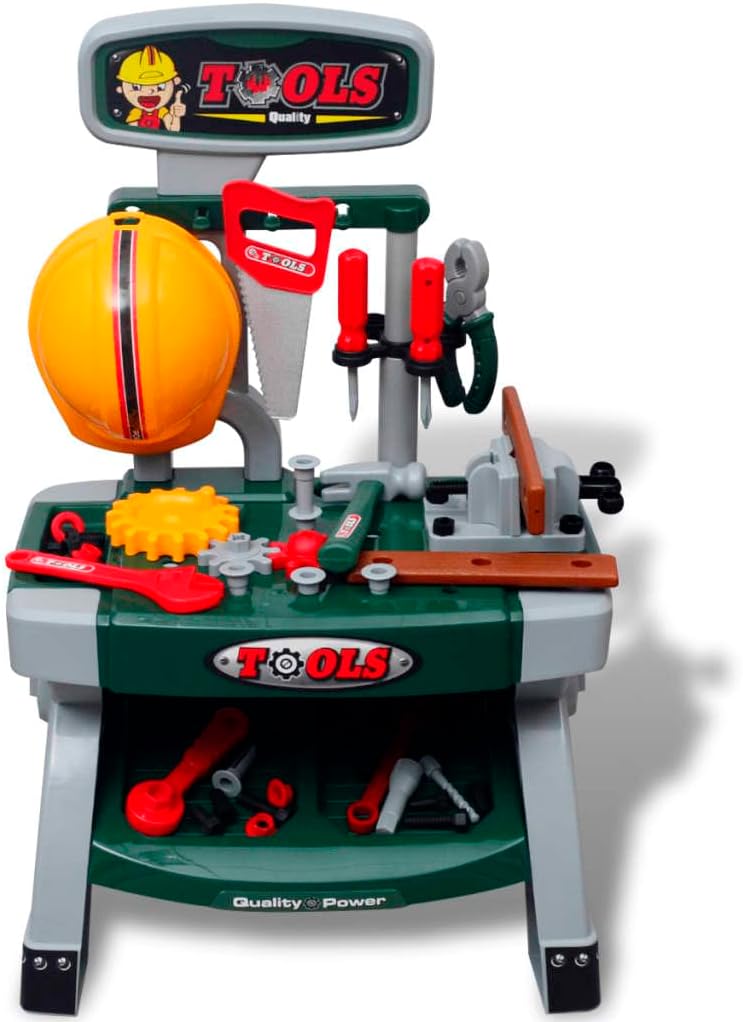 Questo divertente banco da lavoro per bambini, con una struttura resistente e robusta, invita i piccoli artigiani a giocare in modo fantasioso. La lavorazione di alta qualità e il supporto stabile del banco da lavoro garantiscono la sicurezza dei nostri piccoli artigiani. I piccoli artigiani si divertiranno molto a martellare e avvitare con strumenti realistici. Il banco da lavoro è progettato per contenere tutte le parti contenute. Ganci, mensole e spazio di archiviazione mantengono tutti gli strumenti e gli accessori organizzati e a portata di mano. I tuoi figli non solo adoreranno giocare con questo banco da lavoro, ma li aiuterà anche a sviluppare abilità comunicative e sociali in modo giocoso. È adatto per bambini dai 3 anni in su. Il montaggio è molto semplice. Contenuto della confezione: 1 panca da lavoro per bambini, 1 perforatore, 1 casco, 8 dadi, 2 cacciaviti, 3 chiavi, 1 vite (lunghezza: 6,8 cm), 6 viti (lunghezza: 5,4 cm), 6 viti (lunghezza: 4,5 cm), 10 viti (lunghezza: 3 cm), 2 pezzi di legno giocattolo, 1 sega, 1 martello. 1 x utensile posizione, 1 x Ingranaggio (Diametro: 10 cm), 2 x Ingranaggi (Diametro: 6 cm), 1 x Chiave, 1 x Pinze Materiale: plastica Colore: verde + grigio Dimensioni: 44 x 28 x 71 cm (lunghezza x larghezza x altezza). Età consigliata: a partire dai 3 anni. Montaggio facile. Contenuto della confezione: 1 x banco da lavoro per bambini, 1 x perforatore, 1 x casco, 8 x dadi, 2 x cacciaviti, 3 x chiavi, 1 x vite (lunghezza: 6,8 cm), 6 x viti (lunghezza: 5,4 cm), 6 x viti (lunghezza: 44 cm). 5 cm), 1 0 viti (lunghezza: 3 cm), 2 pezzi di legno giocattolo, 1 sega, 1 martello, 1 ripiano per attrezzi, 1 ruota dentata (diametro: 10 cm), 2 ingranaggi (diametro: 6 cm), 1 chiave inglese, 1 pinza. Avvertenza: non adatto a bambini di età inferiore a 36 mesi.