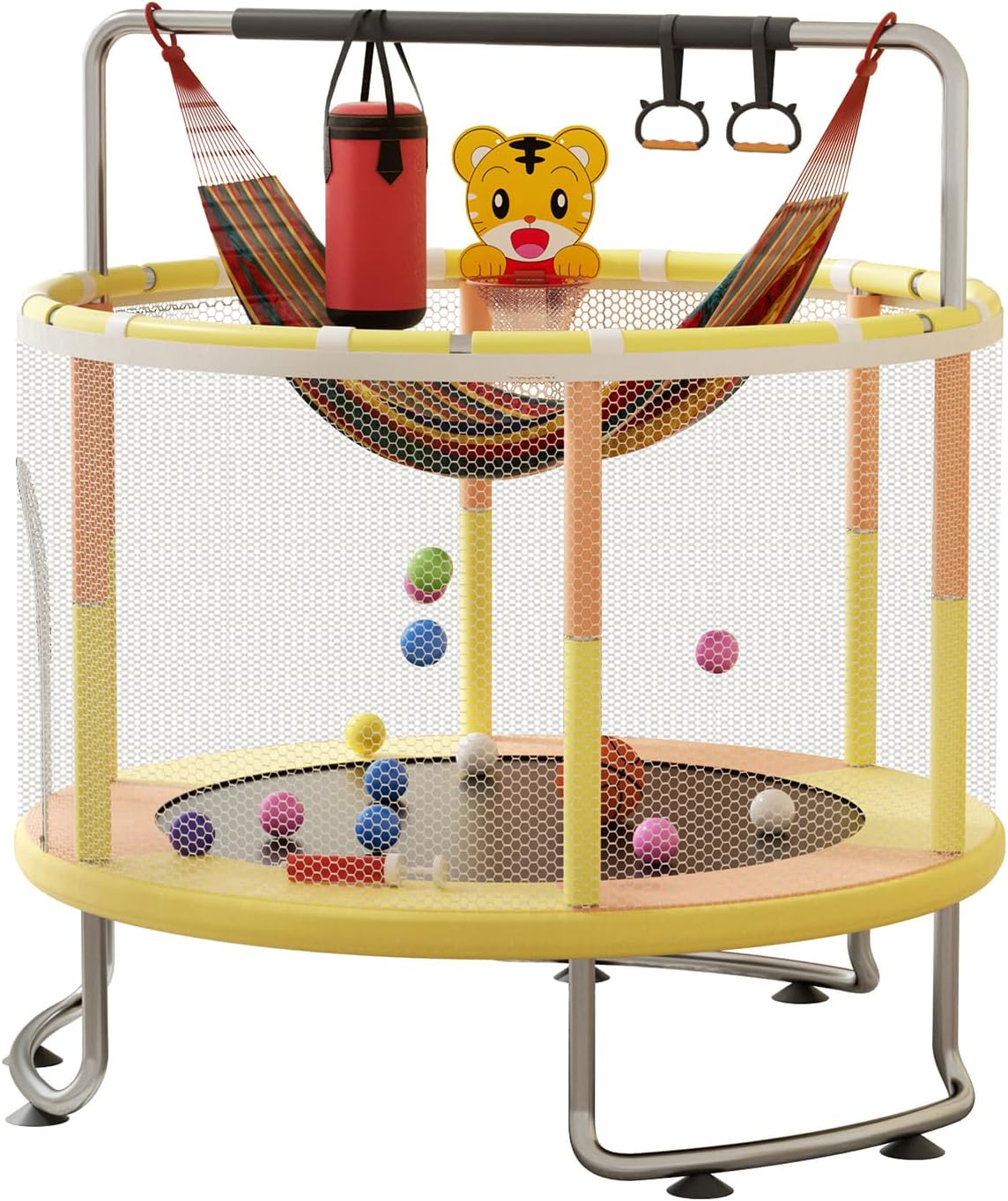 Colore: nero, grigio e blu Materiale del telaio: acciaio zincato Materiale del tappetino da salto: imbottitura in PVC con tappetino da salto in schiuma EPE da 18 mm Materiale: PP In caso di problemi con il tuo ordine, contattaci tramite l'indirizzo e-mail di Amazon. Il nostro team di assistenza clienti professionale si occuperà del tuo problema entro 24 ore!
