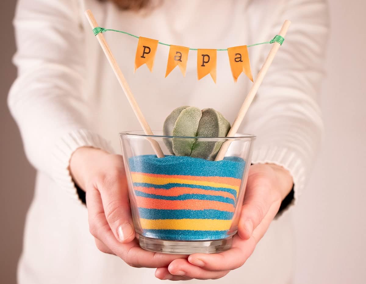Sabbia colorata naturale per fai da te: sabbia al quarzo naturale e non tossica, con granulometria fine 0,12 mm. Ideale per decorare legno, vetro, carta, metacrilato o ottone, senza bisogno di pennelli. Adatto ai bambini, perfetto per fai da te: consigliato dai 6 anni in su. Ampiamente usato in scuole, laboratori creativi e a casa. Stimola la creatività e le capacità motorie fini con una consistenza morbida e sicura Rituale della sabbia per matrimoni: Perfetto per cerimonie simboliche come il rituale della sabbia, dove i colori si mescolano per rappresentare l'unione a due percorsi. Un ricordo unico, emotivo e duraturo Colori vivaci con coloranti naturali: Ampia gamma di colori basici, neon e fluorescenti. Tutti realizzati con coloranti naturali per una finitura vivace e rispettosa. Disponibile nei formati da 100 g e 600 g. Per tutto l'anno e qualsiasi stile: ideale per creare decorazioni stagionali, quadri fai da te, dettagli personalizzati o centrotavola. Dona un tocco originale e artistico ai tuoi progetti.
