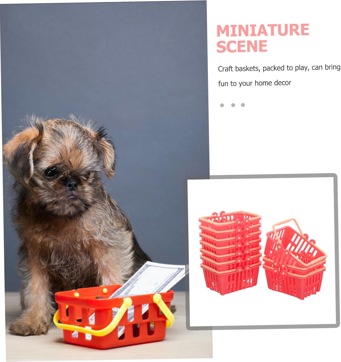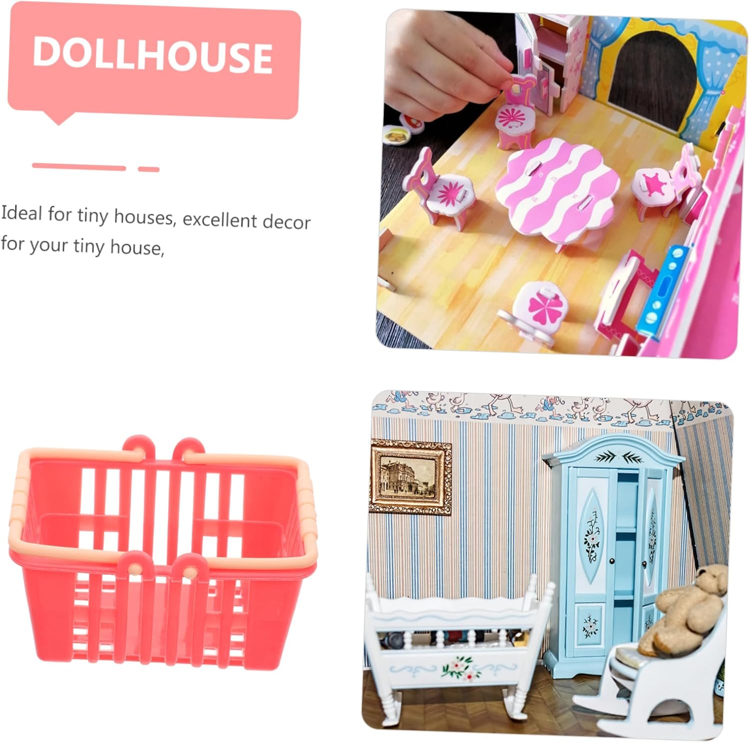 Accessori per mini case: adatti per mini case, ottima decorazione per la tua mini casetta, con design della maniglia, design delicato, accessori per case di bambole in miniatura Decorazione per la casa in miniatura: il mini cestino portaoggetti è realizzato in materiale plastico, sicuro da usare, con una maggiore durata, mini cestino portaoggetti per la casa delle bambole Mini cestino della spesa: lavorazione meravigliosa, piccolo ed elegante, superficie liscia, piacevole tatto, utile ed eccellente mini cestino della spesa, decorazione per la casa delle bambole Mini cestino della spesa con manico: un fantastico per gli amici che amano la decorazione fai da te di mini case o micro paesaggi, eccellente effetto decorativo, mini cestino di plastica per case di bambole Mini cestino della spesa per la casa delle bambole: realizzato in materiali plastici sicuri, durevoli e utili, può servirti bene, mini decorazione per la casa