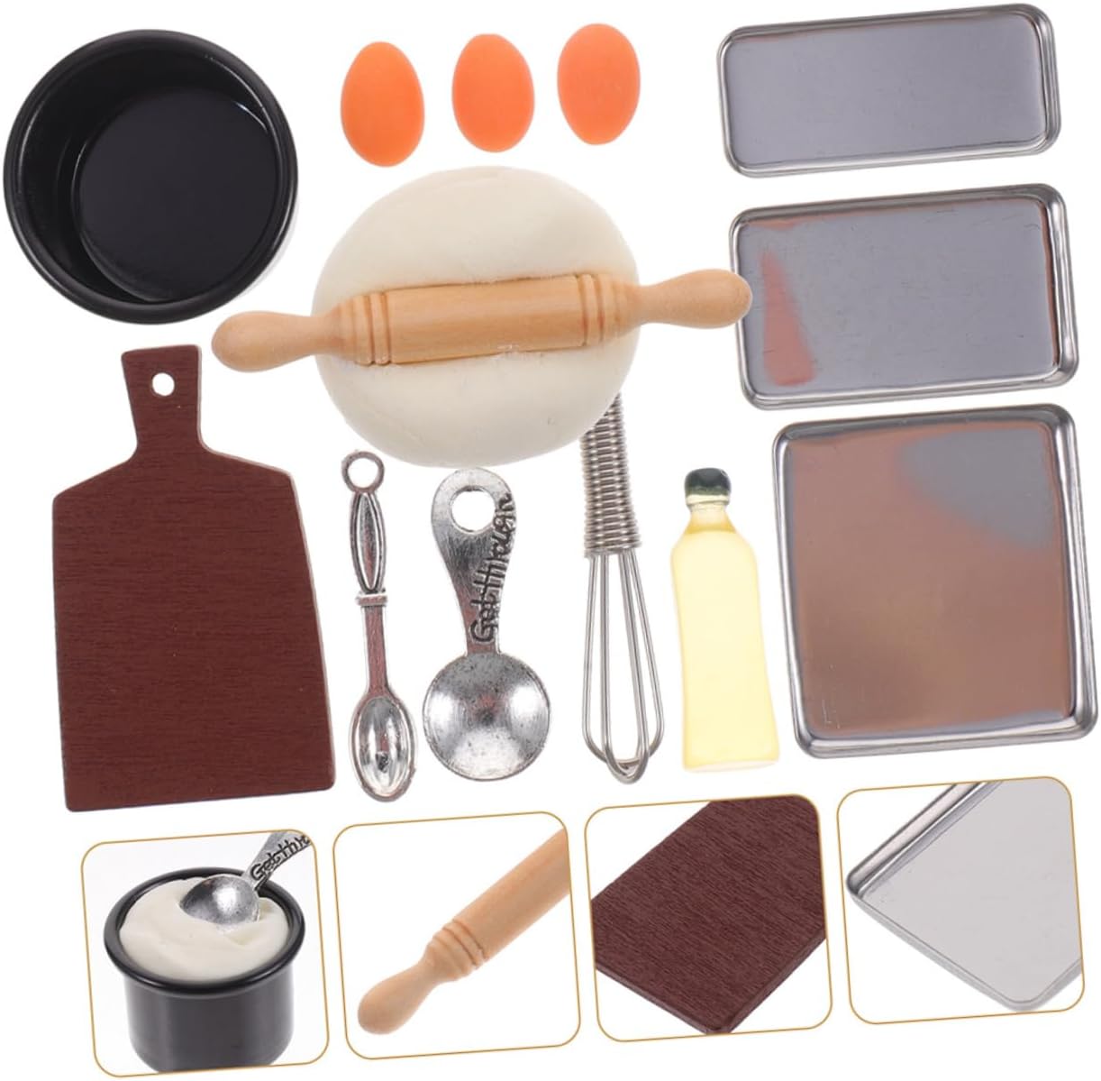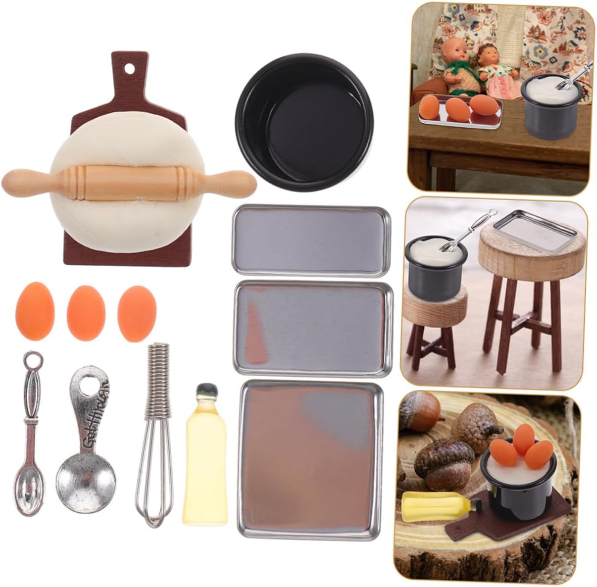 Oggetti di scena per la casa delle bambole: puoi usare mini oggetti di scena per decorare la tua mini casa e rendere la tua mini cucina più calda, giocattoli da cucina in miniatura Mini per uova: gli accessori per la cottura in miniatura sono progettati con un aspetto realistico, aggiungendo più divertimento alla cucina della tua piccola casa, teglia da forno in miniatura Accessori per la cottura in miniatura: il mini ornamento è realizzato in legno, resina e materiale plastico con lavorazione delicata e buon effetto decorativo, cottura in miniatura Utensili da cucina in miniatura: questi modelli di utensili da cucina in miniatura sono di ottima fattura, con di e non sbiadiscono facilmente, decorazioni per case delle bambole Accessori per la casa in miniatura: crea il tuo micro paesaggio preferito, metti alla prova le tue capacità pratiche e crea un realistico, tiny baking kit