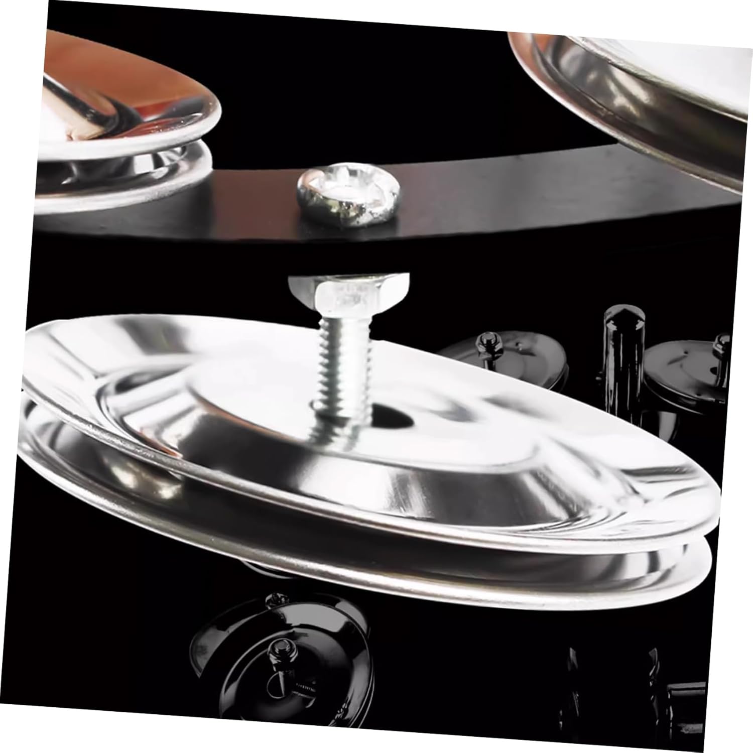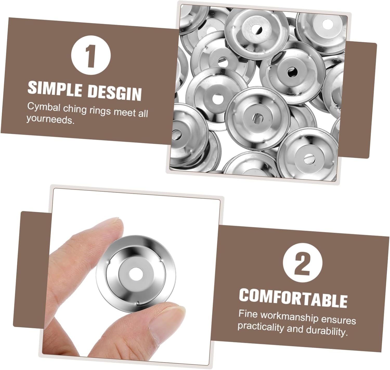 Campanelli per piatti a tamburello: con un'apertura adeguata, puoi posizionare l'anello dell'effetto tintinnio del tamburello direttamente sul piatto degli effetti per ravvivare il tuo modo di suonare, anelli per tamburello Campana per tamburello: suona con una di applicazioni per la tua batteria, compatibile con ride, hi-hat e crash, tamburello per adulti Parti di campane per tamburello: gli anelli ching sono compatibili con una varietà di batterie, eccellenti per una varietà di stili musicali, accessori per piatti Piatti per tamburello: gli anelli per tamburello sono realizzati in ferro inossidabile, garantiscono durata e affidabilità e possono essere utilizzati per un tempo prolungato Accessori per batteristi: lo spessore sottile ti dà un sottile effetto tamburello gli anelli per piatti ching sono adatti a vari tipi di batteria