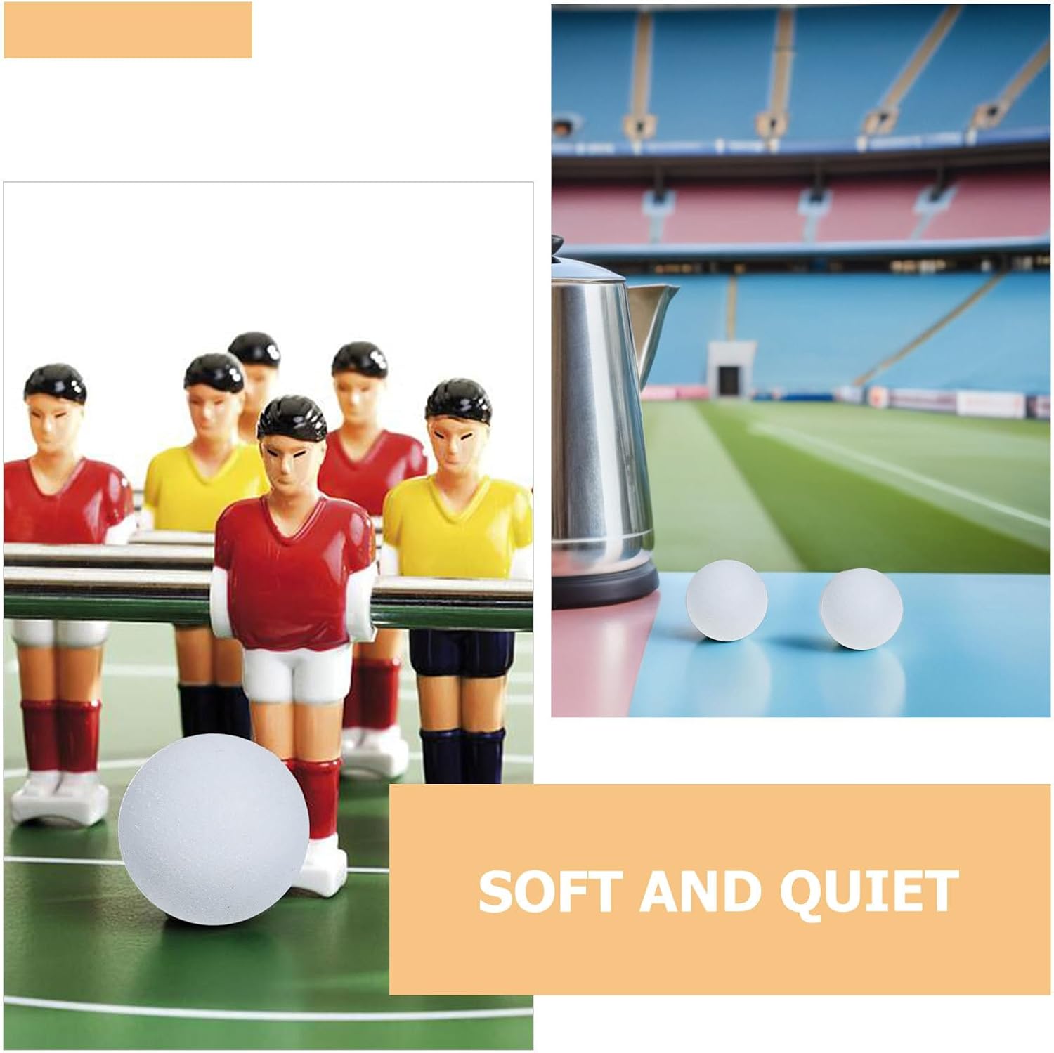 Design compatto per i bambini: I mini tavoli da biliardino hanno una dimensione perfetta di 36 mm, che li rende ideali per i bambini per migliorare la coordinazione occhio-mano mentre si divertono con i giochi di calcio balilla Materiale morbido e silenzioso: Queste palline da biliardino garantiscono un'esperienza di gioco silenziosa senza danneggiare le superfici, per l'intrattenimento familiare Struttura stabile del tavolo: Il set da gioco mini biliardino presenta un design robusto, che consente agli utenti di giocare a biliardino ovunque migliorando l'interazione genitore-figlio Regole facili da imparare: Il gioco di calcio balilla promuove lo sviluppo delle abilità sociali e delle capacità di lavoro di squadra nei bambini, creando è un'attività divertente ed educativa Portatile e versatile: il piccolo design del calcio balilla è leggero e facile da trasportare, adatto per uso interno o in viaggio, offrendo un divertimento senza fine con le palline sostitutive del calcio balilla