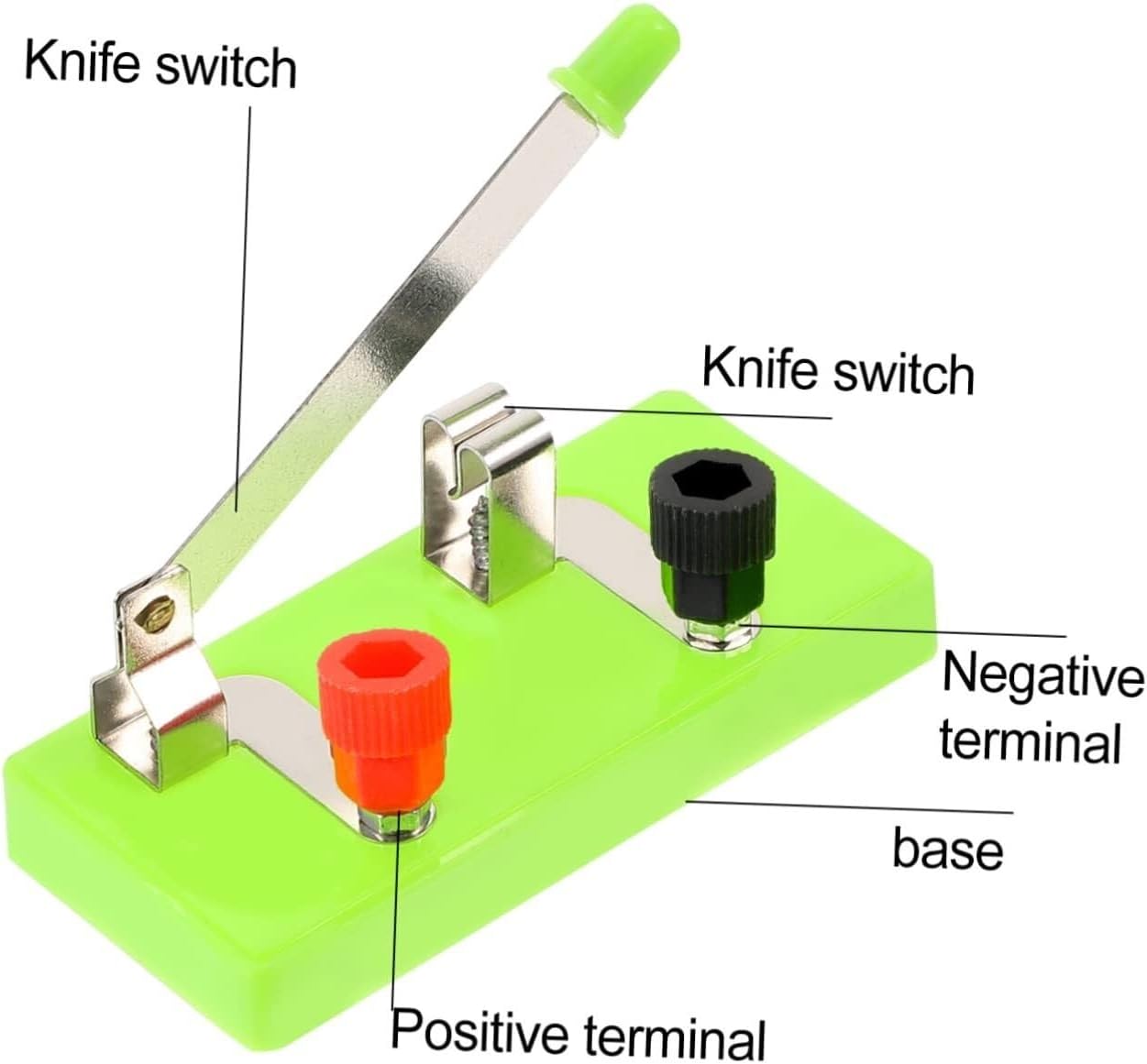 Monopolare didattico: polo singolo didattico ampiamente utilizzato per il fai da te e varie apparecchiature a corrente continua. Attrezzatura elettrica da laboratorio: realizzata con materiali di alta qualità, è durevole e può essere utilizzata a lungo. Singolo da laboratorio: ottimo per studenti e principianti che vogliono imparare i circuiti di base. Strumenti sperimentali: leggeri e facili da trasportare, consentono agli studenti di portare l'intero set all'esterno per giocare con i loro amici. Interruttore a una sola mandata: per stimolare la capacità pratica e l'interesse all'apprendimento degli studenti.