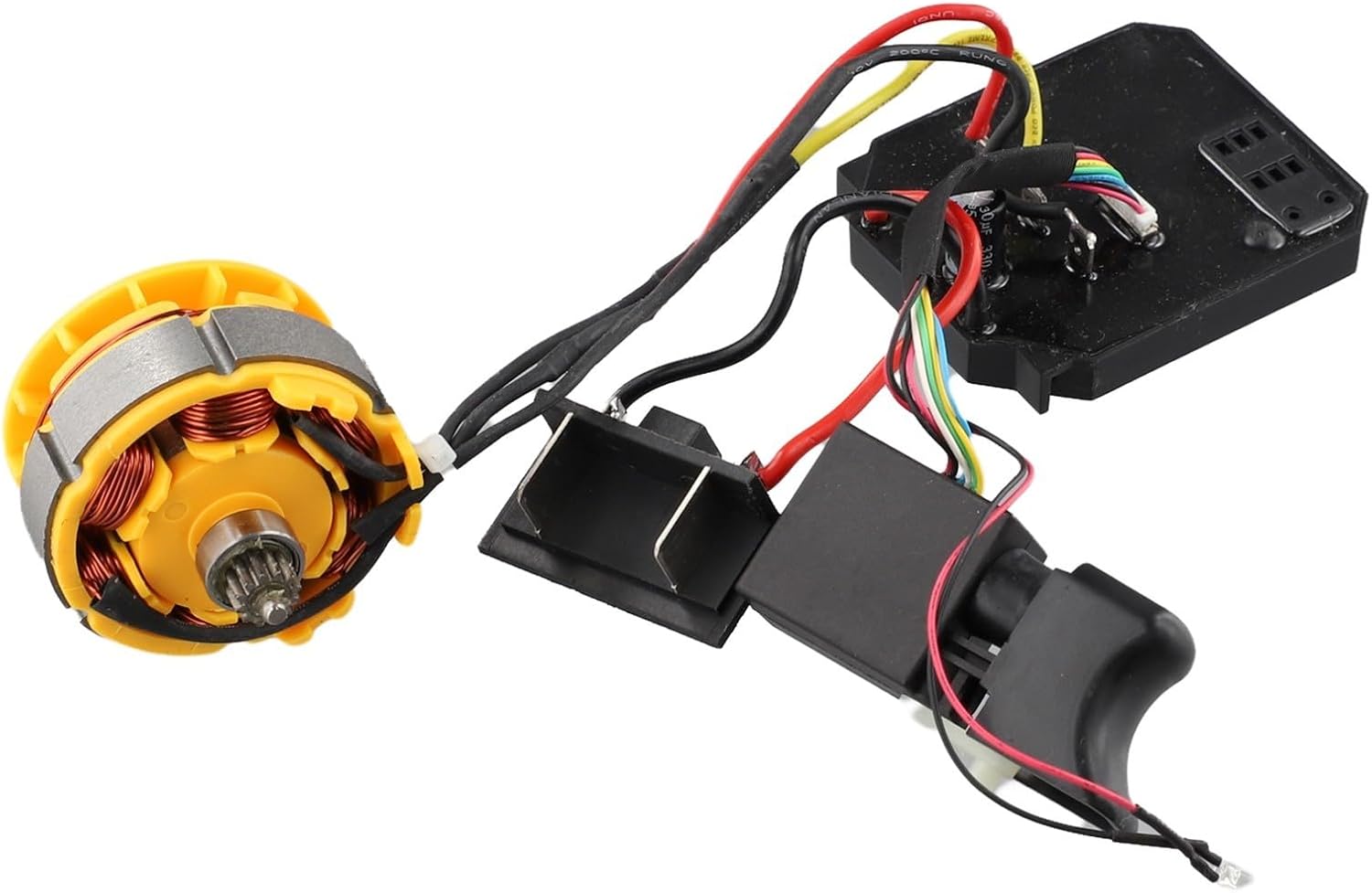 Alta compatibilità per trapani Dayi 21V: specificamente progettato per modelli di trapano elettrico brushless Dayi 21V, questo gruppo motore garantisce una vestibilità precisa e prestazioni affidabili per le esigenze di manutenzione e riparazione degli utensili elettrici Set completo di montaggio motore: include 1 motore brushless con 12 denti, 1 scheda di controllo e 1 interruttore, fornendo tutti i componenti essenziali necessari per ripristinare la funzionalità del trapano in un unico comodo pacchetto Struttura in metallo di lunga durata: realizzato con robusti materiali metallici, questo gruppo motore senza sensori offre una maggiore durata e prestazioni sostenute in applicazioni di perforazione impegnative, prolungando la durata del tuo utensile Processo di installazione senza soluzione di continuità: progettato per una sostituzione semplice, questo gruppo interruttore della scheda di controllo del motore presenta connessioni intuitive che semplificano il processo di installazione, riportando rapidamente il trapano al lavoro Alimentazione affidabile: offre una potenza di uscita costante a 21 V con un'efficiente tecnologia del motore brushless, mantenendo un controllo ottimale della coppia e della velocità per varie attività di perforazione evitando problemi di surriscaldamento