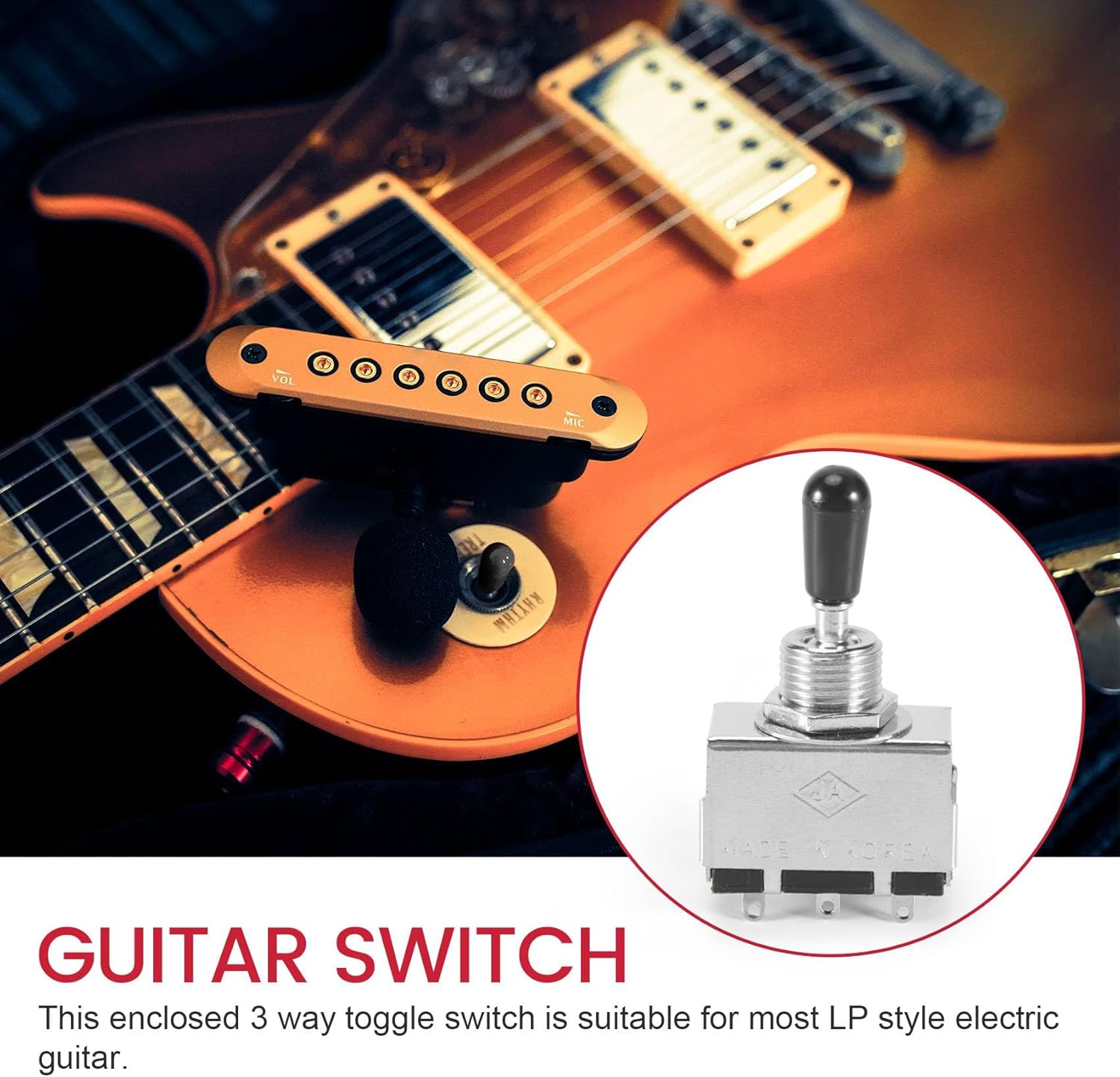 APPLICAZIONE: Questo interruttore a levetta a 3 vie incluso è adatto per la maggior parte della chitarra elettrica stile LP. FACILE DA INSTALLARE: l'interruttore per chitarra 3 Way pickup è facile da installare piastra di controllo. Ha un aspetto piccolo e raffinato, da trasportare. MATERIALE METALLICO: Con la costruzione in metallo, l'interruttore a levetta a 3 vie della chitarra elettrica è resistente e anticorrosione.Inoltre, è un'operazione sensibile e nessun rumore. NICE REPLACEMENT PART: parte di ricambio molto per sostituire quelli o rotti tua chitarra.