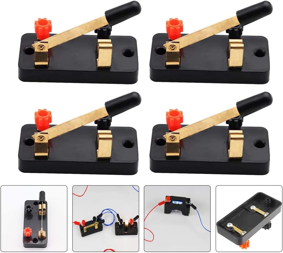 Sicuro e visivo, interruttore a coltello per un funzionamento stabile, morsetto a vite per un collegamento elettrico sicuro. perfetto per l'educazione scientifica fisica, crea una classe vivace e interessante. Interruttore unipolare a una via (SPST) per l'apertura e l'interruzione di un unico circuito di collegamento elettrico. Attrezzatura speciale per gli esperimenti in classe e in laboratorio di fisica degli studenti. Si tratta di interruttori a bassa tensione e bassa corrente, per alimentare a bassa tensione.