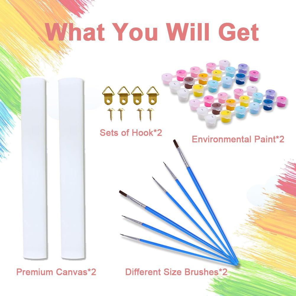 COSA OTTIENE: 2 tele di alta qualità (40 x 30 cm, senza cornice), 2 set di pennelli (6 pezzi), 2 set di colori acrilici, 2 set di ganci (4 pezzi), Perfetto per chi ama gli hobby creativi Pigmento e Tela Di Alta Qualità: Pittura per numeri Vernice acrilica di alta qualità, La vernice è atossica, sicura e acrilica di alta qualità, La tela 40 x 30 cm è facile da dipingere, resistente all'acqua e alla luce, con numeri e linee chiare e leggibili Facile Da Dipingere: Dipingi con i numeri adulti esattamente il punto in cui ogni colore deve essere applicato, senza la necessità di mescolare i colori. Il processo di pittura è così semplice che chiunque può completare questo bellissimo dipinto senza sforzo Peinture Par Numéros Facile: Craftoria painting con numeri per adulti, bambini e principianti della pittura. Il processo di pittura è così semplice: dipingete il vostro stile artistico applicando i colori numerati agli stessi numeri sulla tela Miglior Regalo: Color by number è il regalo perfetto per genitori, amici, amanti, bambini a San Valentino, Festa della Mamma, Festa del Papà, Natale, Compleanno e altro ancora