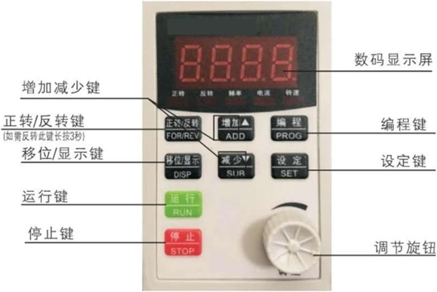 Ampia applicazione: questo inverter può essere utilizzato per apparecchiature di controllo della velocità come router CNC, macchine utensili CNC, fresatrici, trapani, divaricatori, miscelatori, estrusori, taglierine, avvolgitori, compressori, ventilatori, pompe, smerigliatrici, nastri trasportatori, elevatori, centrifuga, ecc Lega di alluminio e materiale PC: questo inverter è realizzato in lega di alluminio e materiale PC, la lega di alluminio ha una buona conduttività per garantire le prestazioni dell'inverter e il materiale PC è ignifugo per garantire la sicurezza dell'inverter Display digitale intelligente: questo inverter adotta un design della tastiera umanizzato, con layout ragionevole e facilità d'uso; display digitale, intuitivo e chiaro. Il design staccabile è comodo per il controllo remoto Dissipatore di calore extra large: questo inverter ha un grande dissipatore di calore con una piccola ventola, che è circa 3 volte più grande del dissipatore di calore di prodotti simili, e la piccola ventola garantisce un basso rumore e allo stesso tempo favorisce una buona dissipazione del calore Funzionamento multivelocità e oscillazione: questo inverter ha 16 segmenti di controllo della velocità multisegmento programmabile e più modalità operative tra cui scegliere. Il funzionamento della frequenza del pendolo ha frequenza preimpostata, frequenza centrale regolabile, memoria di stato e ripristino dopo un'interruzione di corrente