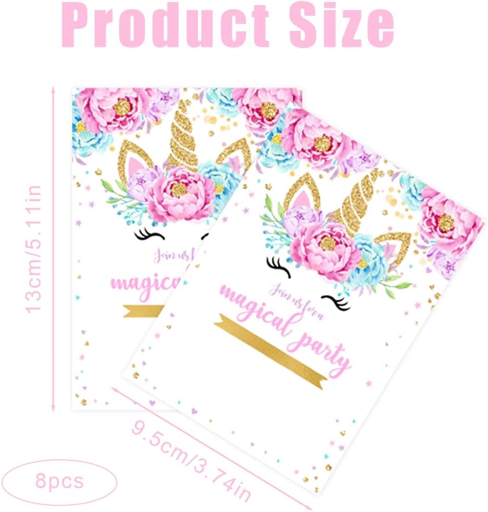 MATERIALE: per i nostri biglietti d'invito utilizziamo carta patinata per renderli più resistenti e facili da scrivere. ACCATTIVANTE: il nostro biglietto d'invito dal design accattivante, con una bella grafica e una vernice parzialmente glitterata, è davvero accattivante e renderà i vostri bambini molto felici. AMBIENTE: la tecnologia di stampa laser e i progressi della pasta in polvere rendono le carte più vivaci, brillanti e resistenti ai colori, nel rispetto dell'ambiente. UTILIZZO: oltre che per i compleanni dei bambini, le nostre carte possono essere utilizzate per altre occasioni, come la prossima festa a tema, il battesimo, la festa di benvenuto per il bambino, la festa dei bambini, l'ingresso a scuola e altro ancora. CONTENUTO DELLA CONFEZIONE: la confezione contiene 8 biglietti d'invito Unicorno Fantasia, ogni biglietto è stampato su entrambi i lati e progettato con un ampio spazio di riempimento.