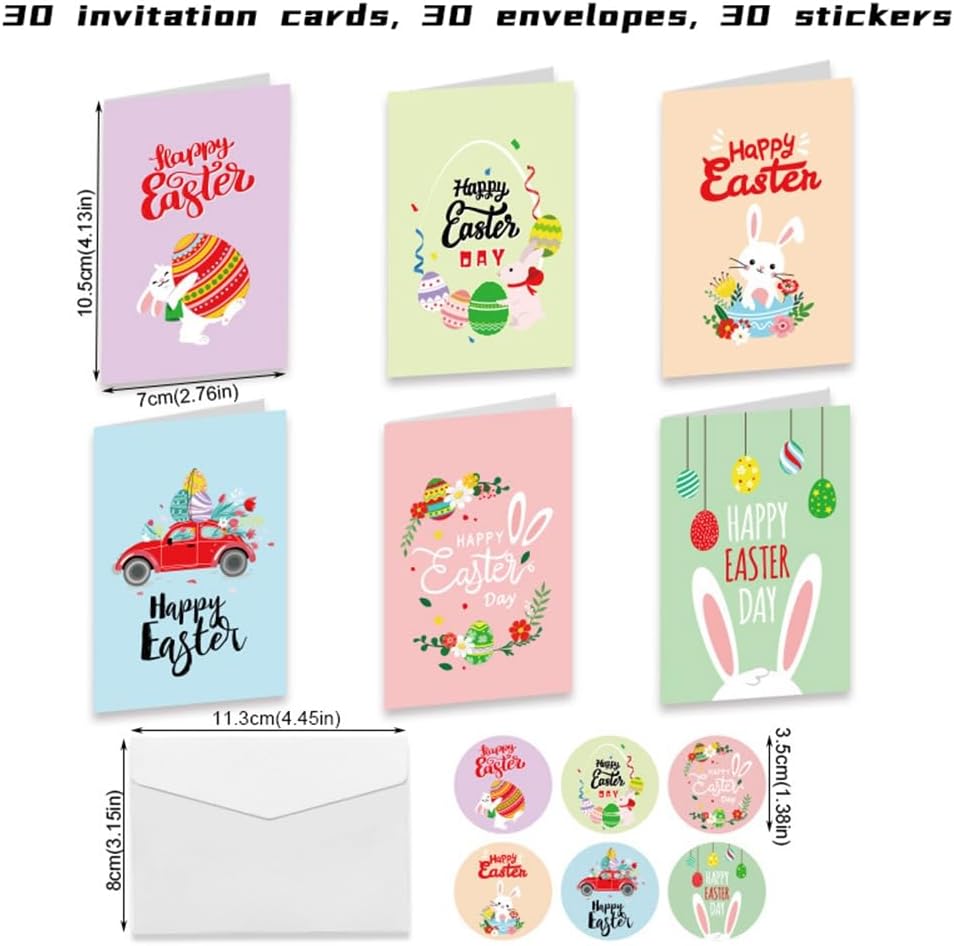 Dimensione appropriata: il biglietto d'invito alla festa misura ca. 7x10,5 cm, la busta misura ca. 11,3x8 cm, ogni biglietto d'invito per la festa può essere messo in una busta. Combinazioni di valore: riceverai 30 pezzi di biglietti d'invito colorati, 30 pezzi di buste bianche e 30 pezzi di etichette adesive con sigillo. Quantità sufficiente per invitare i tuoi amici o familiari. Design carino: i nostri inviti per le feste di Pasqua sono progettati con graziosi elementi a tema festa, come Pasqua e pois colorati. Il design a doppia stampa rende le carte attraenti e squisite. È facile ottenere i favori dei bambini. Alta qualità: i biglietti d'invito sono realizzati in cartone spesso con pregevole fattura, liscio, da scrivere e non facile da sbiadire. Forniture per feste di Pasqua: usa i nostri adorabili inviti per invitare compagni di classe, insegnanti, amici e familiari per festeggiare.