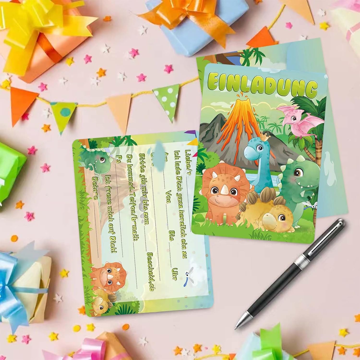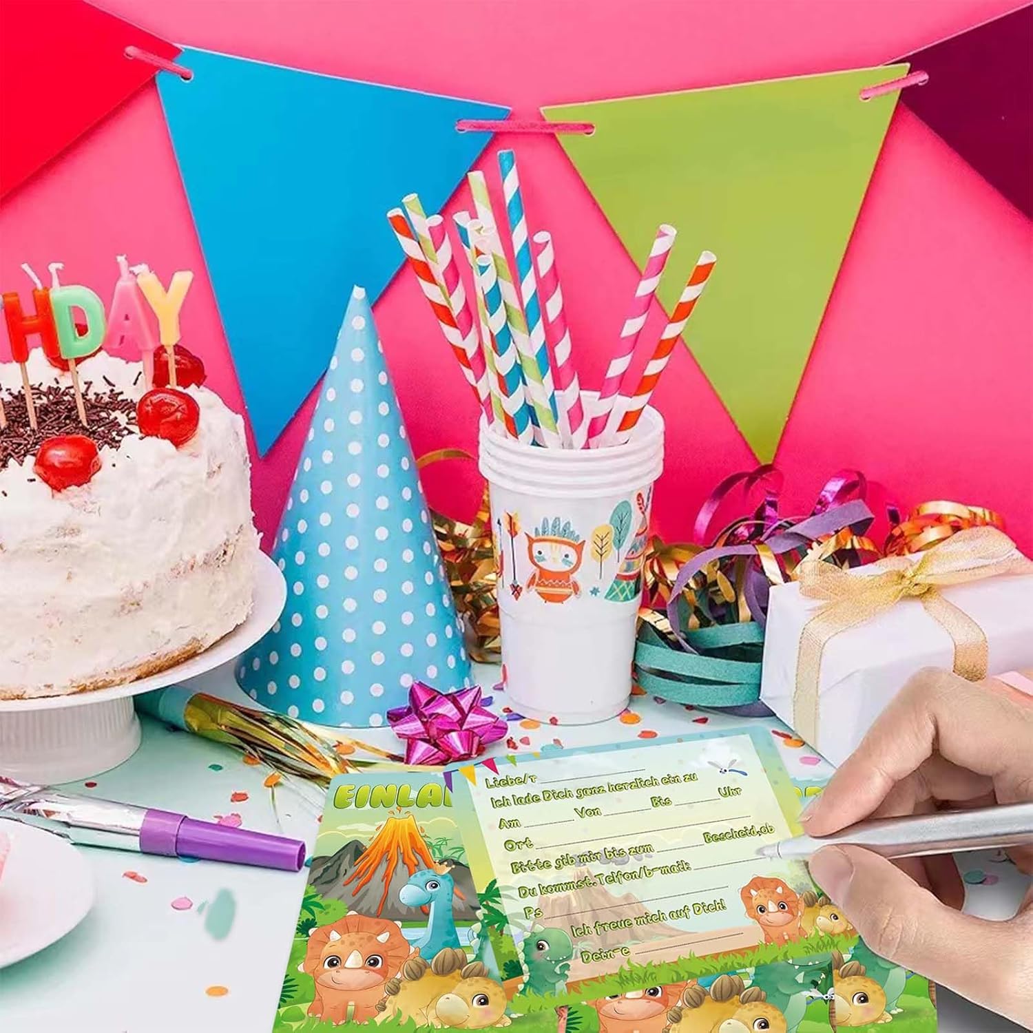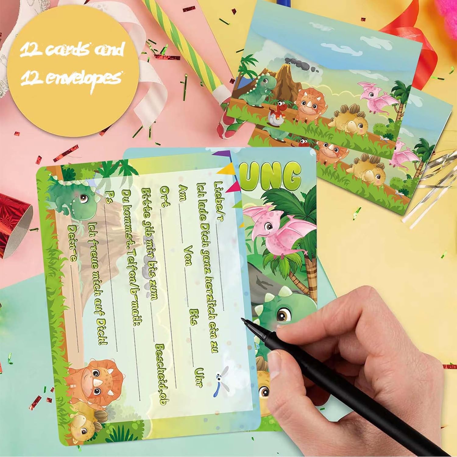 1. Materiali di alta qualità: i nostri biglietti d'invito con dinosauri sono realizzati con carta di alta qualità, durevole e resistente. Puoi essere certo che i tuoi inviti arriveranno in perfette condizioni. 2,12 biglietti per confezione: ogni confezione contiene 12 biglietti d'invito con dinosauri, quindi avrai abbastanza biglietti per l'intera festa di compleanno. 3. Design unico: i nostri biglietti d'invito con dinosauri presentano adorabili disegni di dinosauri e decorazioni glitterate. Sono perfetti per i compleanni dei bambini e altre occasioni speciali. 4. Versatile: i nostri biglietti d'invito con dinosauri sono adatti a tutti i tipi di eventi, comprese feste di compleanno, inaugurazioni di case e altre occasioni speciali. 5. Regalo ideale: i nostri biglietti d'invito con dinosauri sono il regalo perfetto per i bambini che amano i dinosauri e i glitter. Si divertiranno a creare e inviare i propri inviti.