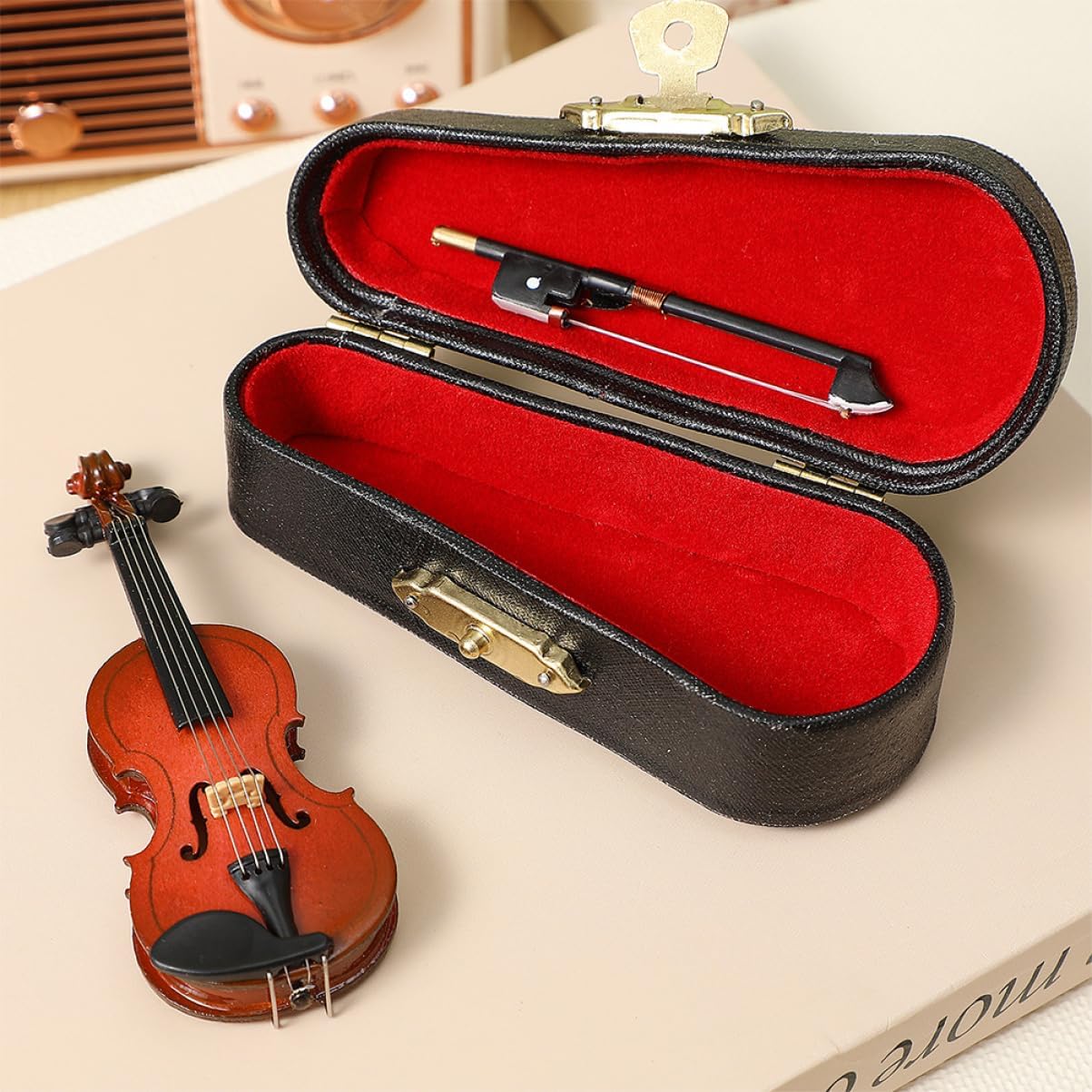 Scultura di violino vintage: il materiale è sicuro, resistente all'usura e pratico per l'uso, ornamenti pendenti per violino in miniatura Modello di violino in miniatura: questo piccolo modello di violino è un ottimo display decorativo per la tua scrivania, tavolo da ufficio, violino realistico Violino realistico: lavorazione eccellente e superficie liscia, facile da pulire, modello mini strumento musicale Ornamento per violino: questo è un modello realistico e in miniatura che può creare una calda decorazione per il modello di strumento musicale Violino decorativo in miniatura: questo modello di violino in miniatura è realizzato e con trattamento superficiale verniciato, violino piccolo