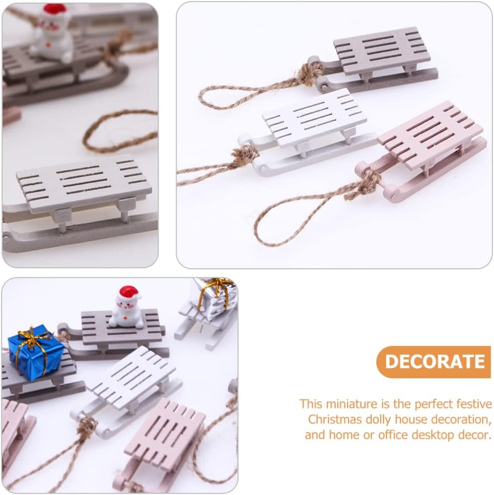 Questa slitta in miniatura può decorare il tuo albero di Natale e renderlo più bello. Il classico ornamento in miniatura della slitta di legno di Natale può aumentare l'atmosfera festosa. Questi ornamenti pendenti con slitta natalizia sono realizzati con ottimi materiali in legno, durevoli. L'accessorio decorativo in legno in miniatura, l'arredamento paesaggistico della Dolly House a tema natalizio. La slitta di legno è anche una decorazione per l'albero di Natale.