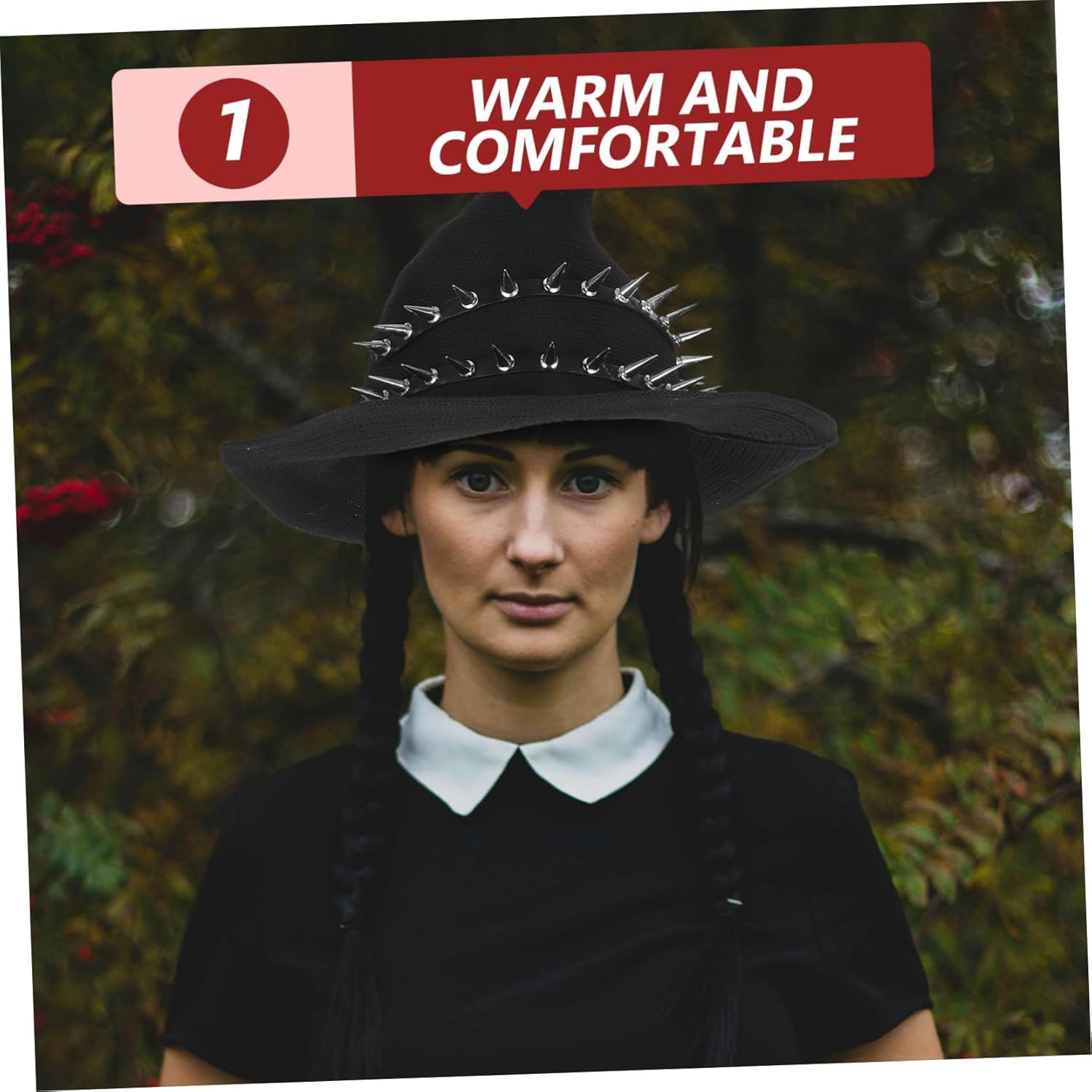 pacchetti 1 x cappello di Halloween Caratteristiche -Lana confortevole: realizzato in lana premium, il berretto di Halloween lavorato a maglia offre calore e comfort per le attività all'aperto. Cappello da donna - Dimensioni: 35,00 x 35,00 x 22,00 cm/13,76 x 13,76 x 8,65 cm Cappello - Colore: Cappello gotico nero - Informazioni: Cappello Steampunk - Accessorio per costume: Ideale per Halloween, feste in maschera o feste a tema, berretto completo per costume in maschera Halloween Cappello Look - Fascino Steampunk: Il design del cappello a cilindro Steampunk per donna aggiunge fascino e outfit di Halloween, rendendolo al centro dell'attenzione Cappello cosplay steampunk - Design gotico: il cappello da donna presenta un design gotico, perfetto per i cosplayer che desiderano incarnare i loro personaggi. Accessorio di Halloween - Durevolezza lavorata a mano: il cappello di Halloween è realizzato artigianalmente con cura, garantendo che rimanga in buone condizioni nel tempo. Accessorio per feste, cappello da festa - Materiale: cappello riutilizzabile in poliestere Descrizione della merce Cappello con borchie Progettato per , questo accessorio è perfetto per Halloween, cosplay o feste a tema. Cappello riutilizzabile Entra nello steampunk e nel gotico con questo cappello da festa, caratterizzato da accenti e una morbida trama a maglia. Cappello cosplay Il suo materiale in lana offre calore e comfort, mentre il design unico garantisce di distinguersi come la stella di ogni occasione festiva