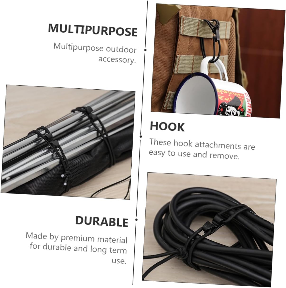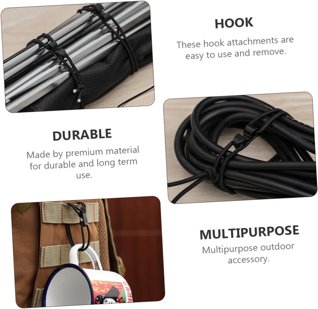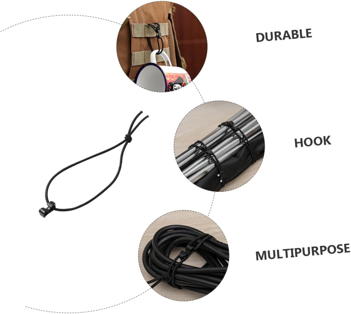 Corda elastica: adatta per attività all'aperto, come escursionismo, pesca, campeggio, viaggi ecc., corda elastica Cordino regolabile: risparmia spazio e di' addio al disordine sul tavolo e sul pavimento, clip per cintura elastica Corda elastica: realizzata da , corde elastiche resistenti e durature, resistenti all'usura Cinghia elastica: realizzata in nylon, resistente all'usura e alla luce, sicura e durevole, cordino Corda elastica: il design della corda elastica può regolare il grado di tensione, il che è rapido e comodo da usare, fettuccia elastica con ganci