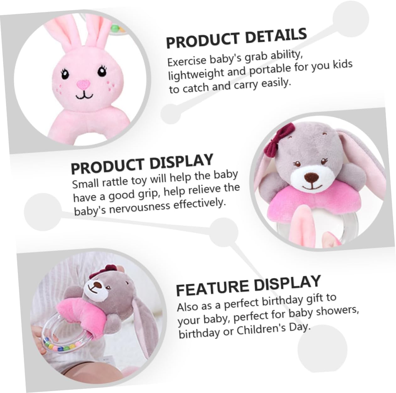 Giocattolo bambola animale bambino - adozione di materiale di peluche premium e delicato, è affidabile, sicuro e comodo per l'uso del bambino, giocattolo bambola di peluche ad anello per la mano: progettato per risvegliare la consapevolezza uditiva e migliorare perfettamente la coordinazione occhio-mano, ad anello di peluche Sonaglio: aiuta i genitori a giocare con i bambini e a farli divertire, inoltre stimola notevolmente i uditivi dei bambini. Sonaglio a forma di animale dei cartoni animati: perfetto anche come di compleanno per il tuo bambino, perfetto per baby shower, compleanni o feste dei bambini, sonaglio ad anello Sonaglio a forma di animale di peluche: può essere e avrai una sensazione di tocco delicato, il bambino sarà delizioso da tenere e nella sua mano, sonaglio a forma di animale per neonati