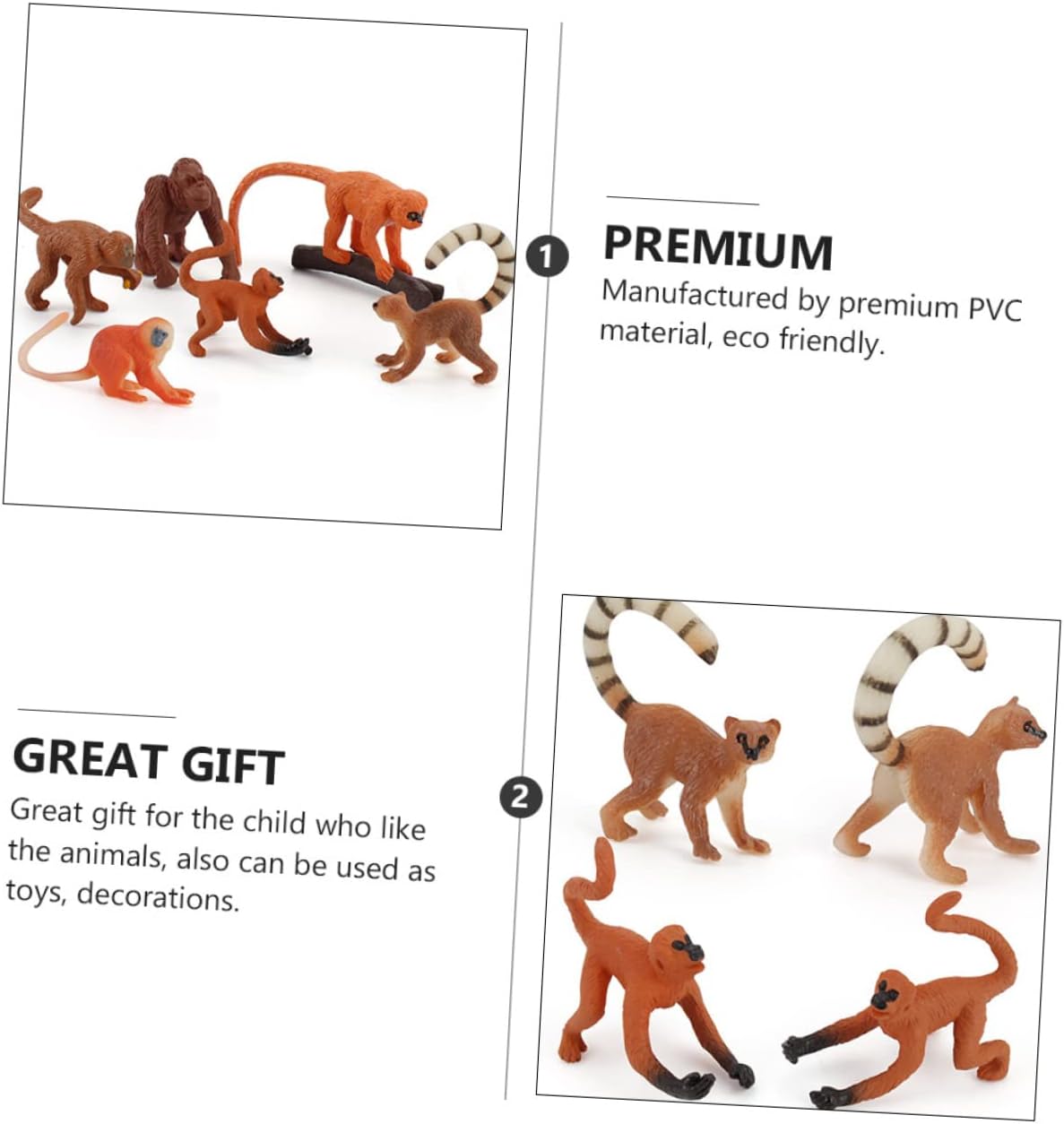 Decorazione a forma scimmia: è un set meravigliosi giocattoli educativi per , divertenti, adorabili e pratici, piccole statuette animali Scimmia in plastica: lavorazione , trattamento superficiale delicato, sensazione consistenza, sculture Scimmia : realizzata in materiale pvc qualità, ecologica, sicura e facile da usare, scimmia in miniatura Modelli animali simulati: questi giocattoli scimmia simulata sono realistici e li aiuteranno a tipo animale, plastica scimmia Scimmia : materiale è in plastica pvc qualità e resistente all'usura, pratico per un duraturo, scimmia in plastica