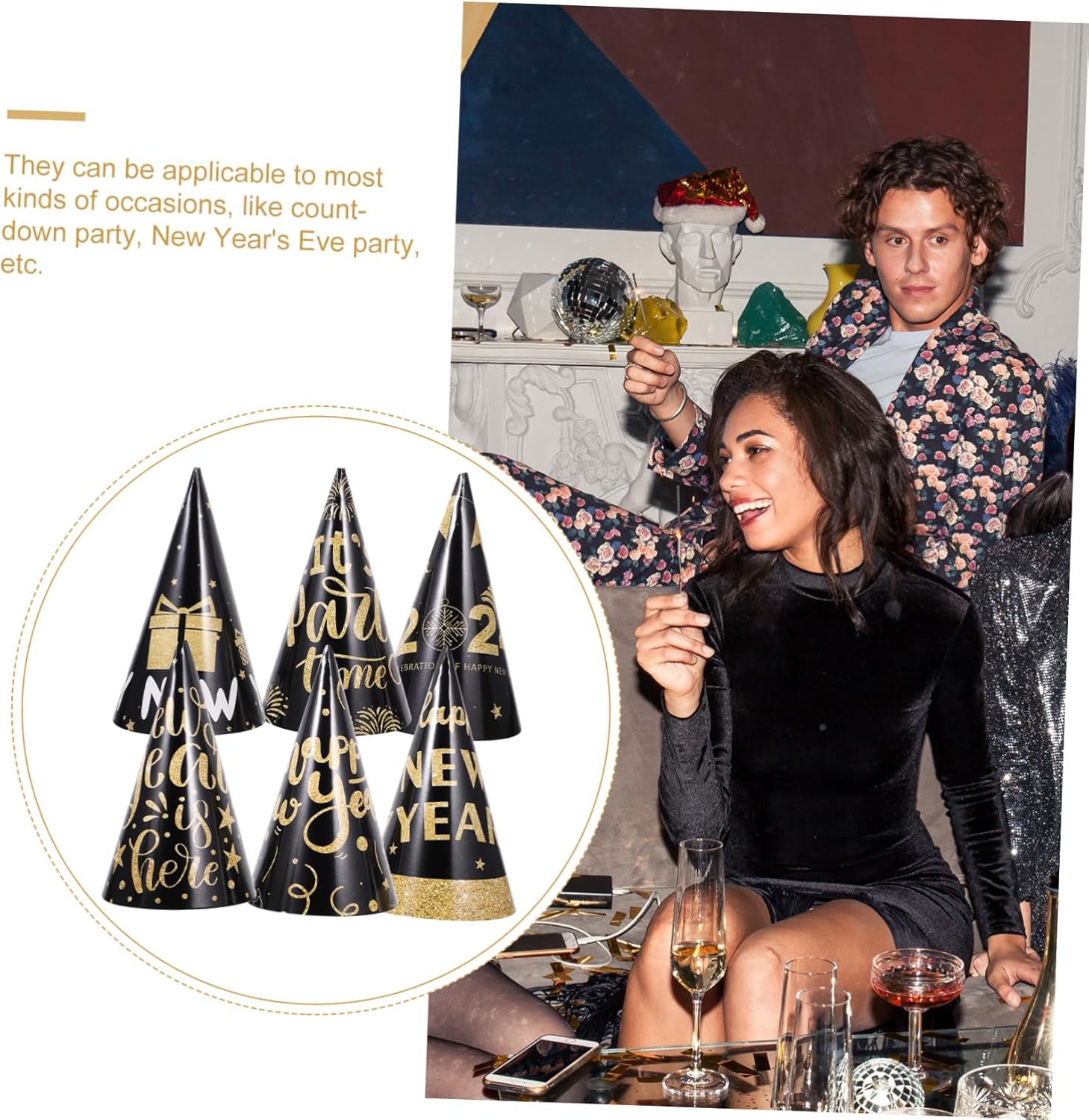Descrizione prodotto dei pacchetti 6 cappelli da festa Caratteristiche - Dimensioni: cappelli da festa Capodanno 17,00X10,50X10,50cm/6,68X4,13X4,13in - Materiale: Cappelli per feste a cono -Informazioni sul prodotto: Cappello nero-oro - I cappelli decorativi a forma cono possono regalarti e aiutarti a memorabili con i cappelli . - Possono essere utilizzati per la maggior parte delle , come feste , feste Capodanno, ecc. come bomboniere per anno. - Ci sono quantità cappelli per Capodanno che possono soddisfare tue diverse esigenze, sufficienti per l'uso familiare. Cappello a cono. - Cappelli assortiti - Cappello per anno realizzato in materiale cartaceo, leggero e fattura. - Leggeri e compatti, questi cappelli non affaticano la testa adatti maggior parte dei cappelli da festa. Descrizione della merce bomboniere per la festa Capodanno Il colore è unico e , si abbina maggior parte degli da festa Capodanno. Cappelli Capodanno Viene fornito in quantità sufficienti da poter condividere con i tuoi amici. Cappelli per la festa Capodanno Questi sono per cappelli per la festa Capodanno, realizzati in , pratici e non facili da strappare Avviso di sicurezza 1