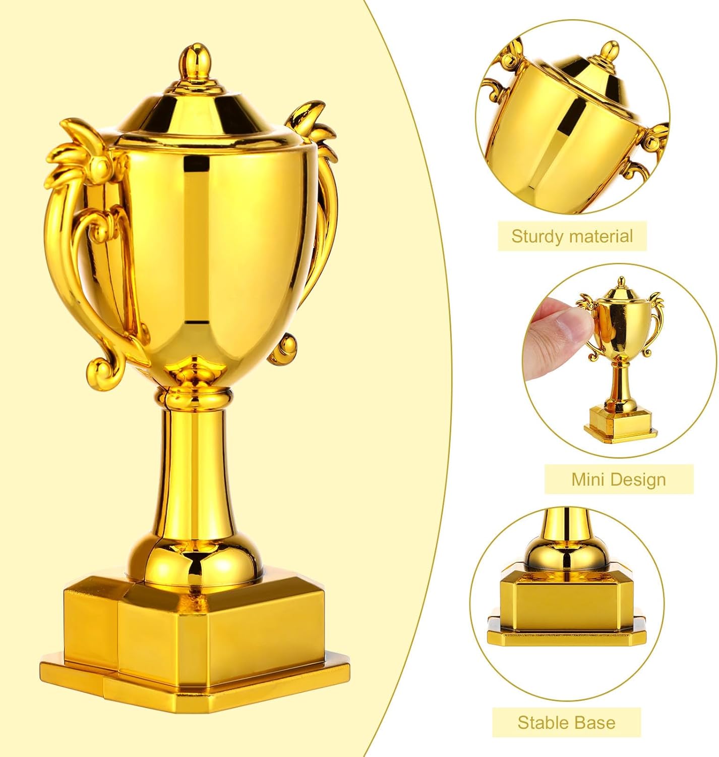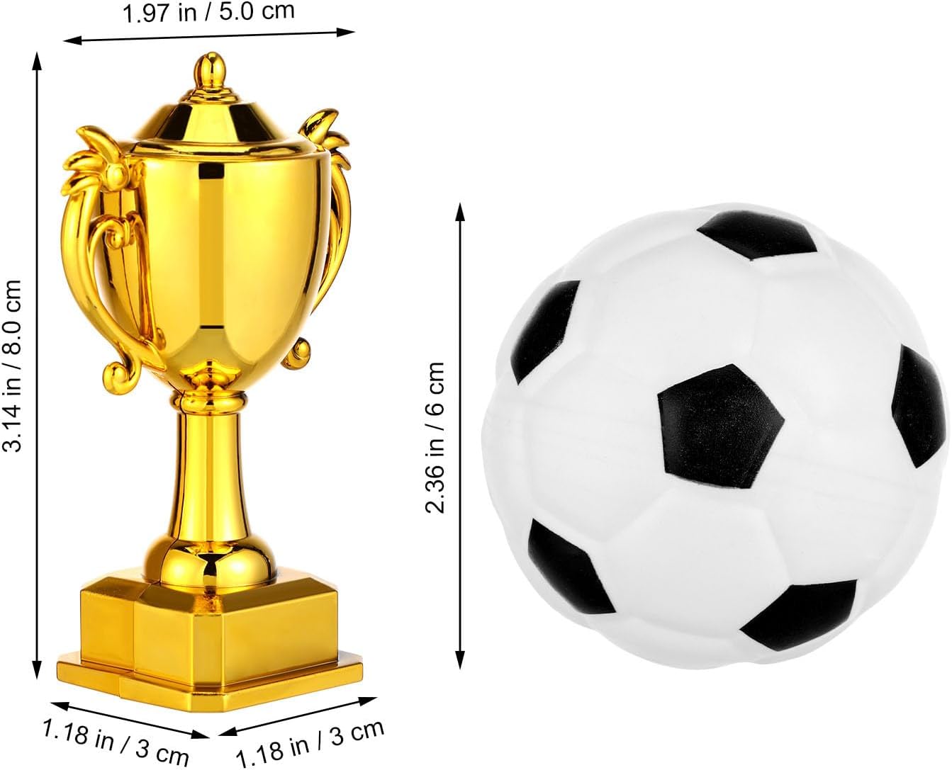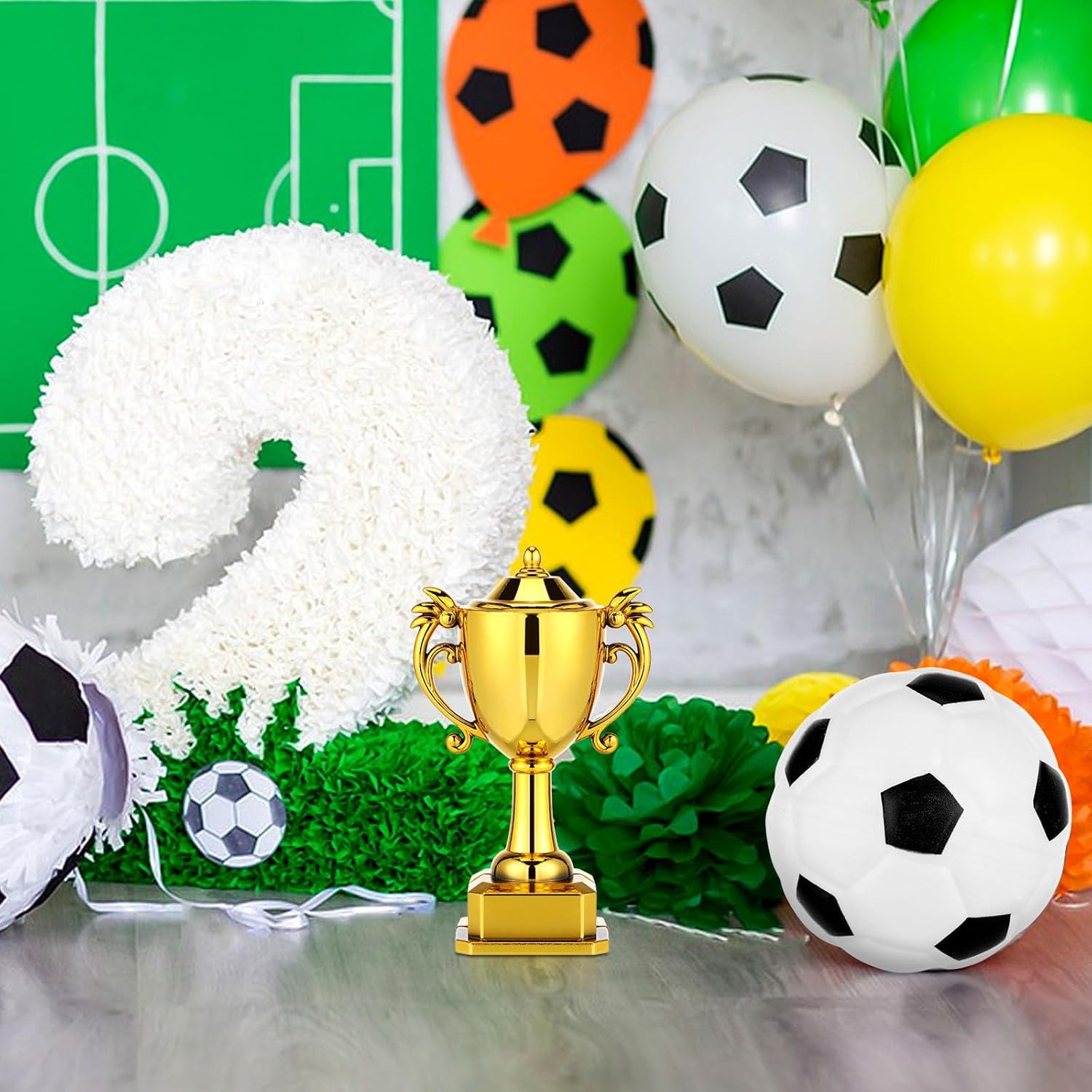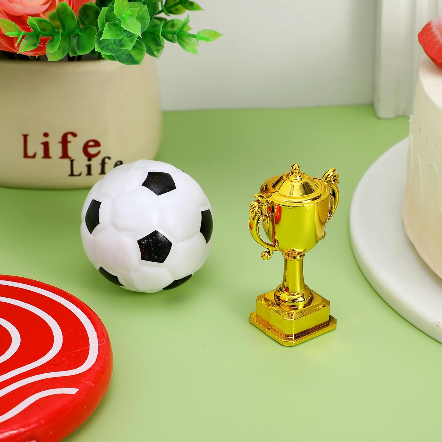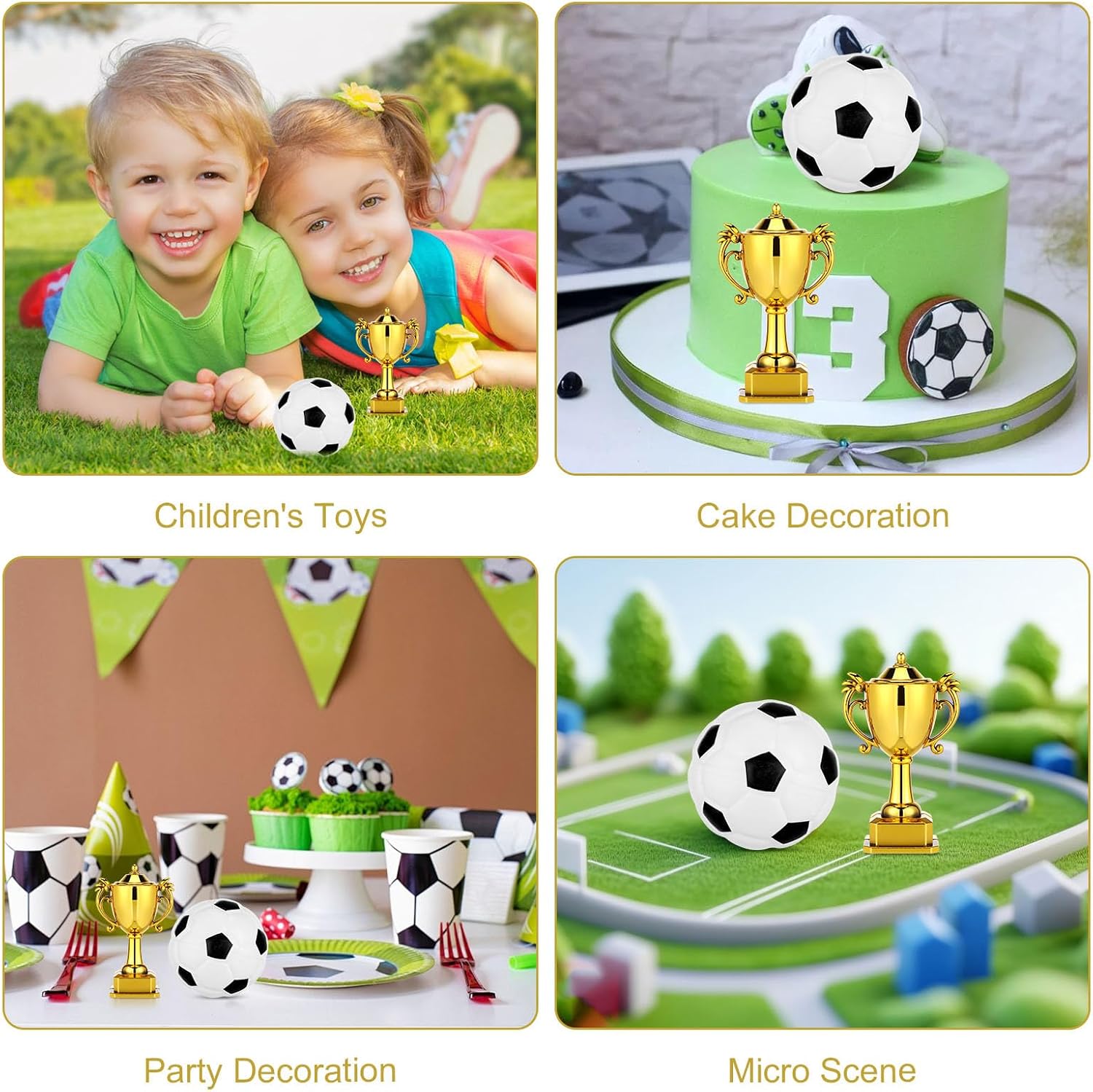 Materiale PC: i topper per torta a forma di pallone da calcio sono realizzati in PC, non si deformano facilmente e sono riutilizzabili. Questi topper per torta a forma di pallone da calcio sono l'aggiunta perfetta a torte, cupcake, muffin e dessert. Set di mini trofei e modellini di calcio: la decorazione per torta a forma di pallone da calcio include un mini e un mini di pallone da calcio. La forma è realistica e i colori sono vivaci. Aggiungi queste graziose decorazioni per torte di compleanno a forma di pallone da calcio alla tua torta per renderla più . Facili da usare: queste decorazioni per torte a forma di pallone da calcio sono facili da usare e non richiedono altri strumenti. Dopo averle pulite, puoi semplicemente posizionarle sulla torta. Sono leggere e non danneggeranno la forma della torta. Riutilizzabile: il cake topper a forma di pallone da calcio è riutilizzabile, dopo averlo pulito puoi riutilizzarlo o conservarlo come souvenir. La superficie liscia è facile da pulire. Ampia applicazione: queste decorazioni per torte a tema calcio possono essere posizionate su cupcake, torte di compleanno e altri dessert. Sono molto adatte per decorazioni per feste a tema calcio, decorazioni per feste a tema sportivo, decorazioni per feste a tema sportivo all'aperto, rendendo la decorazione della tua festa più ricca e interessante.