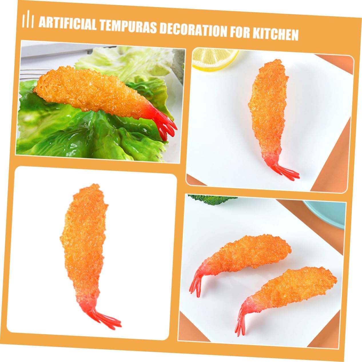 Modelli di gamberetti finti realistici: compatti e leggeri, i nostri decori di simulazione ti consentono di spargerli sul tavolo come decorazioni, oggetti di scena di gamberetti finti Di tempura fotografica: decorazione di gamberi tempura artificiali e attraenti per la cucina, la tavola e altre occasioni, giocattolo di gamberi realistico Ornamento alimentare da cucina: realizzato in materiali in pvc, sicuro e pratico, durevole, creativo, non facile da rompere, decorazione alimentare artificiale Ornamento di gamberetti: adatto per casa, supermercato, macelleria, scuola, soggiorno, asilo, hotel, ecc., cibo artificiale da esposizione Supporto per tempura artificiale: con il design a forma di deliziosi gamberi in tempura, potrebbe aggiungere un tocco e uno stile inaspettato alla tua casa, gamberi artificiali realistici