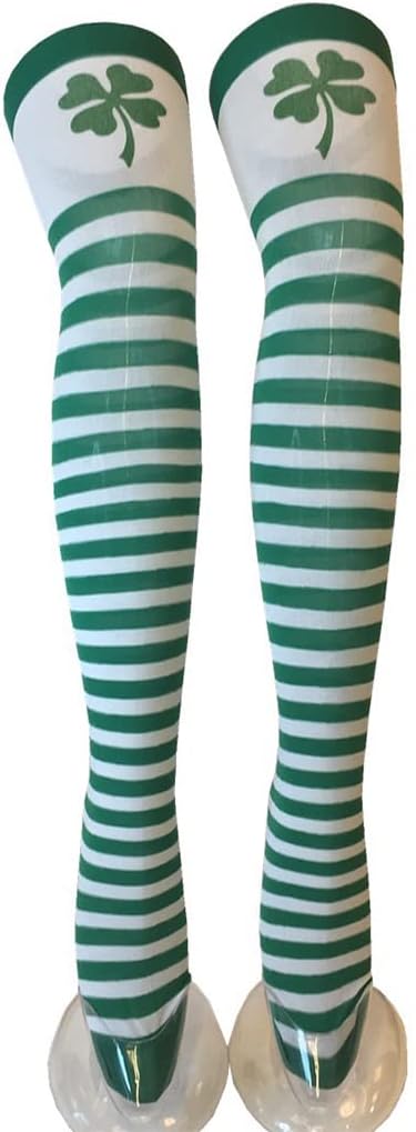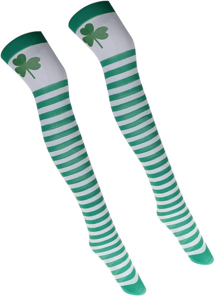 Calzini per il giorno: riempiti con motivo tradizionale irlandese tra cui trifoglio, trifoglio, a righe. Colore verde e colore bianco, simboleggia benedizioni religiose e sentimenti festivi, portare e divertimento. poliestere e spandex, elastico, traspirante, morbido, delicato sulla pelle, comodo da indossare. Taglia adatta per la maggior parte delle donne, con costume cosplay, abito, pantaloncini, gonne. Mostra perfettamente. Può essere applicato in feste di festival, intrattenimenti e spettacoli speciali per divertimento ed effetti eccezionali.
