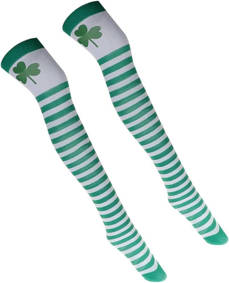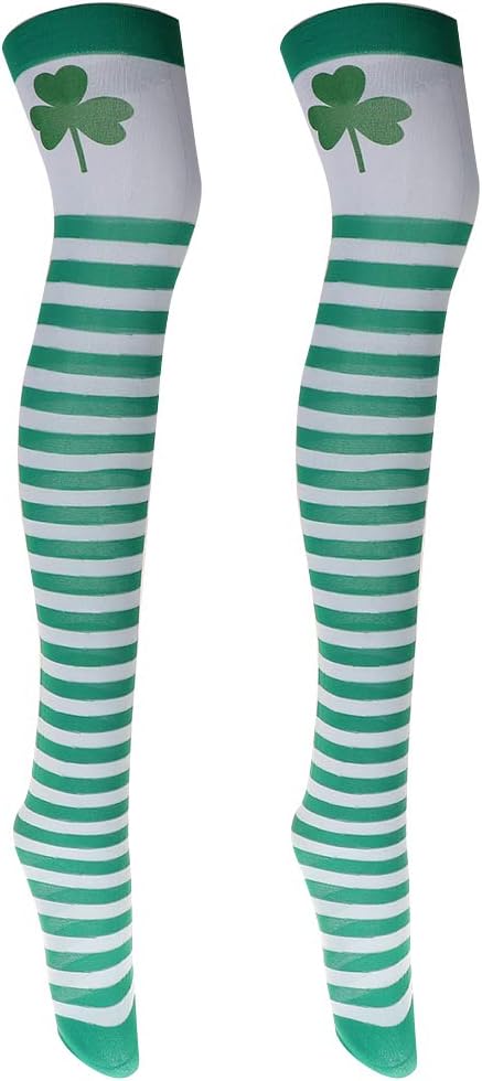 Calzini per il giorno: riempiti con motivo tradizionale irlandese tra cui trifoglio, trifoglio, a righe. Colore verde e colore bianco, simboleggia benedizioni religiose e sentimenti festivi, portare e divertimento. poliestere e spandex, elastico, traspirante, morbido, delicato sulla pelle, comodo da indossare. Taglia adatta per la maggior parte delle donne, con costume cosplay, abito, pantaloncini, gonne. Mostra perfettamente. Può essere applicato in feste di festival, intrattenimenti e spettacoli speciali per divertimento ed effetti eccezionali.