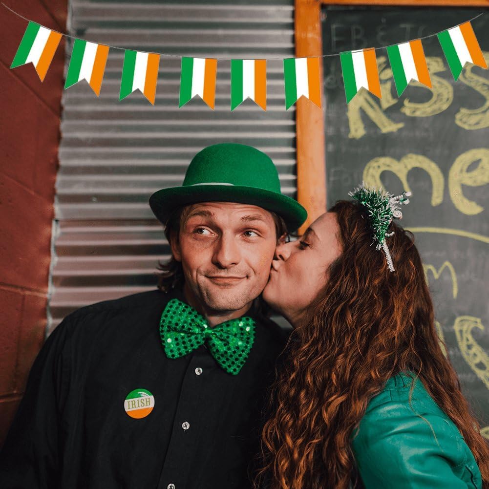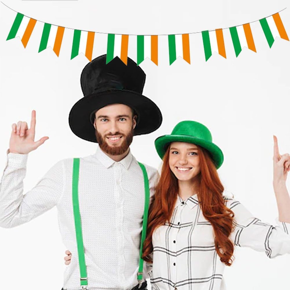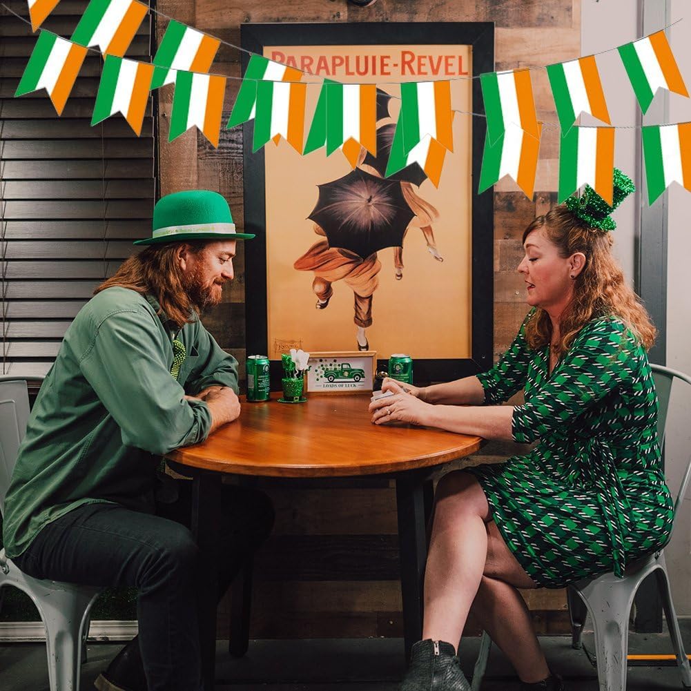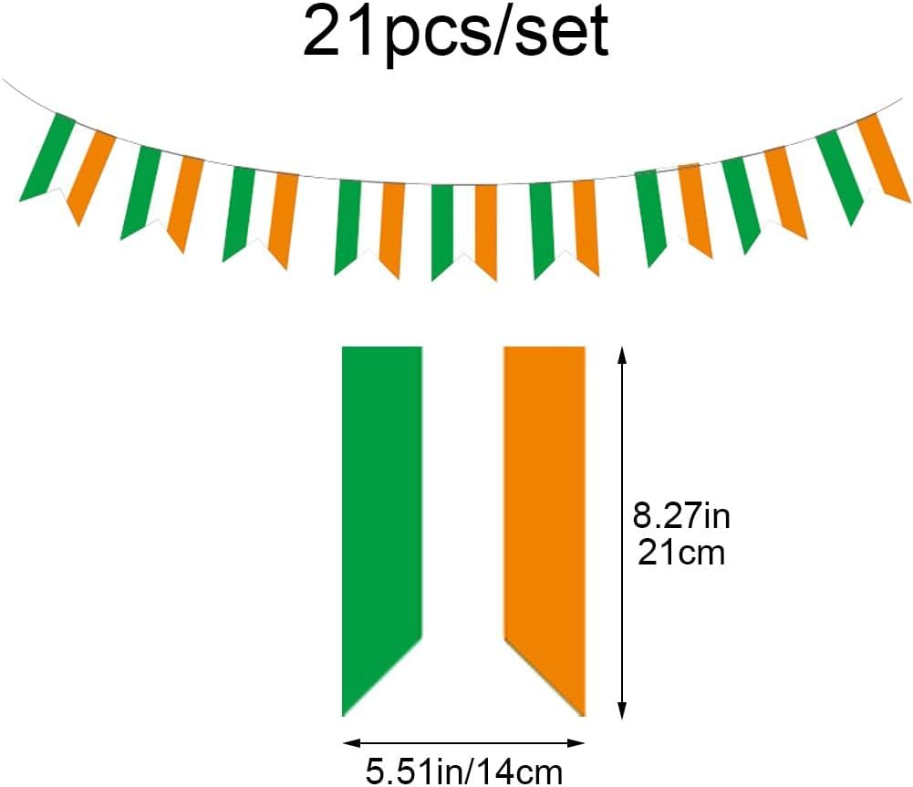 Decorazioni per il giorno di San Patrizio: questa bandiera irlandese irlandese può esprimere l'eccellente tradizione culturale del giorno di San Patrizio. Puoi decorare la tua festa in casa con questo striscione per festeggiare il giorno di San Patrizio con i tuoi amici e familiari. Materiale durevole: lo stendardo irlandese ha una lunga durata, è realizzato in resistente tessuto di poliestere. È impermeabile, non scolorisce dopo la pioggia, non si arriccia, non si deforma facilmente, adatto per uso esterno. Specifiche: Include 21 piccole bandiere irlandesi. Ogni bandiera misura circa 5,5 pollici di larghezza e 8,2 pollici di lunghezza. Multiplo: la ghirlanda con bandiera irlandese è perfetta per decorare aule, uffici, bar sportivi, portici, cortili o feste per aggiungere un tocco festoso. Decorazioni perfette per il giorno di San Patrizio. Colore brillante: la bandiera irlandese è composta da verde e arancione. Utilizzando squisite tecniche di stampa a tintura, la bandiera irlandese ha colori delicati e luminosi, ideali per la decorazione di interni o esterni.