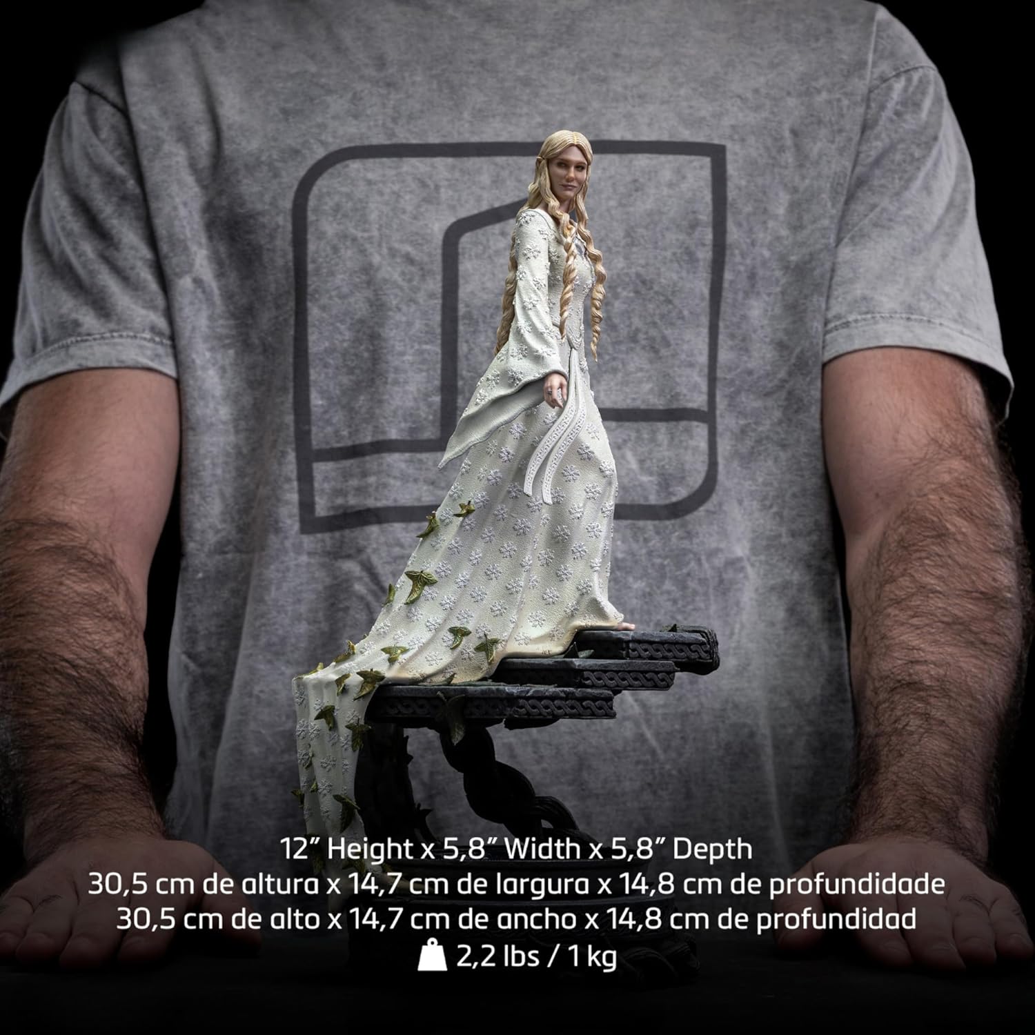 Ufficiale, dettagliata e durevole: questa statua Galadriel è meticolosamente realizzata e dipinta a mano con un'incredibile attenzione ai dettagli, catturando l'essenza del personaggio. Prodotto con licenza ufficiale: la statua Galadriel è un prodotto con licenza ufficiale, assicurando che i fan del franchise ricevano un oggetto da collezione autentico e di alta qualità. Perfetto per la visualizzazione: la statua ha un'altezza di circa 30,5 cm di Galadriel ed è disponibile in una confezione sicura con grafica mozzafiato, rendendola perfetta per essere visualizzata su una collezione, scrivania o scaffale. Ottimo regalo: Galadriel è un'ottima idea regalo per i fan di tutte le età del franchise Galadriel , sia come regalo di compleanno o per un'occasione speciale (Natale, festa dei re...), che si tratti di collezionisti o semplicemente fan del personaggio. Dimensioni: altezza 30,5 cm, altezza 14,7 cm, profondità 14,8 cm, inclusa la base espositiva.