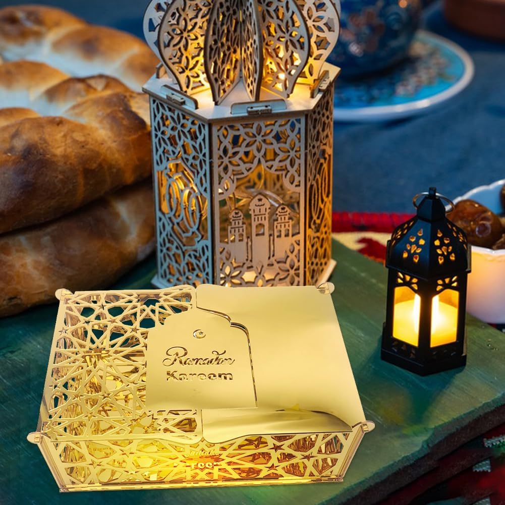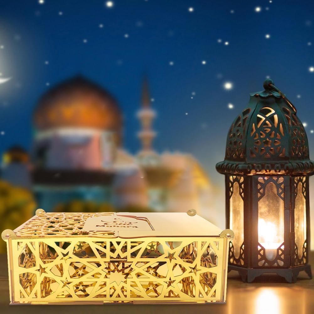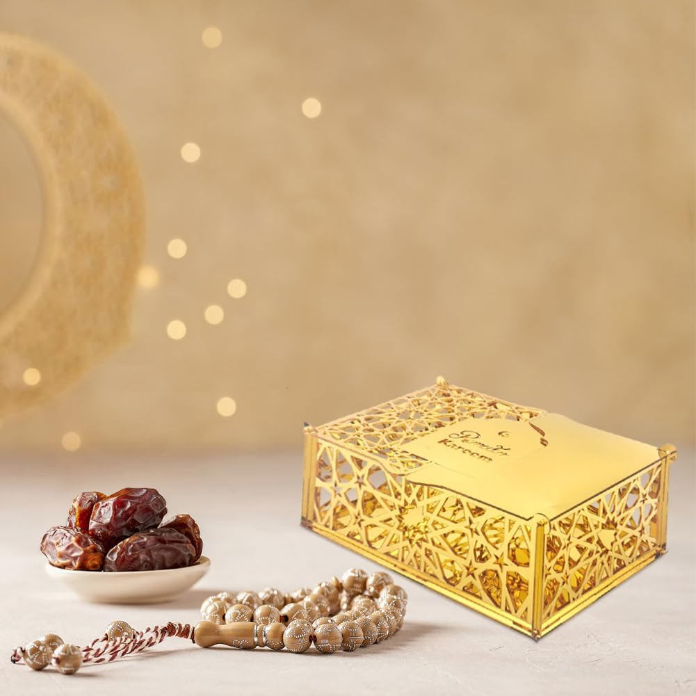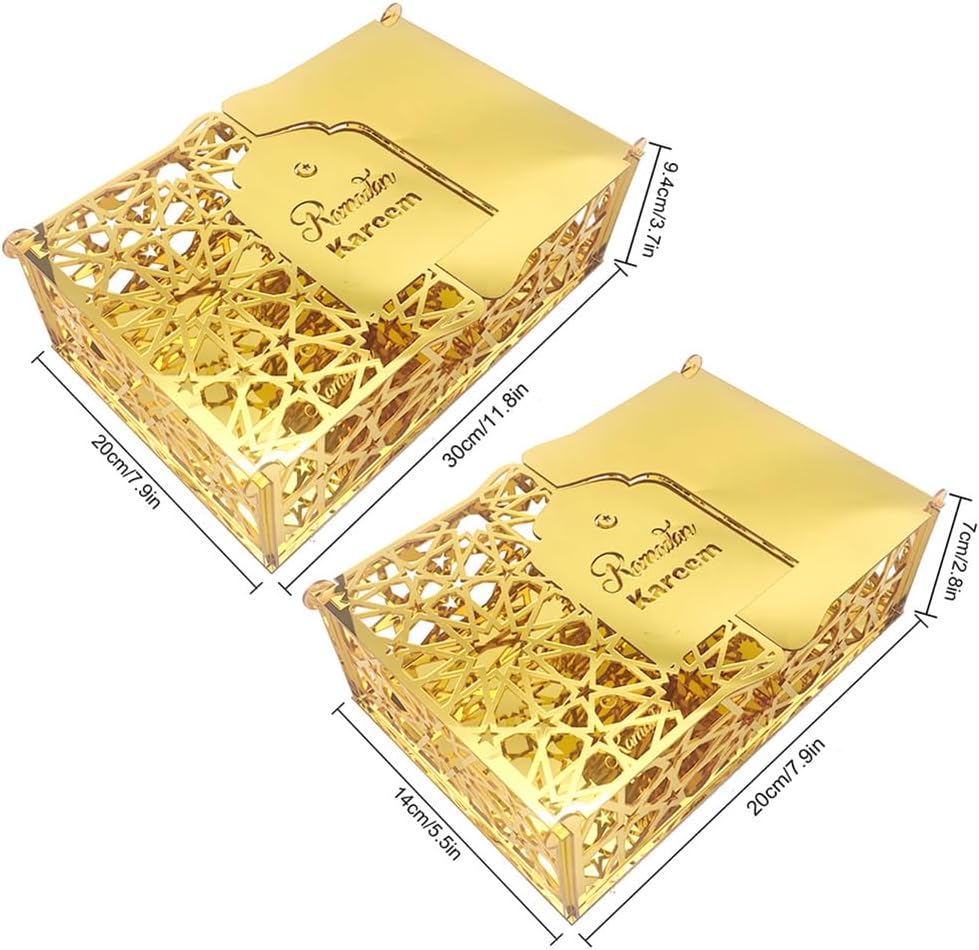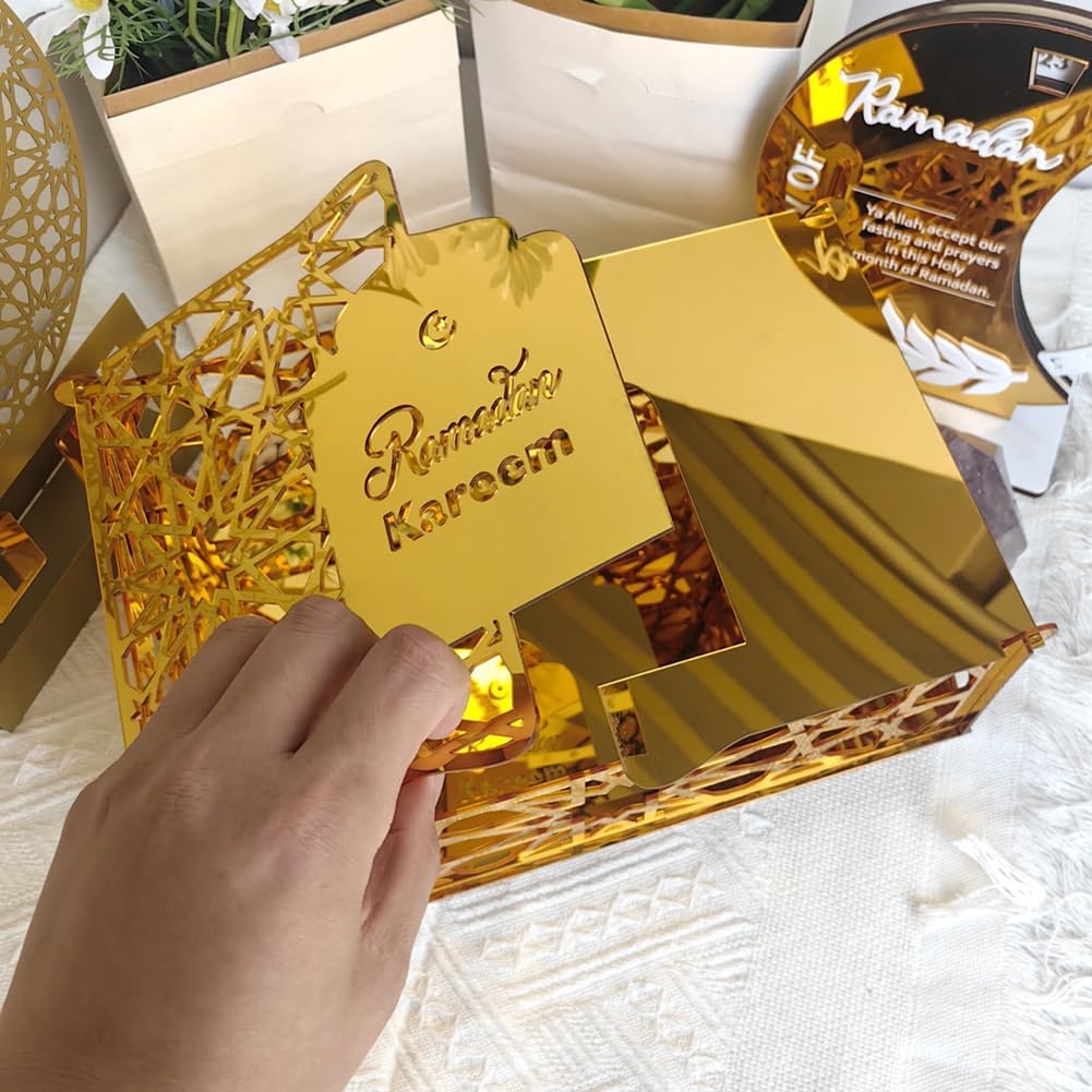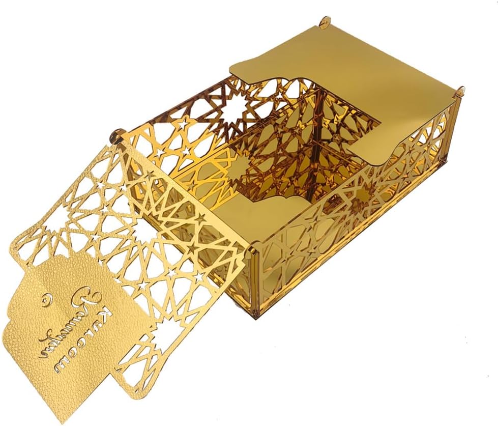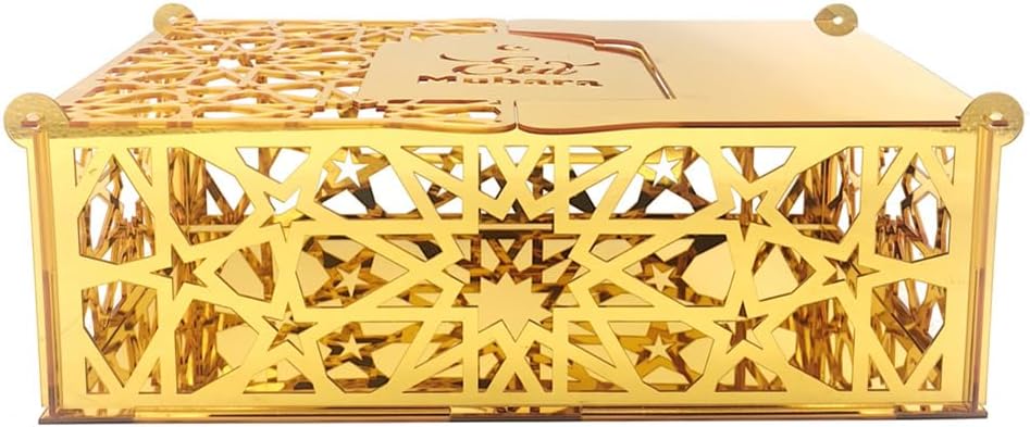 Design sofisticato: i bellissimi motivi geometrici islamici e la superficie dorata rendono queste scatole perfette come elementi decorativi e pratiche scatole regalo. Materiale di alta qualità: le scatole regalo Eid Mubarak sono realizzate in acrilico con una resistente finitura dorata che garantisce stabilità e durata pur mantenendo l'aspetto sofisticato. Goditi un momento di relax: le confezioni regalo Eid Mubarak creano una forte atmosfera di Eid al-Fitr, trasmettono momenti felici e gioiosi di riunione. Aggiungi stile alla tua casa decorando questo vassoio per abbinarlo all'arredamento della tua tavola attuale. Ampia applicazione: perfetta per decorazioni Ramadan, feste di compleanno, torte, dessert, frutta o semplicemente come decorazione per la tavola a casa. Regali Ramadan: questi sacchetti regalo riutilizzabili Ramadan non solo sono belli, ma sono anche perfetti per confezionare snack o altri regali per bambini, amici, familiari o vicini. Condividi l'atmosfera festosa con i tuoi cari.