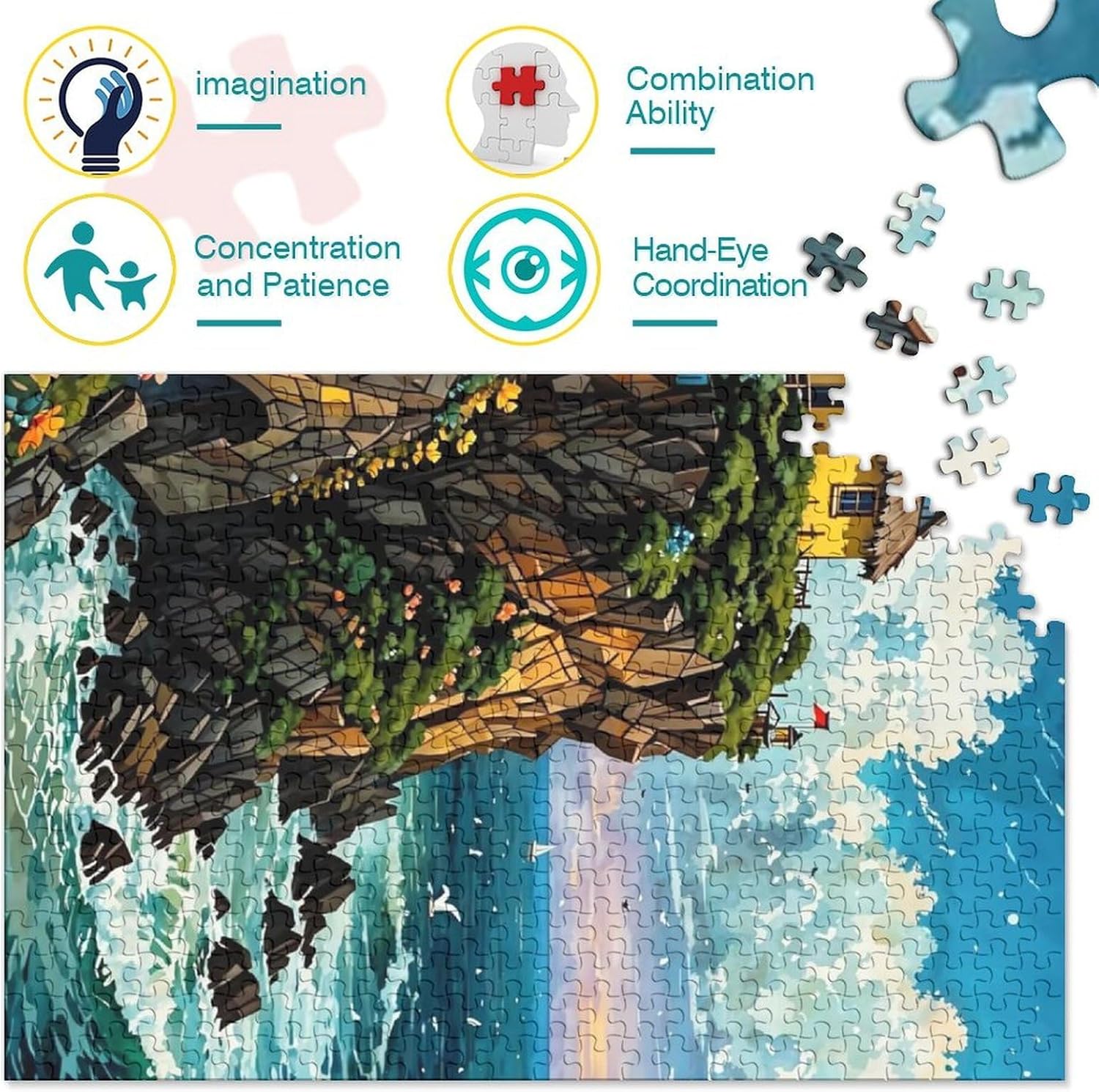 🌸GIOCHI PER ADULTI: una sfida emozionante da regalare a tutti li appassionati di puzzle e amanti dell'arte, ideale per uomo, donna o ragazzi; i puzzle aiutano a esercitare la memoria, migliorano la concentrazione e stimolano l'intuizione 🌸QUALITÀ PREMIUM: il massimo del divertimento con prodotti di altissima qualità in termini di materiali, motivi e design; realizzati in legno tagliati con fustelle fatte a mano, per un risultato impeccabile 🌸Buon regalo: il Cliffside Cottage puzzle finito misura 70x50cm/1000pcs una volta completato. I migliori regali per ragazzi e ragazze dai 14 anni in su per compleanni o festività (Natale, Halloween, Ringraziamento, ecc.) 🌸Concediti una piacevole pausa relax! La nostra linea di puzzle da Island 1000 pezzi è il regalo perfetto per chi ama ritagliarsi un momento di svago e di relax mettendo alla prova le proprie abilità logiche e di concentrazione 🌸I nostri Puzzle ti offrono un'ampia scelta d'immagini capace di soddisfare i gusti di tutti: grazie alla qualità dei materiali riciclati, la robustezza e resistenza dei singoli pezzi insieme alla brillantezza dei colori, ti garantiamo un risultato impeccabile e privo di riflessi