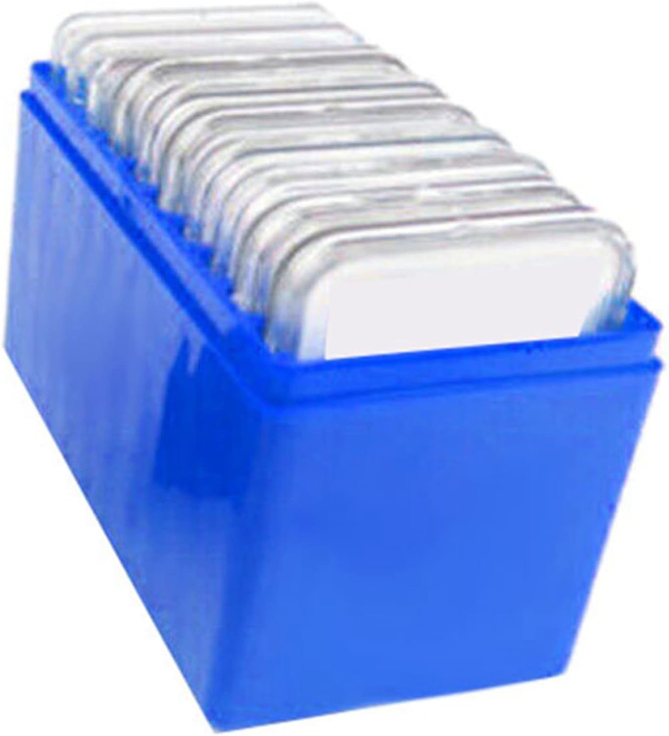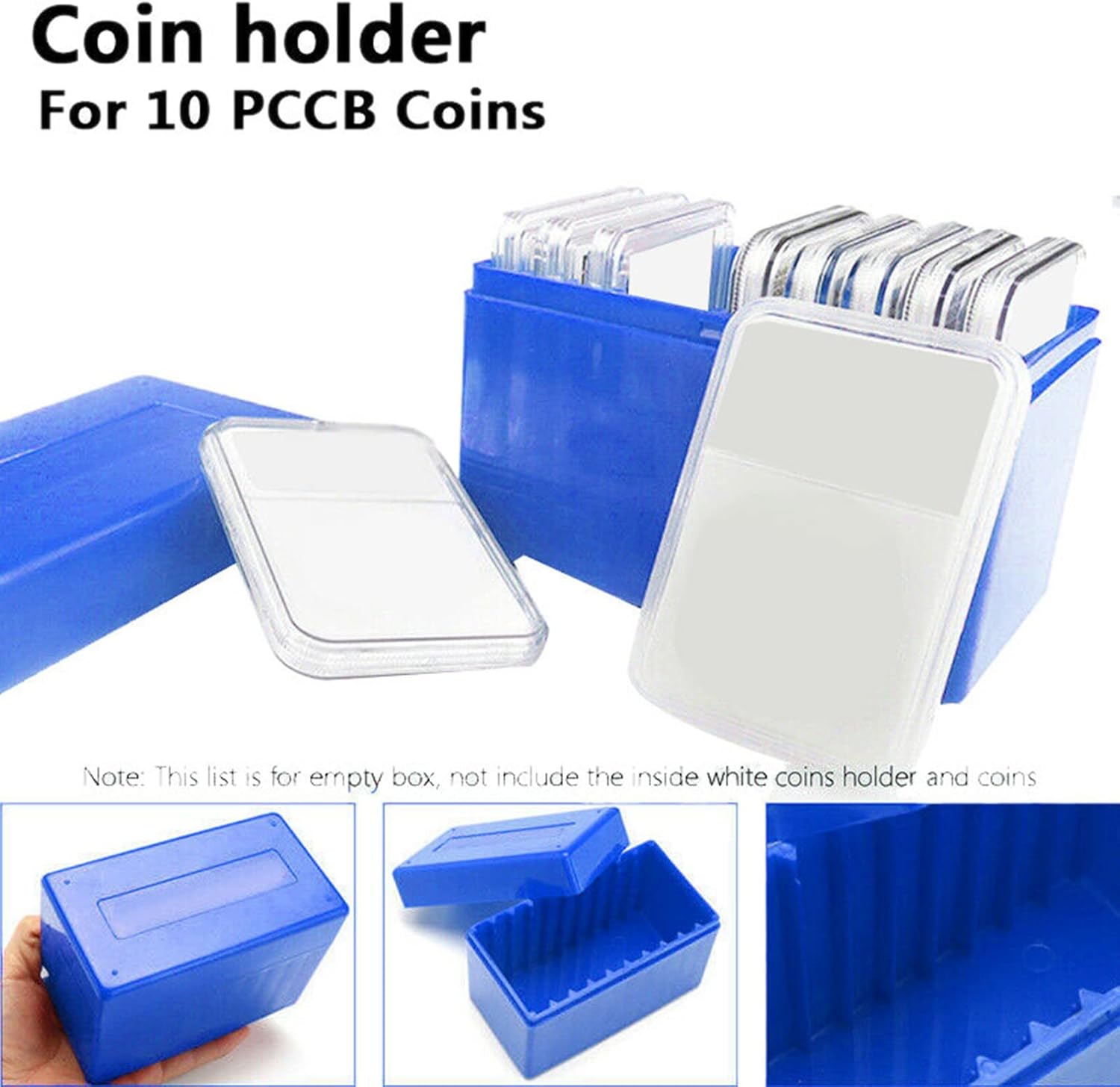 Scatta saldamente in posizione Realizzato con materiali di alta qualità, più resistente La scatola di immagazzinaggio può contenere 10 lastre per monete 100 % di zecca e alta qualità Questo interno della scatola è dotato di guide lungo ciascun lato per mantenere le lastre organizzate e separate