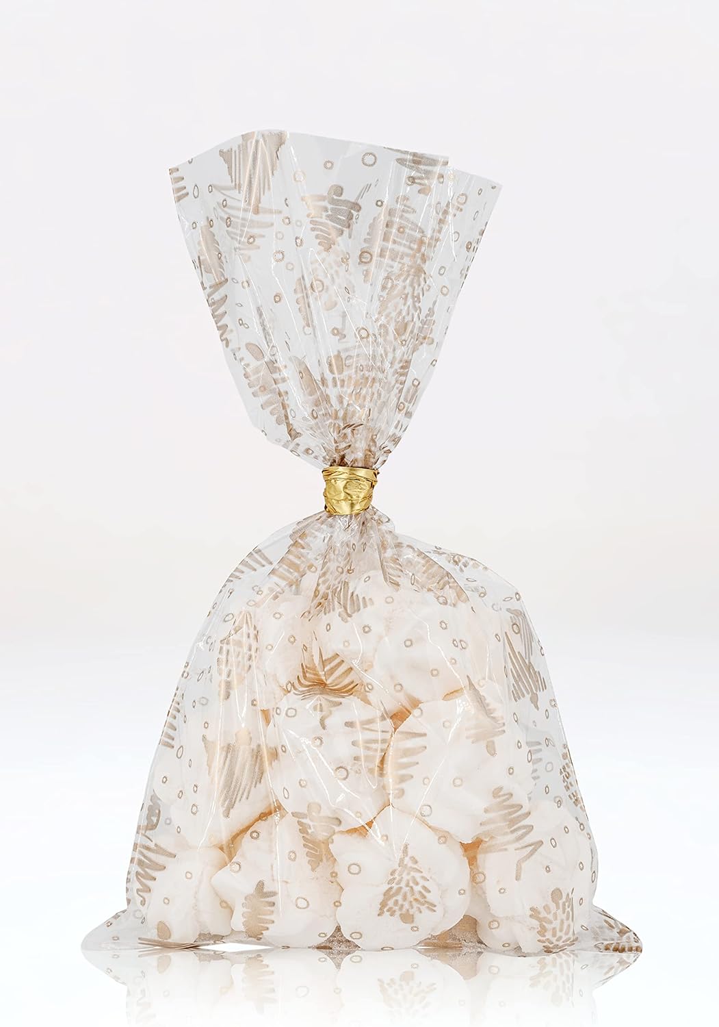 Materiale ad uso alimentare, ideale per confezionare prodotti come biscotti, caramelle, torte, cibi e regali Molto pratico e con un motivo prevalentemente natalizio, ideale per il periodo invernale ma anche per compleanni, feste e cerimonie in genere Materiale Plastica (polipropilene), spessore 30 micron (My), trasparente e resistente, 100% made in Italy Dimensioni: 15 x 25 cm (base 15 cm e altezza 25 cm) Confezione da 50 pezzi, stesso colore, stessa misura, nastro regalo non incluso incluso nella consegna