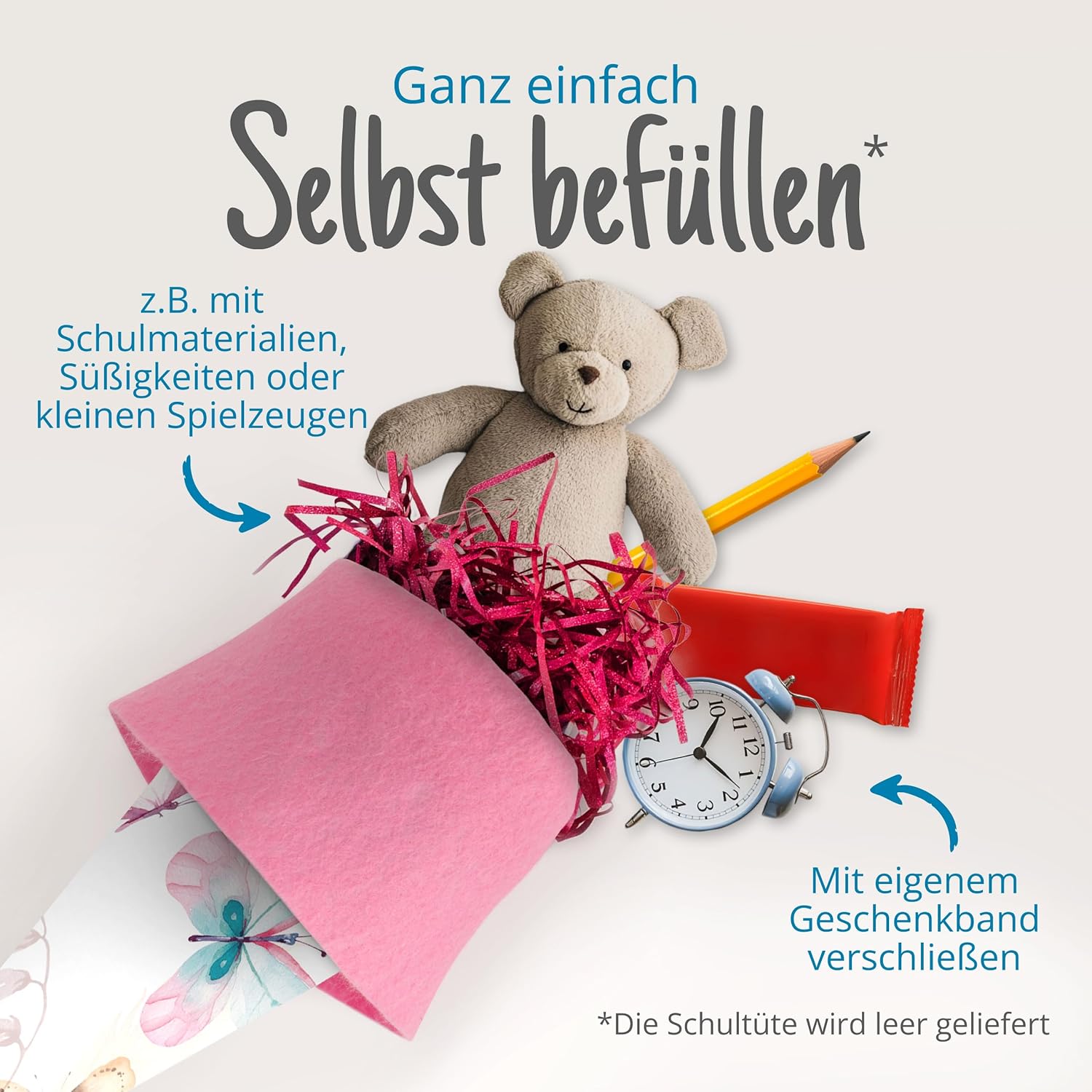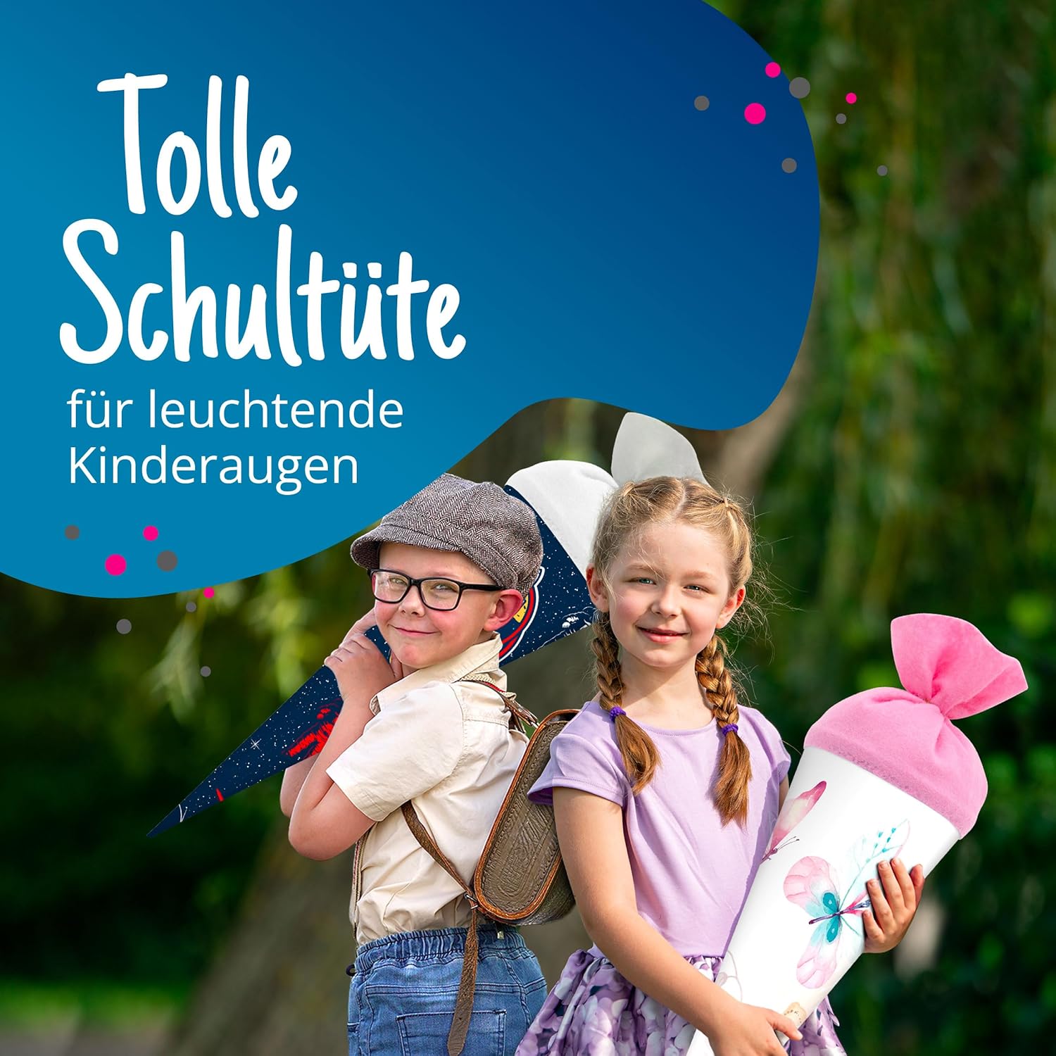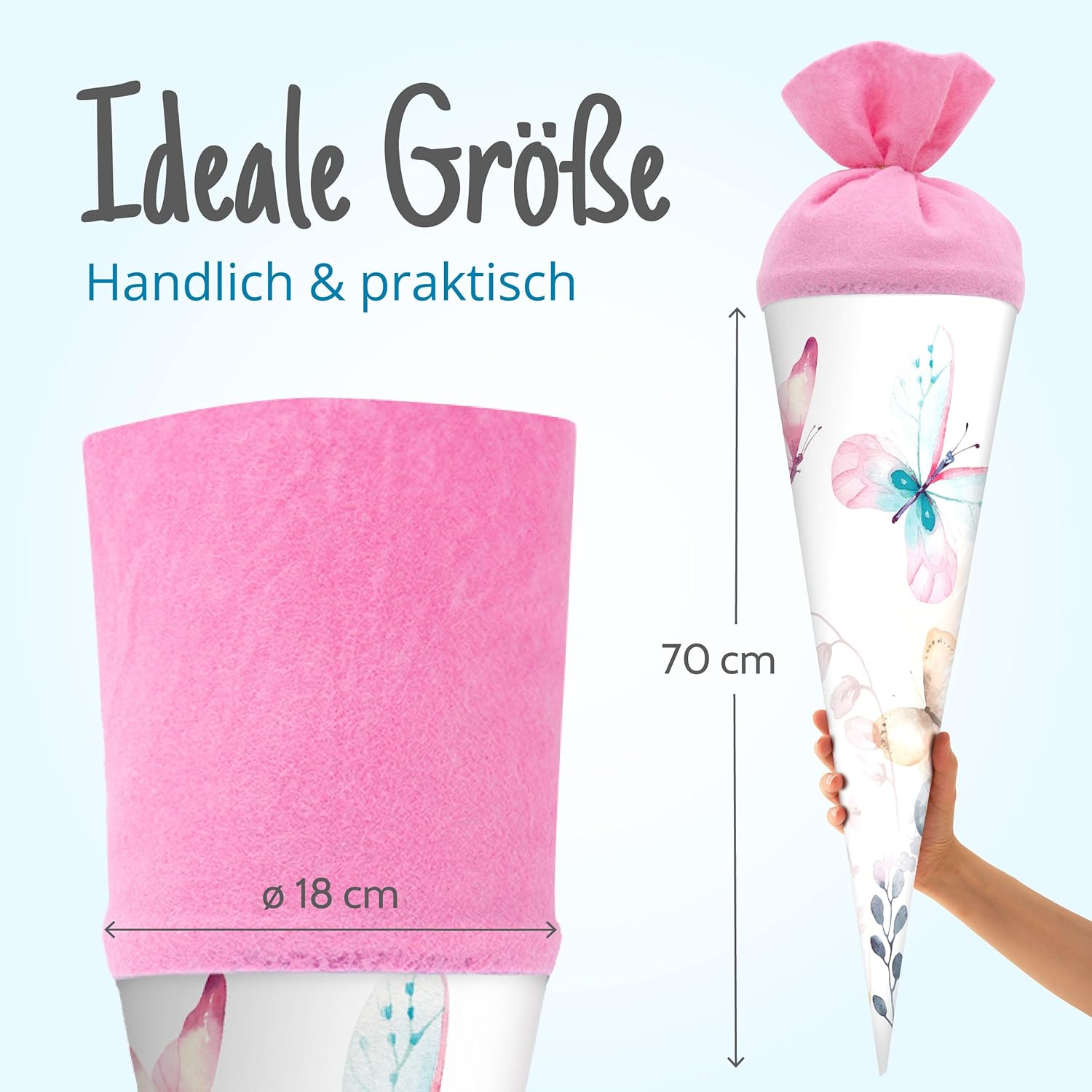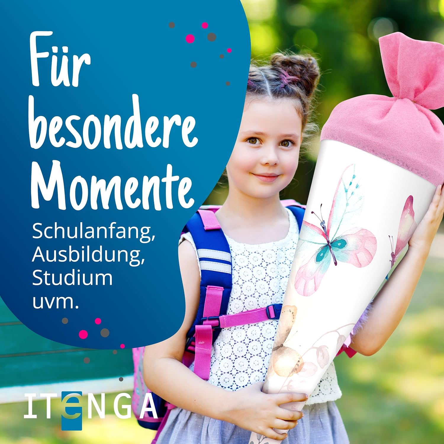 Borsa scolastica grande rinforzata 70 cm rotonda con chiusura motivo farfalle design moderno adatta per ragazze Ideale come regalo per l'inizio della scuola Spazio sufficiente per piccoli oggetti e dolcetti Fornitura: 1 borsa scolastica itenga 70 cm Motivo: farfalle Materiale: cartone