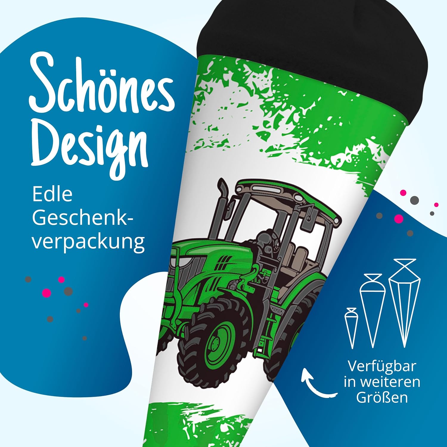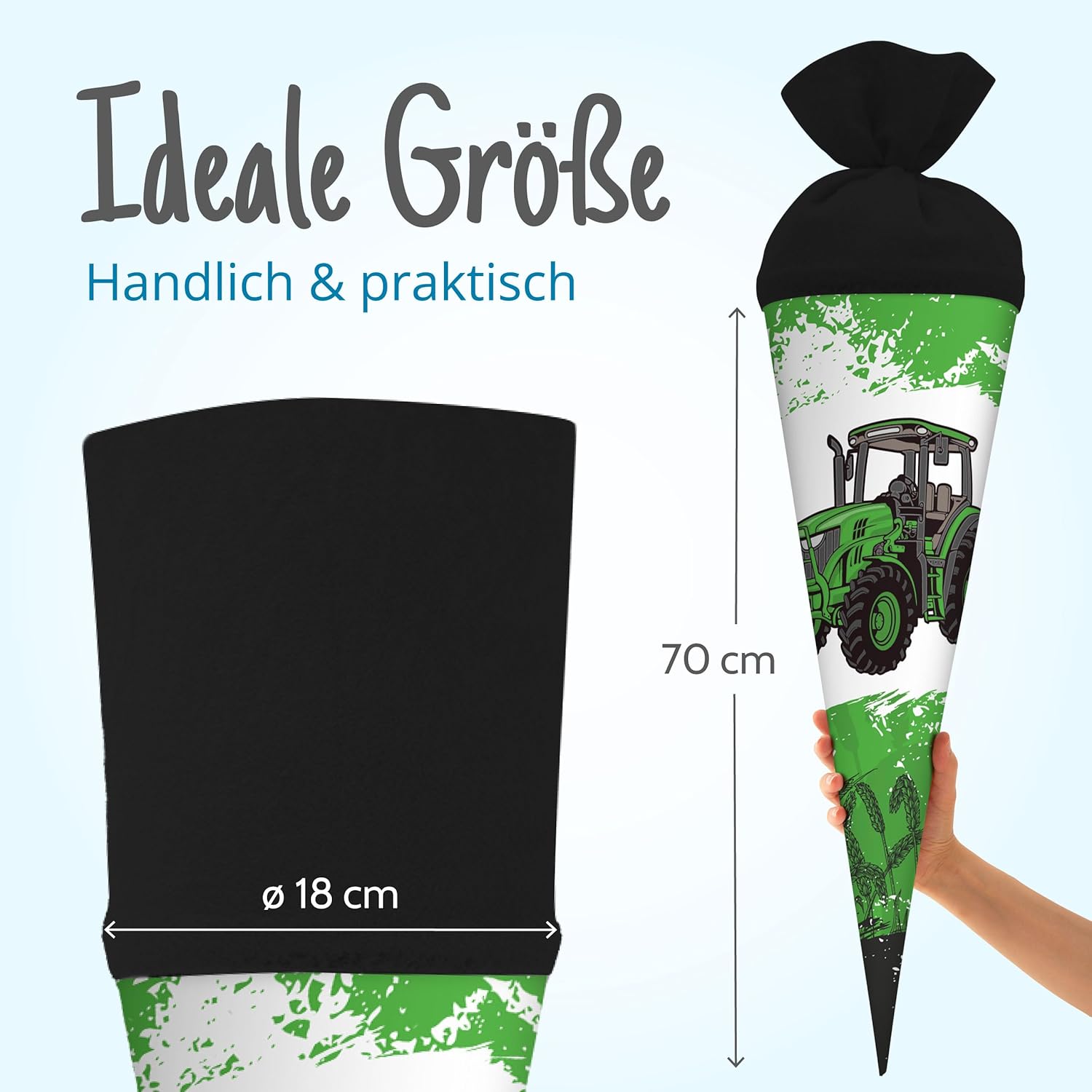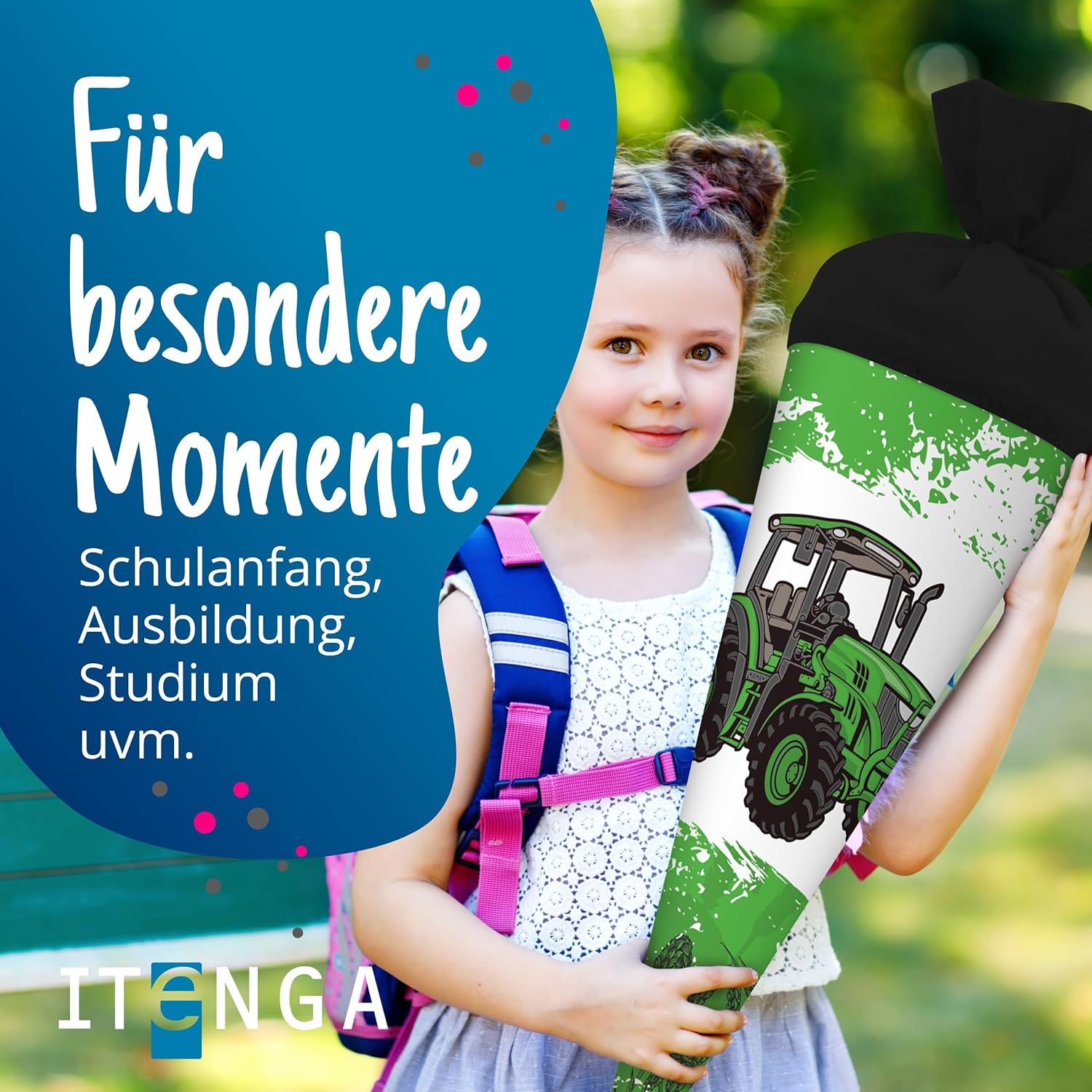 Zaino scolastico rinforzato grande 70 cm rotondo con chiusura motivo trattore design moderno adatto a ragazzi e ragazze Ideale come regalo per l'inizio della scuola Spazio sufficiente per piccoli oggetti e dolcetti Fornitura: 1 zaino scolastico itenga 70 cm Motivo: trattore Materiale: cartone