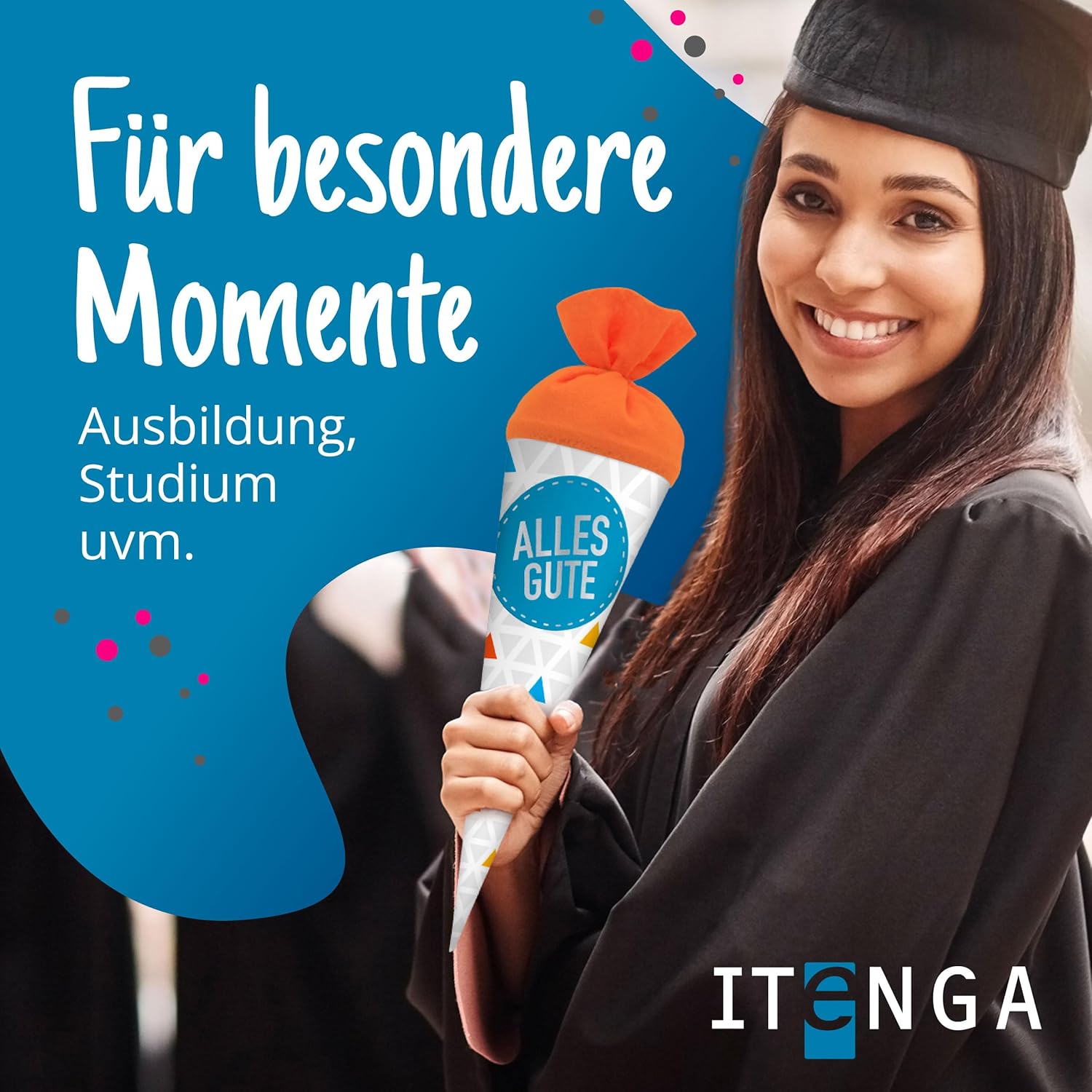 Scopri il nostro assortimento esclusivo per l'inizio della scuola & la scuola I nostri sacchetti per la scuola sono particolarmente popolari per iniziare a scuola. ☑ Dimensioni/materiale: 35 cm rotondo in cartone (250 g/m²) Modello: triangoli con adesivo in pregiata carta strutturata (circa 9,5 cm) "Alles Gute" Per maggiori informazioni, si prega di scorrere verso o di fare riferimento a "www.amazon.de/itenga".