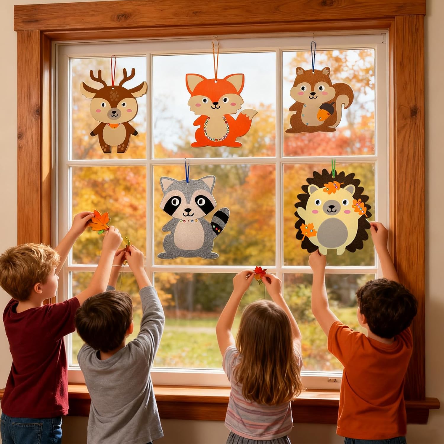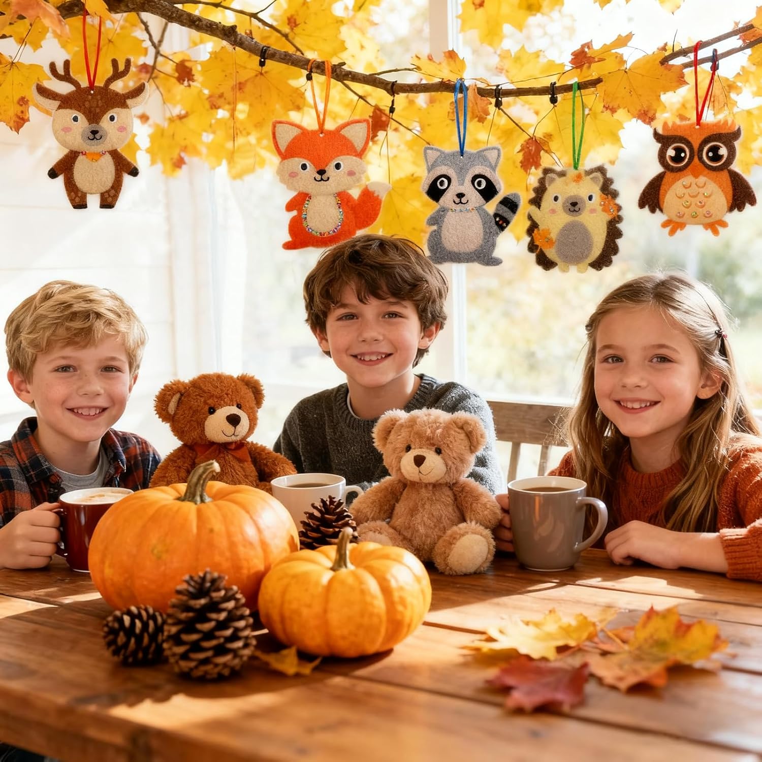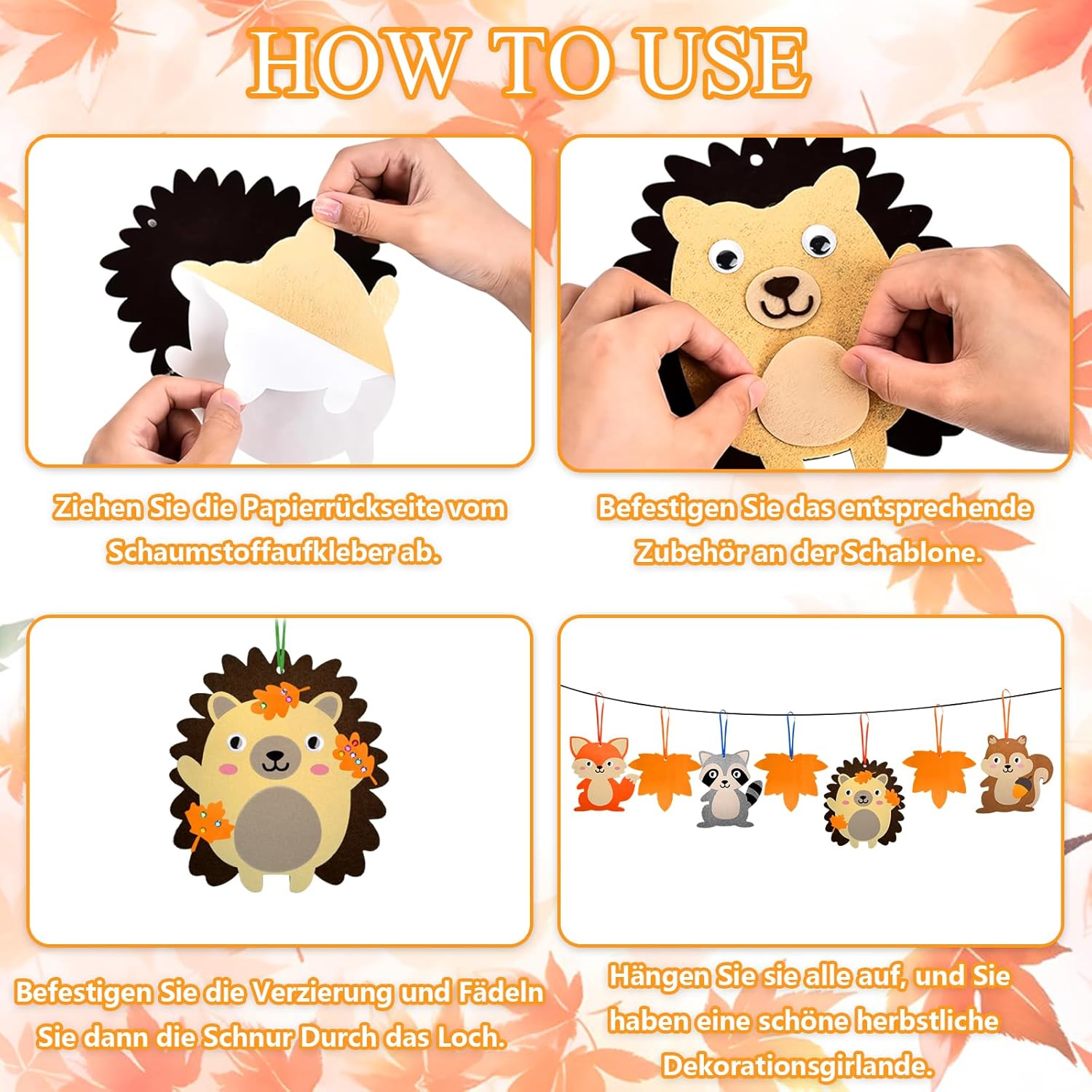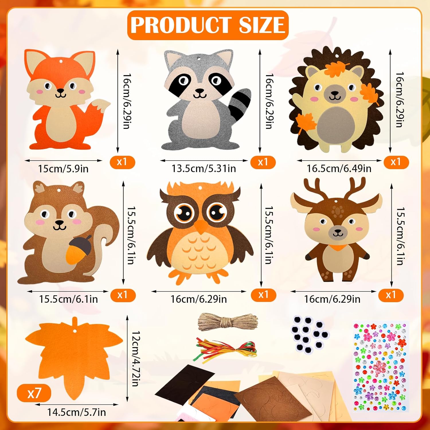 Kit fai da te autunnale: include sei diversi disegni, come gufo, riccio, scoiattolo, volpe, koala e cervo, 7 foglie autunnali, 13 nastri colorati per appendere gli animali finiti, dieci bulbi oculari, una corda, 12 piccoli accessori per animali, corpi e volti e adesivi. Abbastanza per il fai da te creativo del tuo bambino! Facile da usare: tutti gli accessori fai da te sono dotati di adesivi che puoi attaccare rapidamente allo stencil in feltro. I bambini possono fissarli insieme per creare una divertente decorazione a forma di gufo da appendere! Materiali di alta qualità: il kit fai da te è realizzato in feltro di alta qualità. leggero e durevole e sicuro da usare, può essere utilizzato con fiducia ai vostri bambini. Riutilizzabile, che garantisce un gioco lungo. Delicate Craft Kit: questo set per bricolage con animali autunnali è adatto per tutte le età. Puoi farlo con i tuoi figli e amici. Può essere utilizzato anche come decorazione per le feste autunnali, del Ringraziamento e Natale. Ampio utilizzo: ideale per compiti a casa, attività di festa, artigianato. Kit fai da te per decorazioni autunnali, feste, feste, Natale, carnevale, festival, Ringraziamento e altre decorazioni.