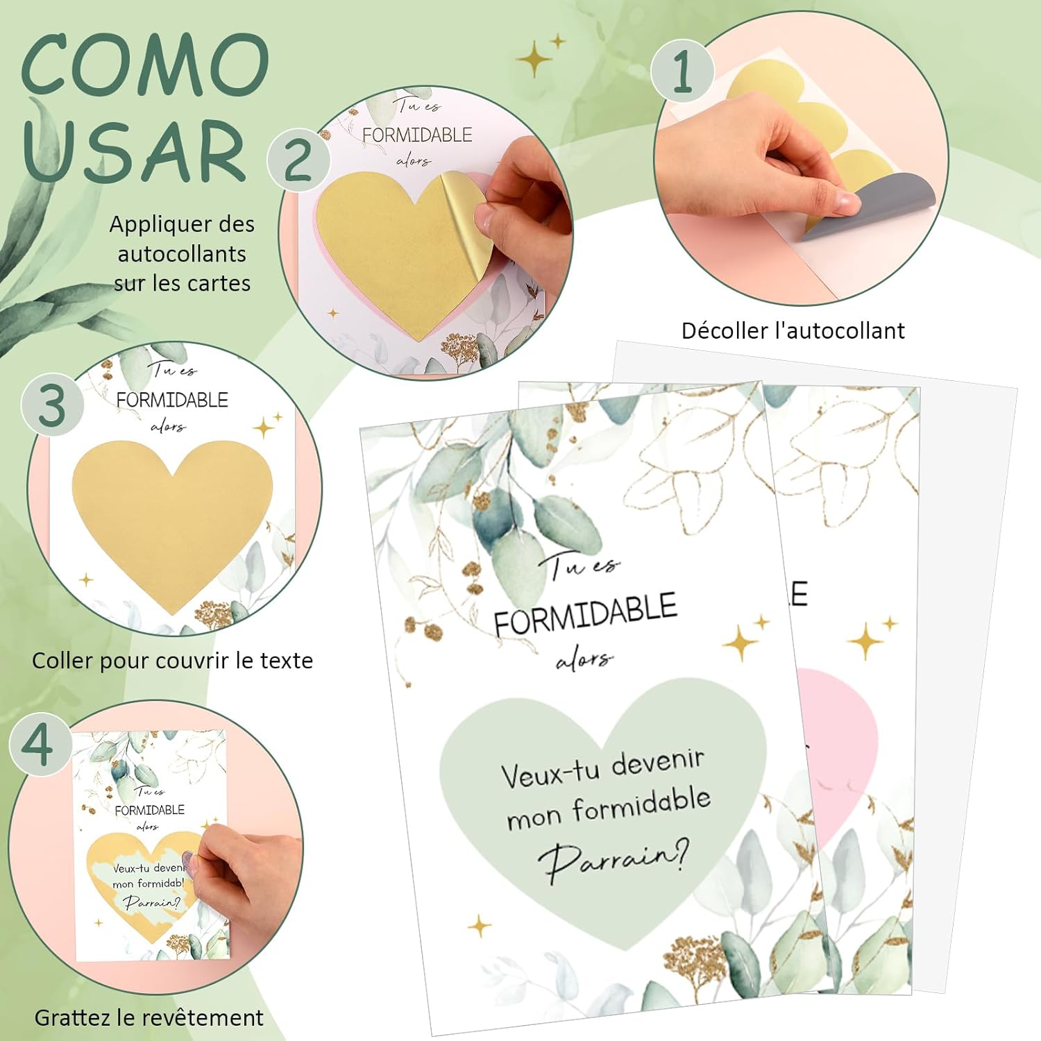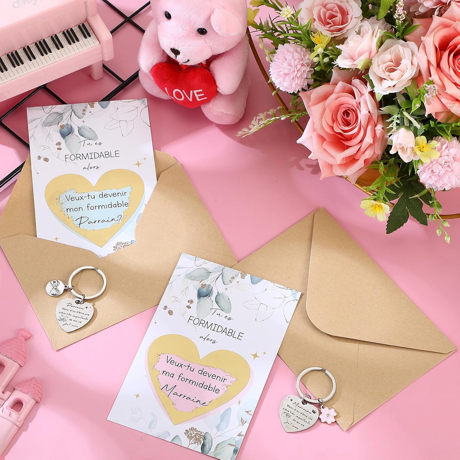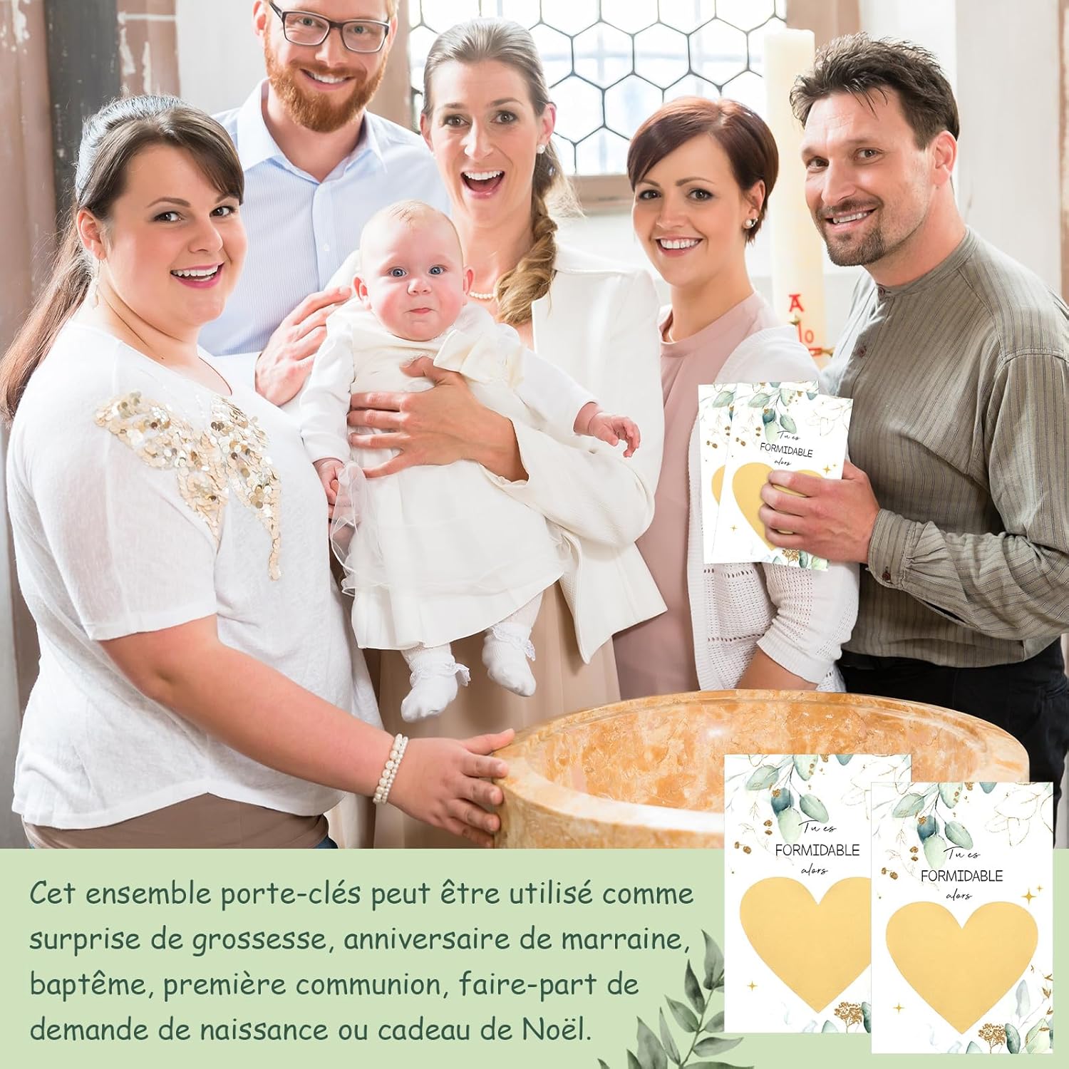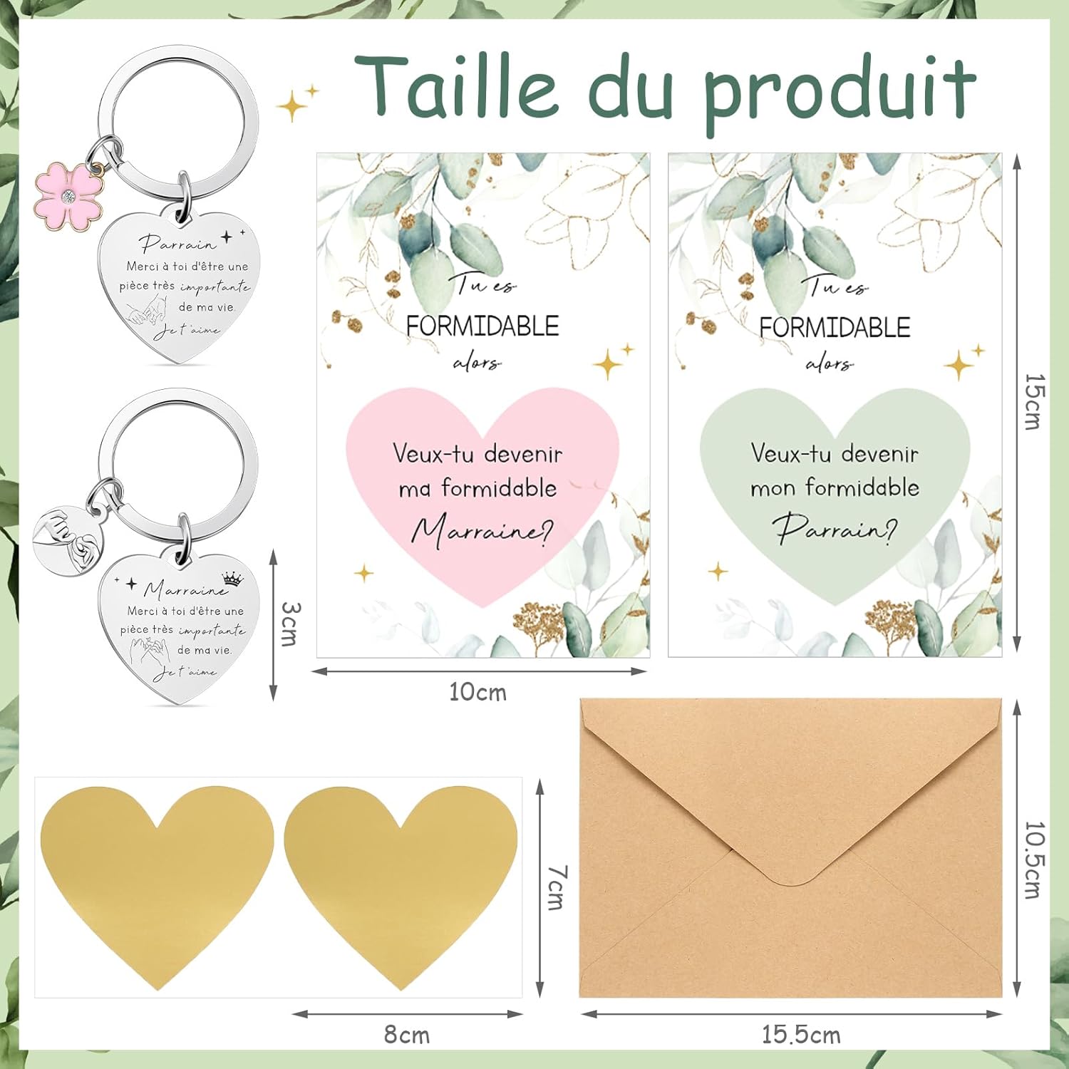 Regali creativi per i padrini: Regali per le madrine 2 gratta e vinci di cui 1 Sarai tu la mia madrina? 1 Vuoi essere il mio padrino 2 Adesivi da grattare 2 Portachiavi con la madrina e il padrino migliori al mondo su 2 buste di carta Kraft Design raffinato ed elegante: i biglietti per gli annunci del padrino sono stampati con [sei GRANDE allora, Vuoi diventare il mio meraviglioso padrino, Vuoi diventare la mia meravigliosa madrina] con uno squisito motivo di foglie di eucalipto, Il portachiavi del padrino e della madrina è stampato con le parole [Madrina grazie per essere stata una persona molto importante parte della mia vita, ti amo] [Padrino, grazie per essere una parte molto importante della mia vita, ti amo], prometti di tenere per mano il disegno Come usare il biglietto: Attacca l'adesivo da grattare d'amore sul testo, quando il padrino e la madrina lo graffiano, saranno sorpresi di vedere il testo all'interno, sarai il mio padrino, sarai la mia madrina? Lascia il retro vuoto, puoi scrivere un messaggio o allegare la tua foto preferita per decorare, oppure mettere il biglietto da grattare in una busta e consegnarlo a qualcuno amico quindi rimane misterioso. Questo è anche un ottimo regalo per la gravidanza Dimensioni e materiale: biglietto da grattare richiesta madrina di circa 10 x 15 cm, carta da 300 g, viene fornito con 2 adesivi da grattare a forma di cuore 7 x 8 cm, busta 15,5 x 10,5 cm, chiavi del battesimo del padrino e della madrina La fibbia misura 3 x 3 cm ed è realizzata in acciaio inossidabile, robusta e durevole, non si deforma facilmente, ha una superficie lucida e non graffia la pelle Regalo a sorpresa: Un regalo a sorpresa fatto con amore, il biglietto annuncio gravidanza è perfetto per chiedere alle tue amiche se vogliono essere madrine e padrini quando annunci la tua gravidanza. Perfetto per Natale, compleanni, battesimi, festa della mamma, festa del papà e altro ancora. Nel frattempo, il portachiavi del Padrino può essere appeso a chiavi, zaini e portafogli come decorazione