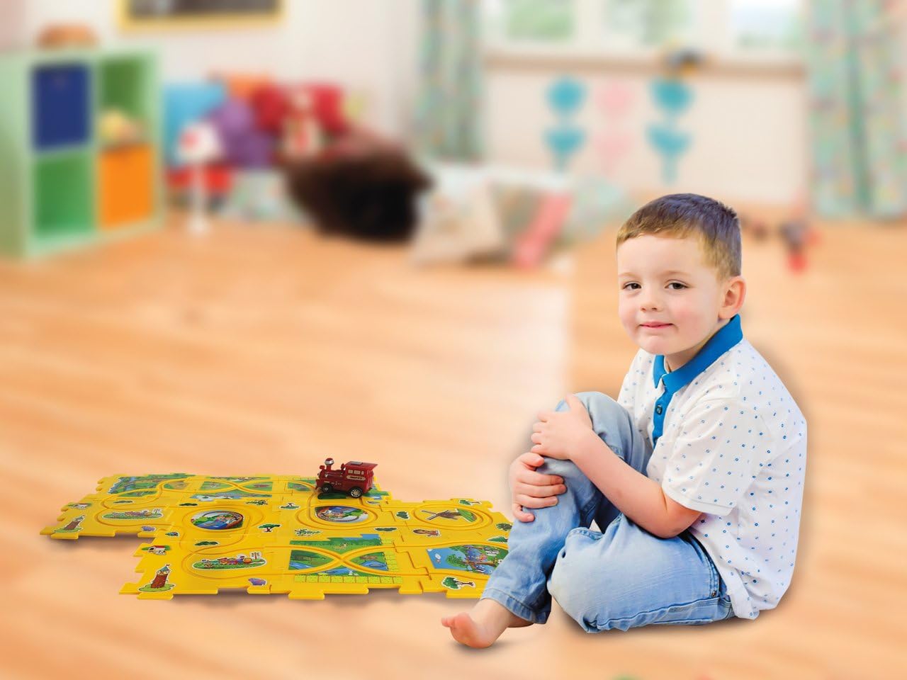 Progetta la rete ferroviaria e assembla il puzzle I pezzi del puzzle sono fatti di plastica robusta così come la locomotiva Premendo un pulsante, il treno parte e si muove da solo lungo la linea ferroviaria costruita Da 3 anni