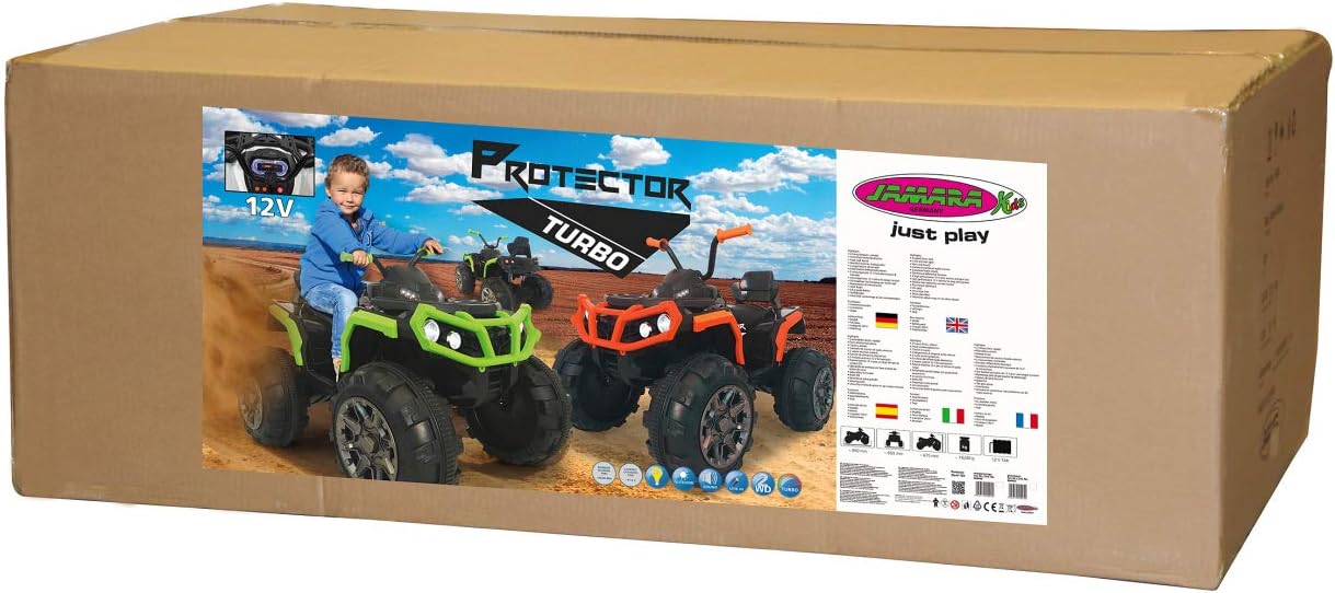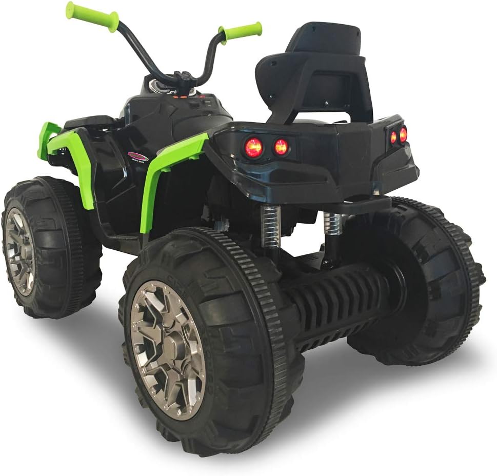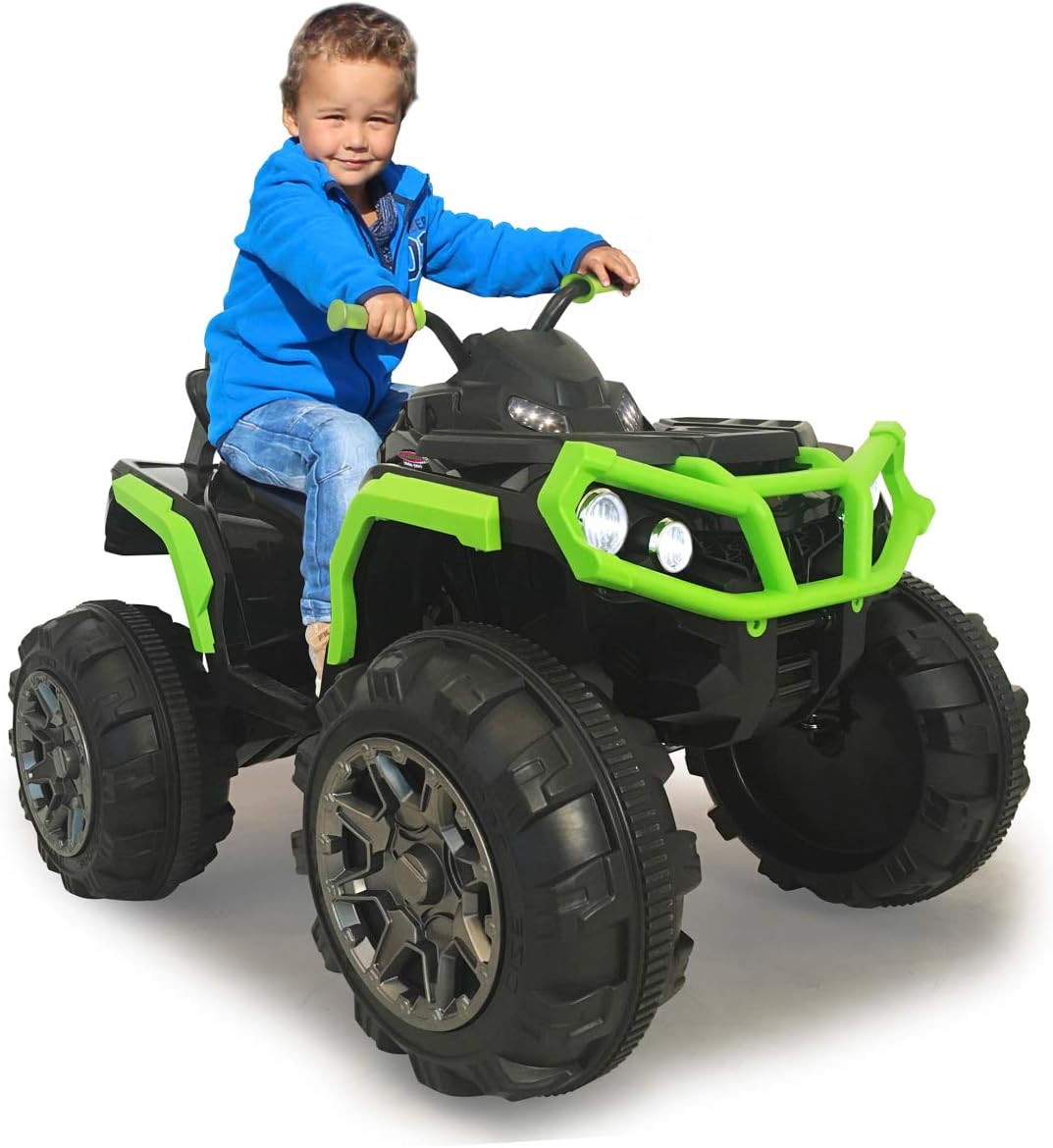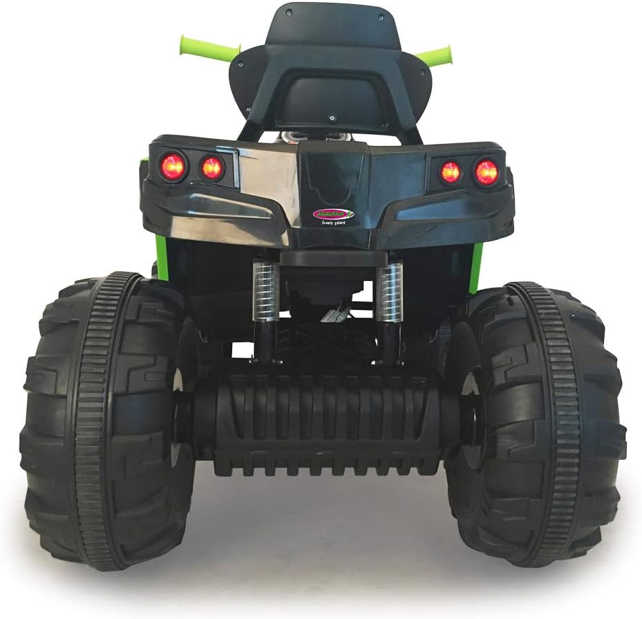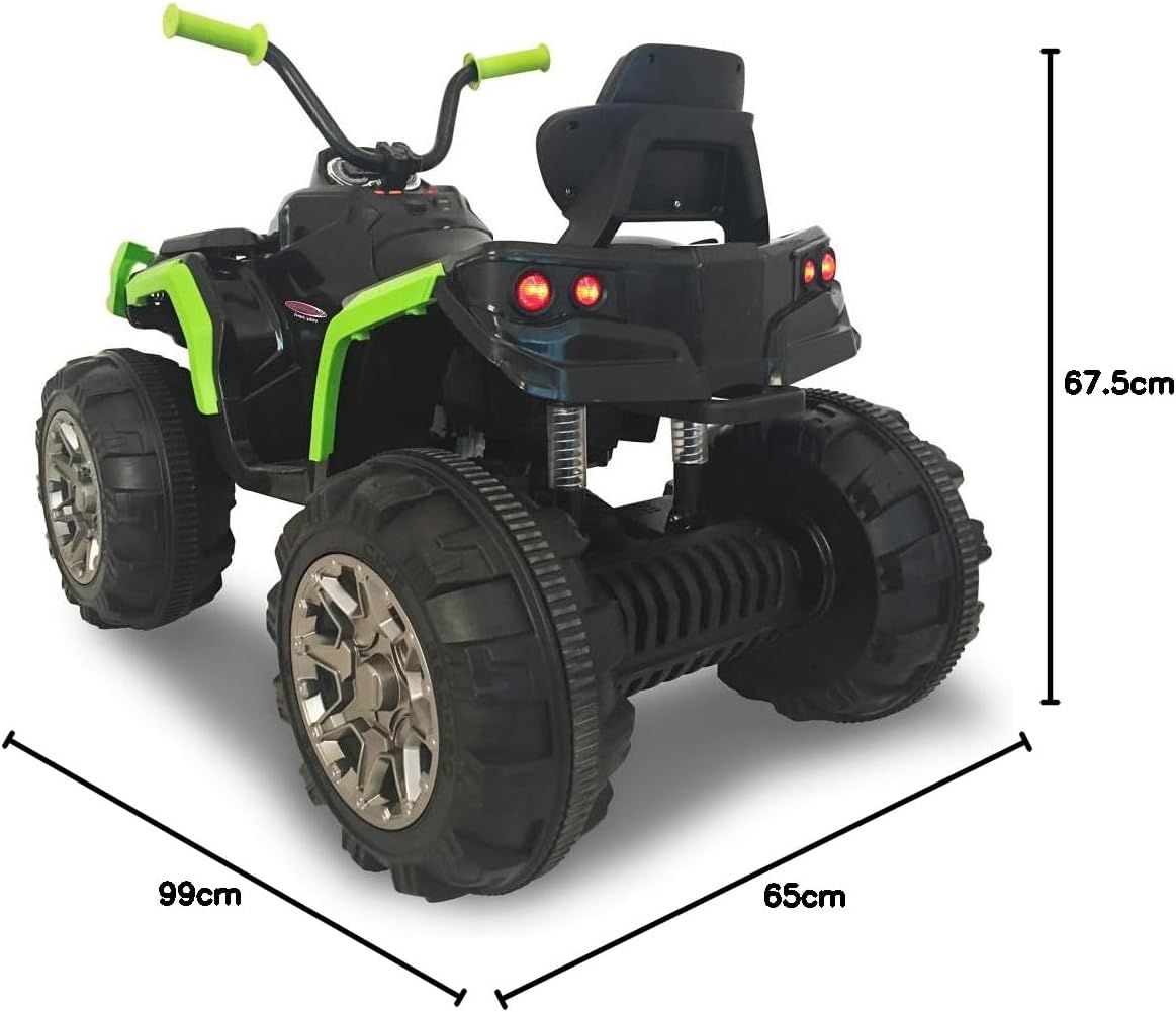 Avviamento senza chiave tramite pulsante, 2 velocità (lenta, veloce) Fari/fanali posteriori, cruscotto illuminato, anelli in gomma Ultra-Grip sulle ruote motrici Clacson e suono, collegamento di sorgenti audio esterne, radio FM 2 ruote posteriori motorizzate, pneumatici extra grandi, ammortizzatore, funzione differenziale elettrica 2 potenti motori di azionamento da 12 V e trasmissione, una potente batteria da 12 V per una guida prolungata