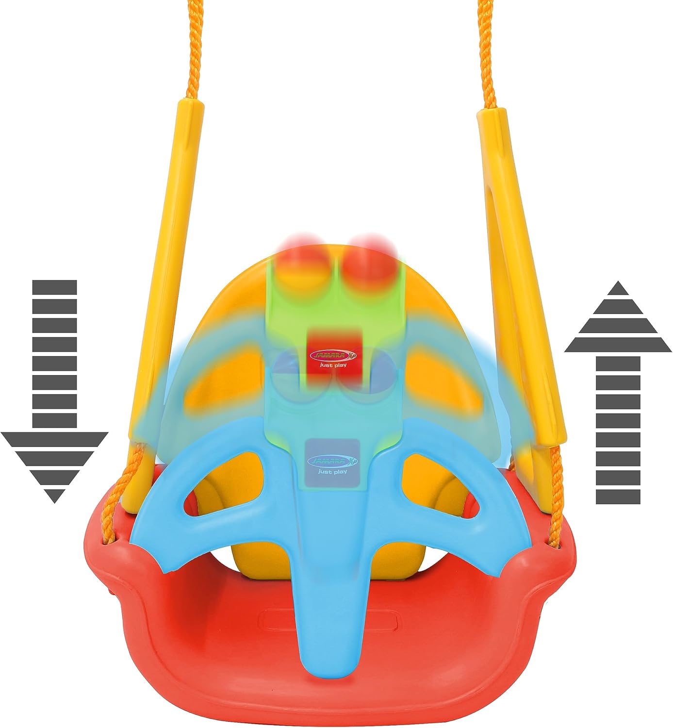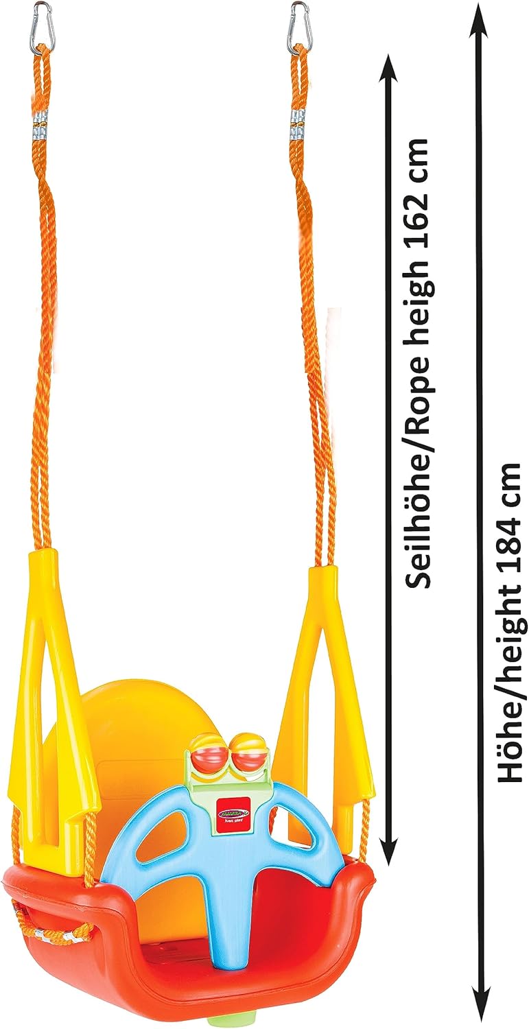Descrizione del prodotto L'altalena per bambini 3 in 1 Grow with me è della JAMARA la prima altalena per bambini che cresce con il tuo bambino. Per i più piccoli con schienale, barra frontale e divertenti palline da girare che formano un sonaglio. Il telaio anteriore con separatore per le gambe e le grandi maniglie laterali mantengono in posizione e impediscono lo scivolamento. Senza il cerchio anteriore, l'altalena Grow with me 3 in 1 si trasforma in una comoda seduta per bambini un po' più grandicelli che sanno già stare seduti da soli, e senza schienale l'altalena diventa un'altalena a tavola. Così i bambini possono raccogliere lentamente la sfida con i genitori e cambiare l'altalena in base alle esigenze individuali e al progresso dello sviluppo. La conversione dei singoli componenti può essere eseguita facilmente anche dagli adulti in un batter d'occhio senza attrezzi. L'altalena stabile è realizzata in plastica di alta qualità e resistente alle intemperie. // Caratteristiche principali: adatto per interni ed esterni, plastica resistente alle intemperie, roll bar, grazie al fissaggio in 4 posizioni, il sedile è antiribaltamento, adattabile allo sviluppo del bambino, altezza corda: 163 cm// Funzioni: barra di sicurezza/schienale con serratura, barra di sicurezza/schienale rimovibile, sfere girevoli con sonagli, schienale regolabile// Dettagli del prodotto: colore: giallo/rosso, peso massimo (kg): 60, marca: JAMARA Kids // Contenuto della confezione: modello, istruzioni (lingua italiana non garantita). Nota: Età consigliata: dai 12 mesi Obbligo CE: sì Istruzioni per la cura: pulire la superficie del giocattolo con un panno umido. Destinatari: bambini unisex // Istruzioni di sicurezza: Attenzione: solo per uso domestico, controllare che il sedile dell'altalena, le corde e gli altri accessori non presentino segni di usura. Non posizionare l'altalena in condizioni atmosferiche estreme (ad esempio gelo). I giocattoli possono essere pericolosi se non controllati (ad es. B. Seile reißen). Darf nicht über Beton, Asphalt oder anderen harten Oberflächen aufgebaut werden., Das Product must be unbedingt in mindestens 2 m Entfernung von Zäunen, Garagen, Häuser und anderen Hindernissen aufgestellt werden., Stellen Sie das produce in modo che il bambino giochi con le spalle al sole. Ispezione e manutenzione regolari del giocattolo. Adatto per uso interno ed esterno. Leggere e conservare le istruzioni prima dell'uso. Avviso di sicurezza Attenzione: solo per uso domestico. Controllare se il sedile dell'altalena, le corde e gli altri accessori presentano segni di usura. Non posizionare l'altalena in condizioni atmosferiche estreme (ad esempio gelo). I giocattoli possono essere pericolosi se non controllati (ad es. B. Seile reißen). Darf nicht über Beton, Asphalt oder anderen harten Oberflächen aufgebaut werden., Das Product must be unbedingt in mindestens 2 m Entfernung von Zäunen, Garagen, Häuser und anderen Hindernissen aufgestellt werden., Stellen Sie das produce in modo che il bambino giochi con le spalle al sole. Ispezione e manutenzione regolari del giocattolo. Adatto per uso interno ed esterno. Leggere e conservare le istruzioni prima dell'uso.