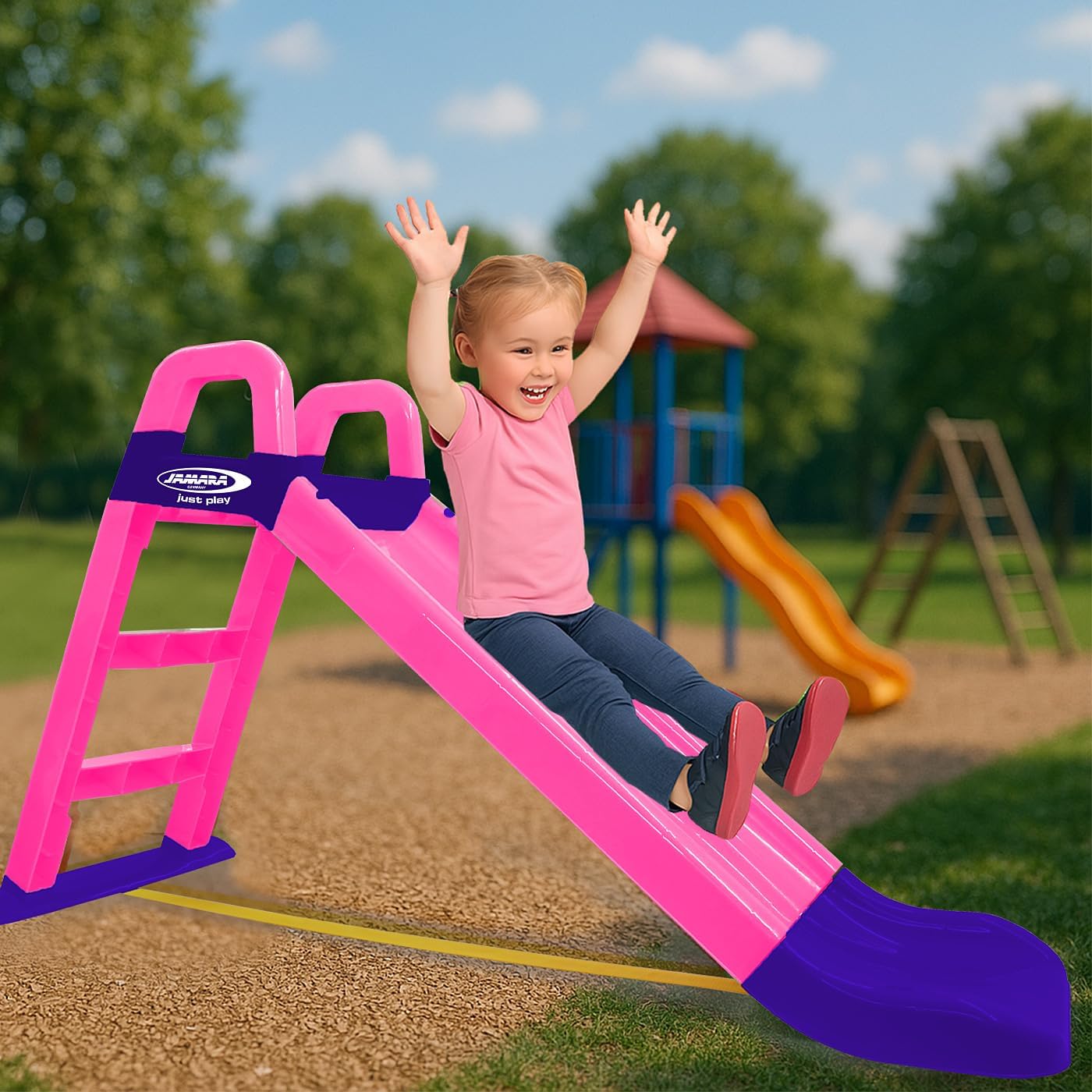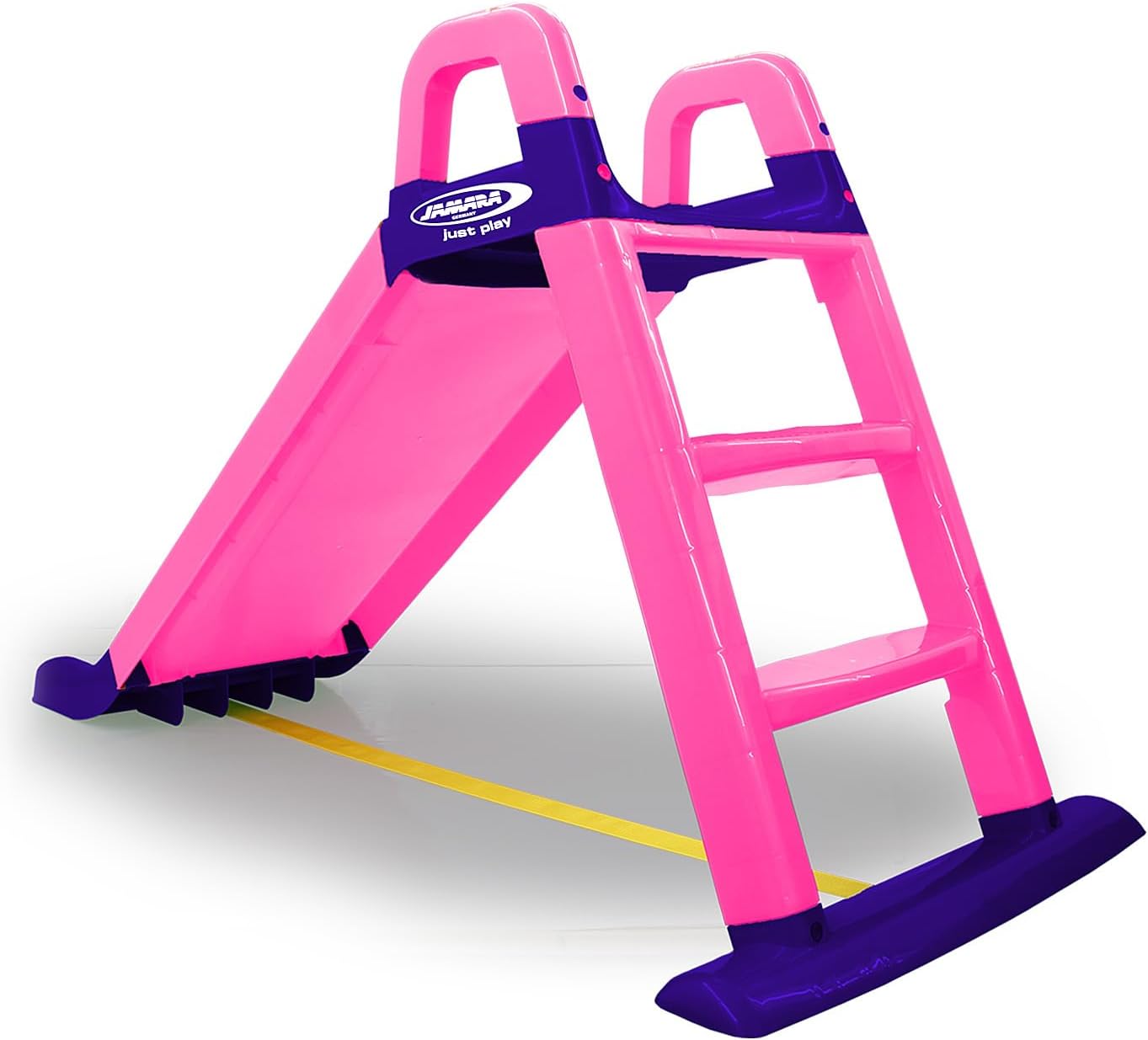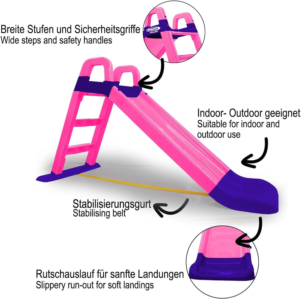Con lo scivolo per bambini «Funny Slide», Jamara offre divertimento sullo scivolo anche ai piccoli a partire da un anno di età Grazie al facile montaggio della diapositiva colorata, può essere montata in pochissimo tempo; con un peso di poco meno di quattro chili, lo scivolo Funny Slide è leggero e facile da trasportare, ma robusto e resiste alla selvaggina grazie all'ampia scaletta Una volta in cima alla scala, le ampie maniglie di sicurezza assicurano una presa salda e l'ampia presa antiscivolo favorisce atterraggi morbidi e tranquilli; una corda stabilizzante al centro dello scivolo offre ulteriore sicurezza e quindi nulla ostacola il divertimento sullo scivolamento all'interno o all'esterno