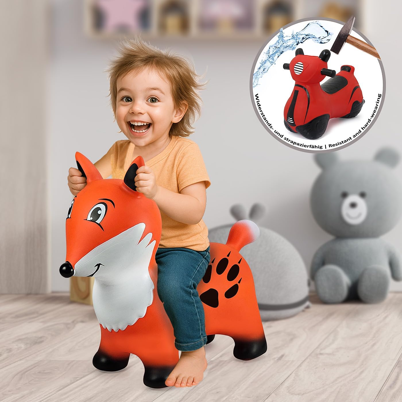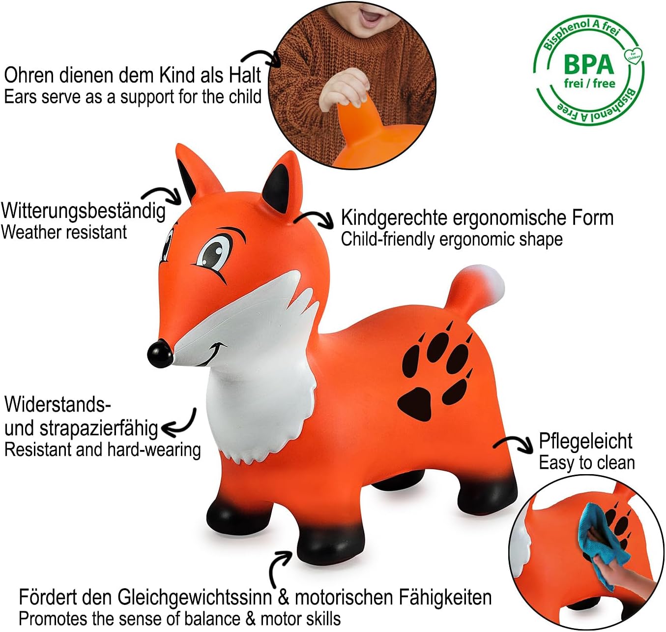 Un sacco di divertimento per bambini dai 12 mesi in su, gli animali rimbalzanti dipinti a mano con la pompa ad aria in dotazione sono facili da modellare, senza BPA. Le orecchie degli animali rimbalzanti servono a tenere fermo e dare al bambino una presa sicura Funzione di apprendimento: l'animale rimbalzante promuove il senso di equilibrio e le capacità motorie, rafforza i muscoli del bambino, quindi aiuta a sviluppare il cervello Robusto: il materiale resistente e resistente ha una portata fino a 50 kg. La zona centrale è adattata alla forma del corpo, questo garantisce una vestibilità ergonomica e confortevole. Anche all'aperto l'animale che rimbalza in giardino è divertente Struttura: la quantità d'aria consente al modello di adattarsi all'altezza e al peso del bambino. Basta gonfiare l'animale rimbalzante alla dimensione desiderata con la pompa ad aria e saltare via. L'altezza della seduta è di circa 24,5-27 cm Facile da pulire: il materiale di facile manutenzione può essere lavato con acqua corrente o pulito con acqua corrente