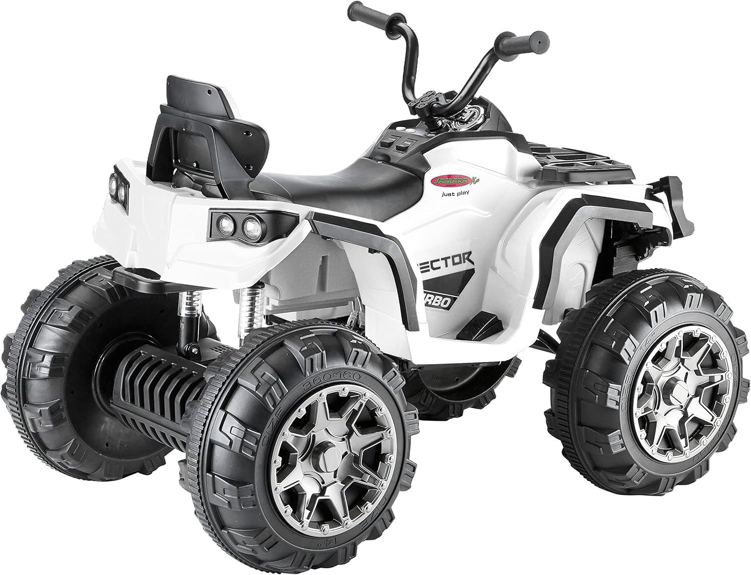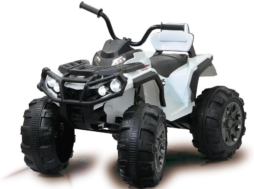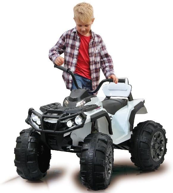2 ruote posteriori motorizzati – elettronici differenziale funzione – 2 potenti motori 12 V actuator & ingranaggi, potente 12 V batteria per lunga durata, 2 marce turboscha interruttore Ruote ultra Gripp propulsione anelli in gomma, extra grande rotella e ammortizzatore Faro anteriore/fanali posteriori, illuminato cruscotto Clacson e Sound, collegamento di sorgenti audio esterne, radio FM e da ogni parte del processo di avvio più Start pulsante Jamara 460248 – ride on Quad Protector Bianco 12 V – 2 potente 12 V motore motori e ad alte prestazioni 12 V batteria per una lunga durata, 2 marce turboscha lter, Ultra di Gripp gomma anelli a propulsione ruote