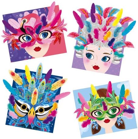 Bellissimi quadri da decorare; le piume: un accessorio soffice e vellutato che i bambini adorano Un'attività semplice (il bambino rimuove la pellicola dalle piume sulla tavola e riempie lo spazio con un adesivo) Contenuto: 4 tavole da decorare con 40 piume, 2 fogli di piume in carta da ritagliare, 1 foglio di adesivi per protezione e 4 elastici Un'attività creativa che trasmette calma, concentrazione e serenità Disegnato in francia