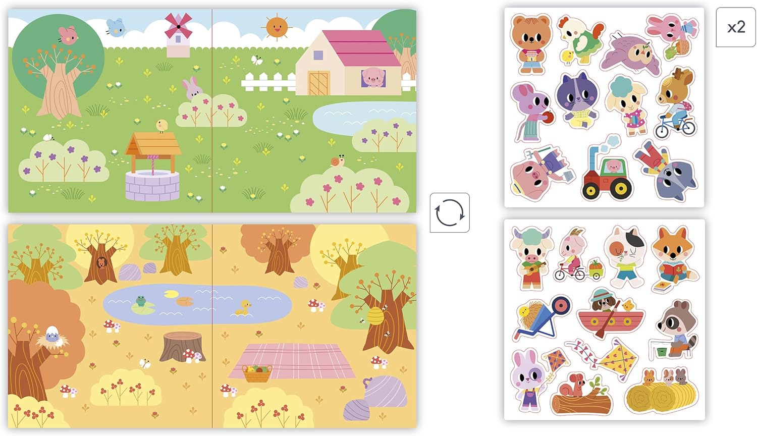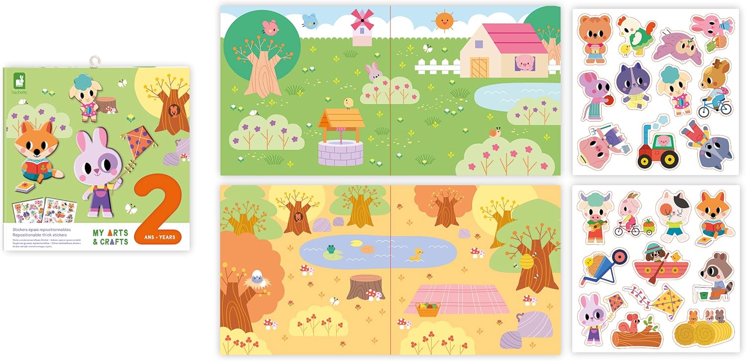 ADESIVI RIPOSIZIONABILI: Facili da maneggiare e adatti dai 2 anni in su, questi adesivi spessi e colorati possono essere attaccati all'infinito su 2 sfondi diversi: uno scenario di fattoria e uno scenario di foresta (1 foglio a doppia faccia) DIVERTIRSI ALL'INFINITO: Gli adesivi possono essere spostati facilmente, ciò consente ai bambini di creare molte scene ispirate alla fattoria o alla foresta, favorendo allo stesso tempo lo sviluppo della loro agilità e immaginazione DA INCORNICIARE O RICOMINCIARE: Gli adesivi hanno una base trasparente per fondersi con lo sfondo; si attaccano ovunque, si puliscono con l'acqua e sono leggeri e flessibili; dopo la creazione, il tuo bambino può ricominciare o incorniciarla per decorare CARATTERISTICHE: Questo gioco Janod contiene 1 quadro a doppia faccia di 40 x 20 cm, 2 fogli di adesivi spessi e riposizionabili (30 adesivi in totale); tempo di gioco stimato a 20 minuti (10 minuti per lato); attività manuale per bambini dai 2 ai 4 anni MY ARTS & CRAFTS – Questo cofanetto fa parte di una collezione sviluppata in collaborazione con Hachette, casa editrice specializzata nei kit creativi per i bambini e che sa adattarsi alle esigenze e alle aspettative di ogni età