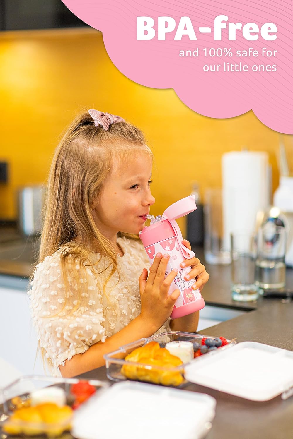 ✔ 100% sicuro per gli alimenti - il biberon è privo di BPA e privo di ftalati. Attribuiamo grande importanza al fatto che tutti i materiali utilizzati sono completamente innocui. La bottiglia è realizzata in acciaio inossidabile 304 di alta qualità, utilizzato nell'industria alimentare per le sue eccellenti proprietà. ✔ Facile da pulire: la bottiglia per bambini è molto facile da pulire, poiché la bevanda viene solo a contatto con l'acciaio inossidabile e la cannuccia di silicone. Nessun fastidioso residuo liquido negli angoli o nelle tacche. Inoltre, l'ampia apertura consente una buona visibilità e una facile pulizia. Tuttavia, si raccomanda il lavaggio a mano in quanto un detergente per piatti forte e acqua troppo calda possono influenzare l'aspetto della stampa ✔ Mantiene la temperatura - la bottiglia d'acqua in acciaio inox a doppia parete è isolata a vuoto e quindi mantiene la temperatura per diverse ore. Le bevande fredde rimangono fredde fino a 12 ore e le bevande calde rimangono calde fino a 6 ore. La temperatura esterna della superficie della bottiglia non cambia. Nota: il liquido non deve superare la temperatura massima di 40 ° C. I liquidi caldi possono causare ustioni o ustioni. ✔ Facile da usare: la bottiglia può essere aperta facilmente con una sola mano premendo il pulsante. Perfetto per lo sport, il nuoto o il ciclismo. La cannuccia di silicone rende facile e piacevole bere. La bottiglia d'acqua è adatta sia a ragazze che a ragazzi. Attenzione: non adatto per bevande gassate. ✔ Soddisfazione del cliente: siamo felici solo quando lo sei anche tu. Se non sei soddisfatto al 100%, contattaci e risponderemo immediatamente alla tua richiesta. Jarlson è sinonimo di eccellente servizio clienti tedesco. Fai la gioia del tuo preferito e ordina la perfetta bottiglia d'acqua per bambini senza preoccuparti.