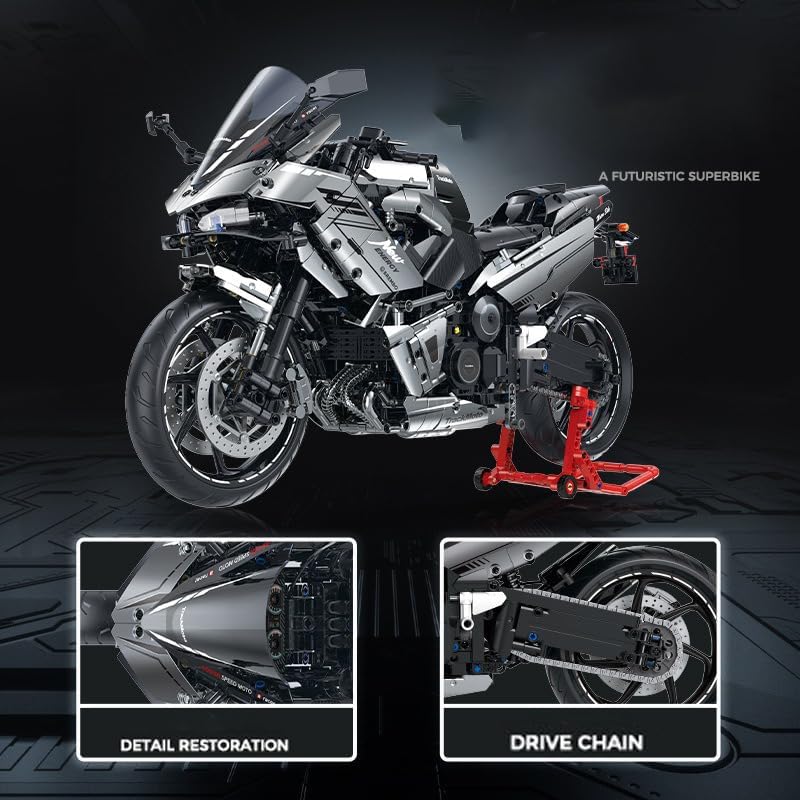 Ha caratteristiche che non puoi nemmeno immaginare. Ad esempio, puoi sterzare a sinistra oa destra, avanti o indietro, puoi girare il volante o accendere i fari, ecc. È molto giocoso. (La motocicletta viene fornita senza batteria, devi installarla tu stesso.) Ogni dettaglio è chiaramente visibile, che si tratti della struttura delle sospensioni, dei fari, dei pneumatici, della ruota girevole, ecc. Questa motocicletta ti stupirà! La dimensione complessiva è di circa 50,3 x 18 x 27 cm. (Lunghezza x larghezza x altezza) Questa motocicletta contiene elementi costitutivi di parti di motocicletta, per un totale di 2392 pezzi, istruzioni cartacee dettagliate e imballaggio. Vieni a provare i set di mattoncini più divertenti nel mio negozio!