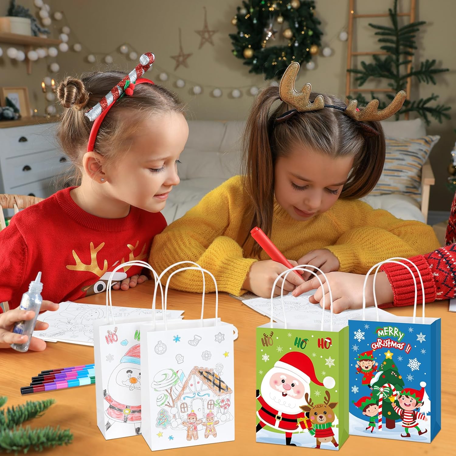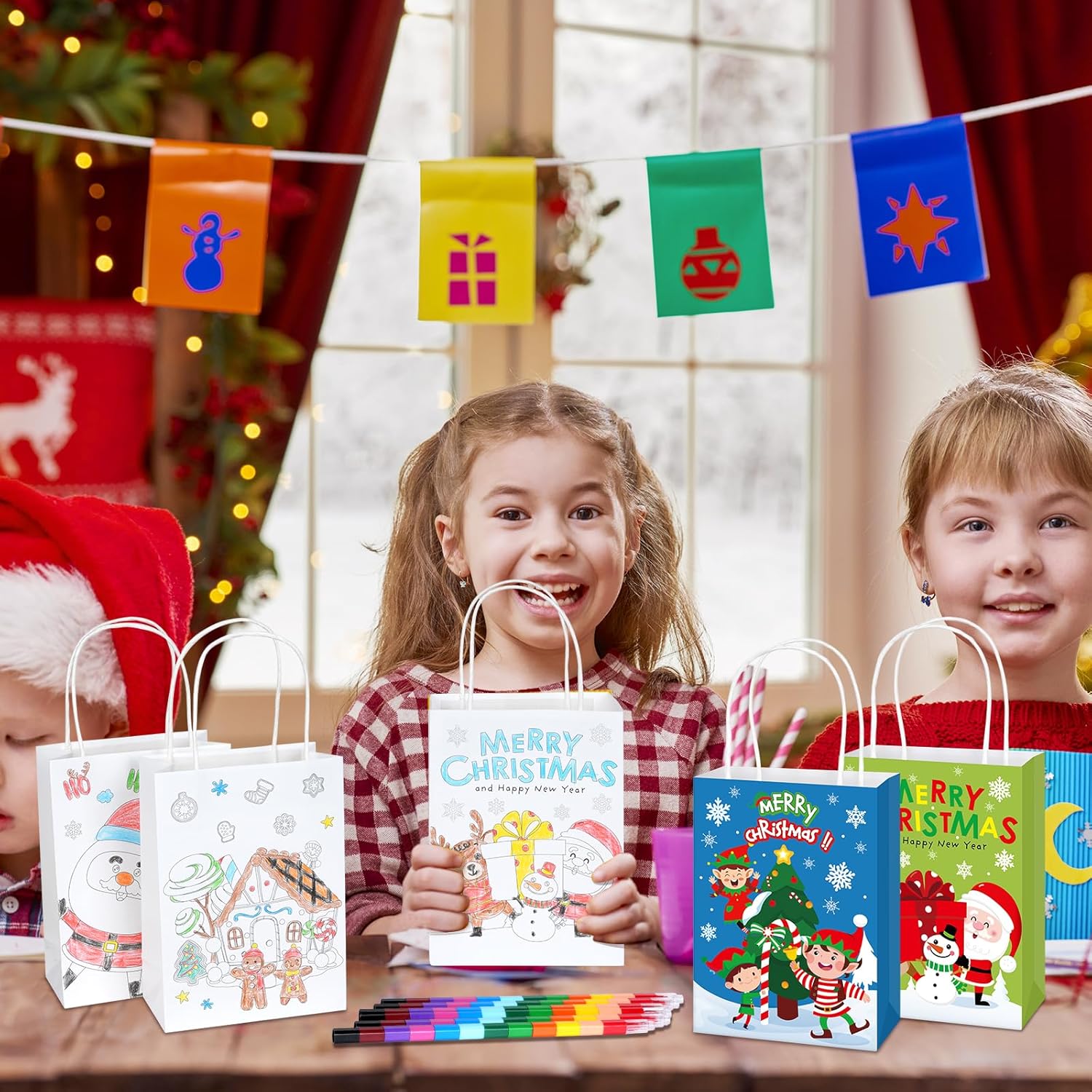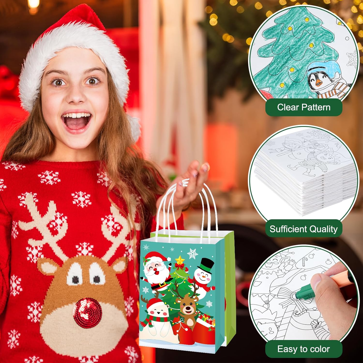 Cosa riceverai: 64 sacchetti regalo di Natale da colorare in 8 stili e 32 pastelli impilabili in 12 colori. Quantità sufficiente per soddisfare le diverse esigenze di confezione regalo e di utilizzo quotidiano. Divertenti sacchetti regalo natalizi da colorare: i nostri sacchetti regalo natalizi sono stampati con motivi di elementi natalizi: albero di Natale, pupazzo di neve, renna, pan di zenzero, camion, Babbo Natale e figlio, i diversi colori sui sacchetti regalo natalizi aggiungono una forte atmosfera festosa. Dimensioni adatte e materiale affidabile: i nostri sacchetti regalo natalizi sono realizzati in carta di alta qualità, misurano 22,1 x 8,1 x 16 cm, di buone dimensioni per mettere cioccolato, caramelle, piccoli giocattoli, una confezione regalo, dolcetti e facili da trasportare all'esterno. Le 12 matite colorate sfuse sono realizzate in paraffina e plastica, la lunghezza totale della penna è di 10 pollici con 12 colori. Crea i tuoi sacchetti regalo di Natale: questi sacchetti da colorare natalizi non sono solo per trasportare dolcetti, ma aumentano l'abilità pratica e la creatività e forniscono divertimento nella pittura e coltivano la loro immaginazione e creatività, tengono occupato e divertito. I destinatari saranno sorpresi da questi sacchetti regalo da colorare fai da te. Ampia applicazione: questi sacchetti per feste di Natale sono perfetti per lo scambio di regali di Natale, sacchetti di caramelle natalizie, sacchetti per dolcetti, biscotti ripieni, caramelle, cioccolato e così via. Allo stesso tempo, possono migliorare l'immaginazione e la creatività per colorare le proprie borse per Natale, compleanno o per l'uso quotidiano