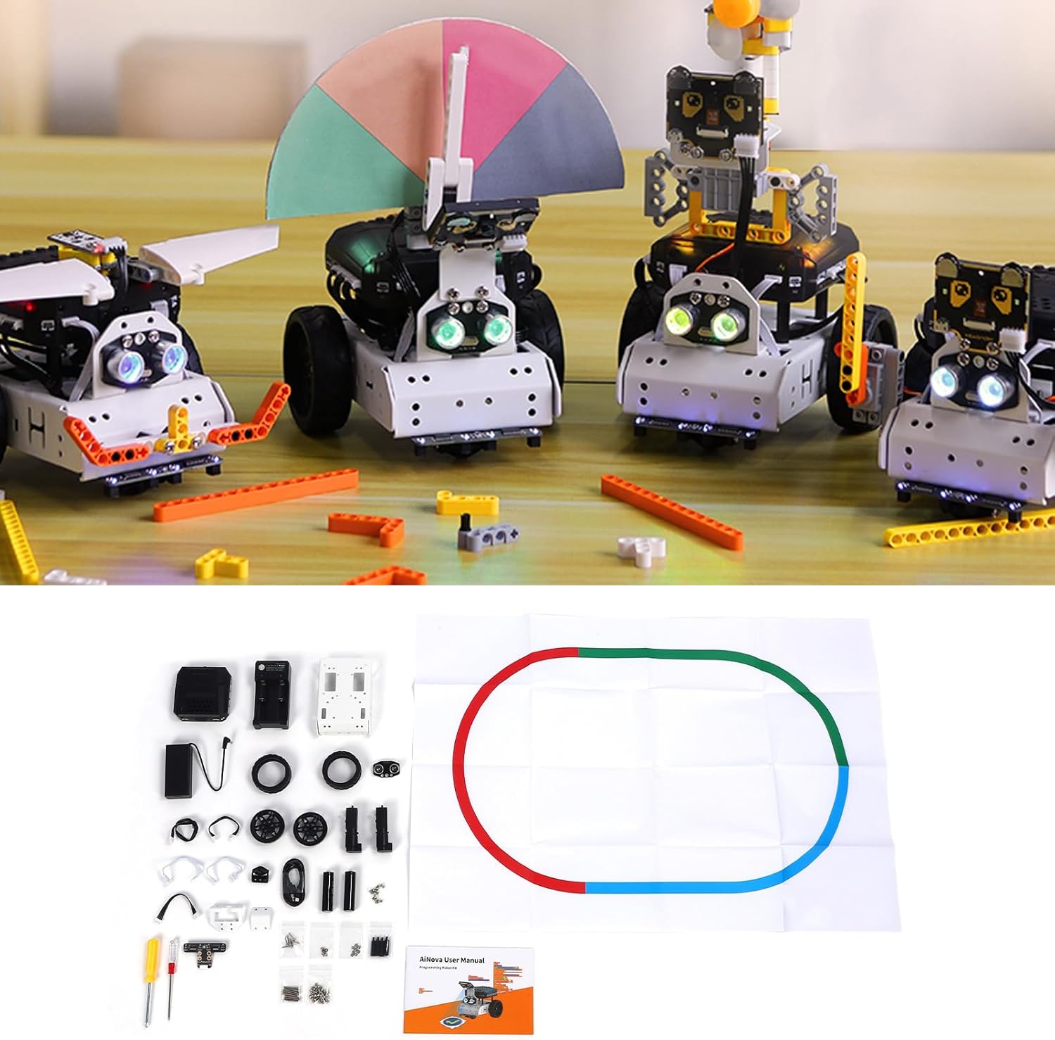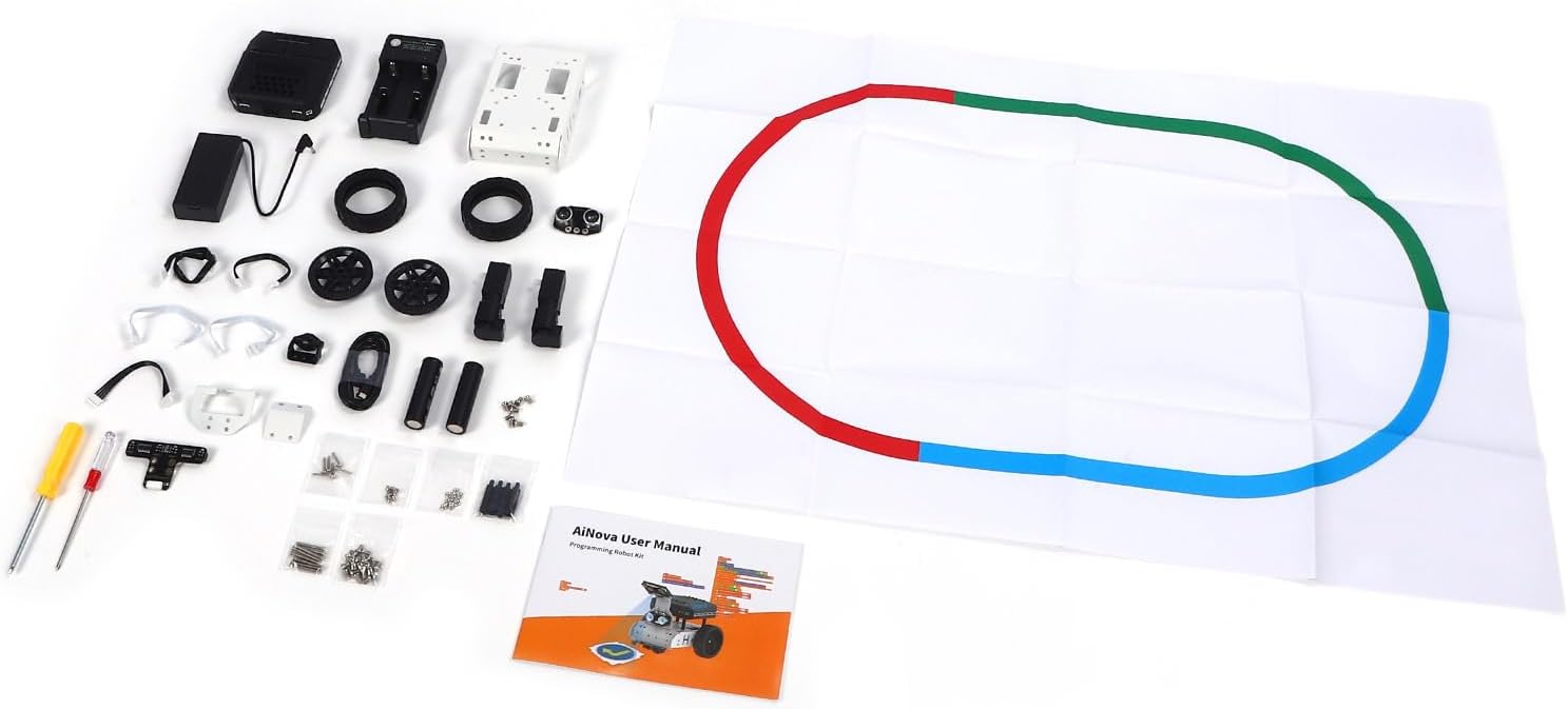 [Robot AI perché] tecnologia avanzata con riconoscimento del target colore e funzionalità di monitoraggio visivo della . [Algoritmi di apprendimento] Il modulo AI si occupa della classificazione delle immagini, delle funzionalità di apprendimento e di vari progetti AI. [Percezione migliorata] Varietà di sensori e fotocamere equipaggiate migliore esperienza interattiva. [Batteria a lunga durata] Batteria doppia Li con una capacità di 1200 mAh per un uso prolungato. Semplici [facili da usare] istruzioni per il montaggio e l'installazione della batteria, per un utilizzo immediato dopo la configurazione.